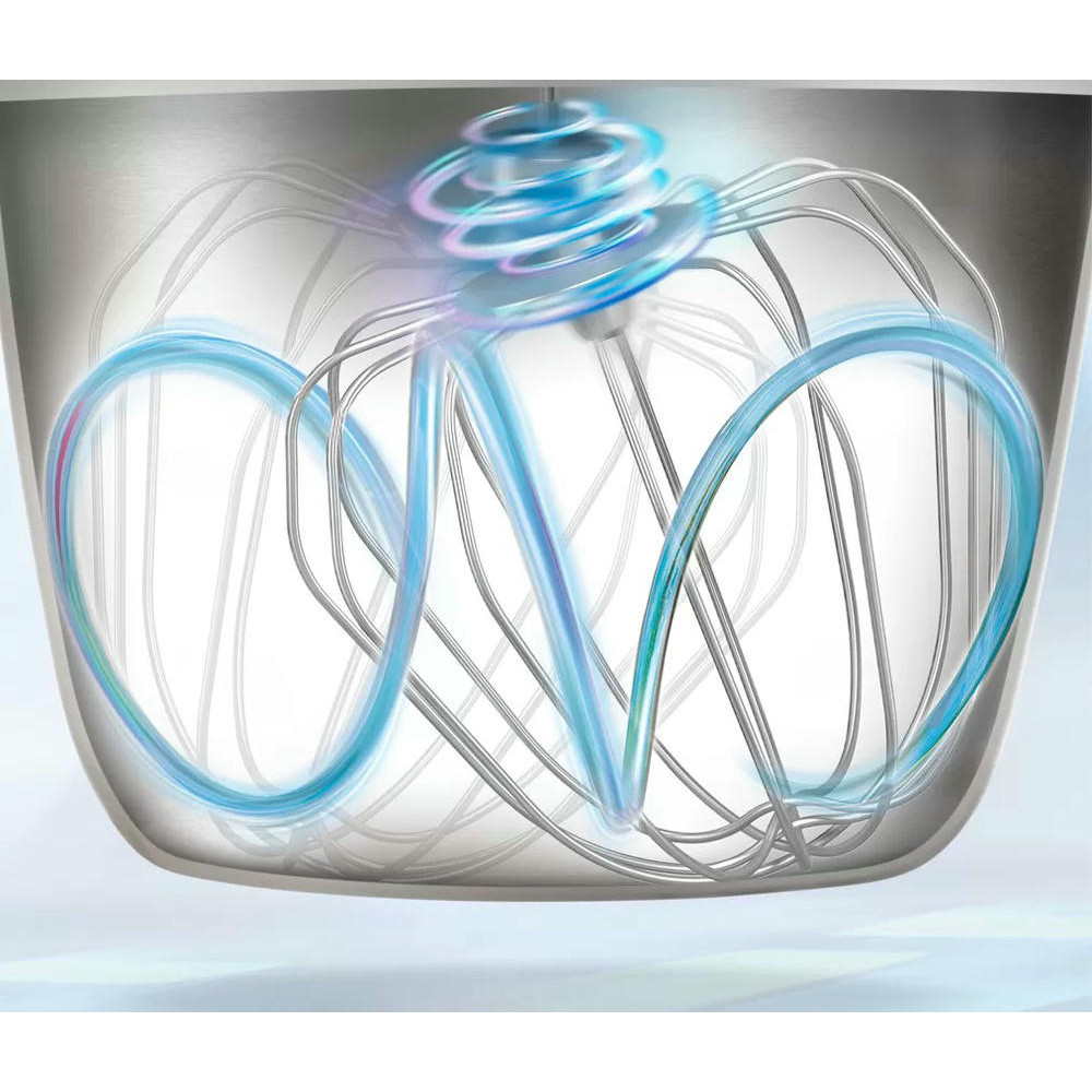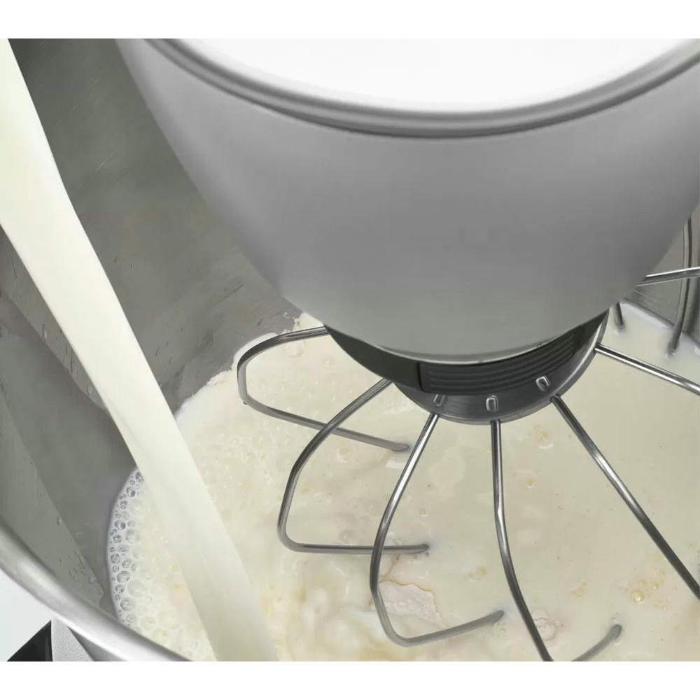 В комплект насадок входит силиконовый венчик, объёмный венчик, регулируемый по высоте, а также усиленный крюк для теста.