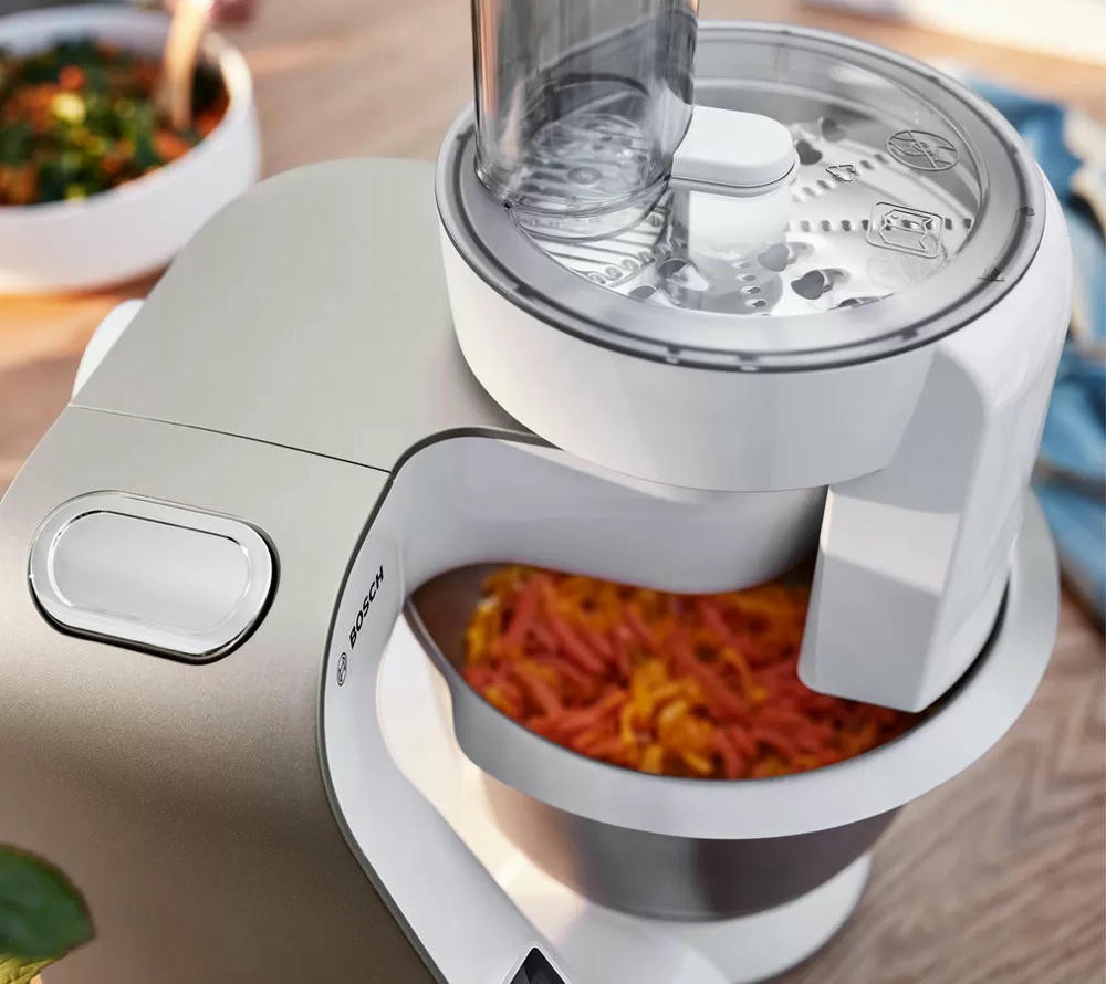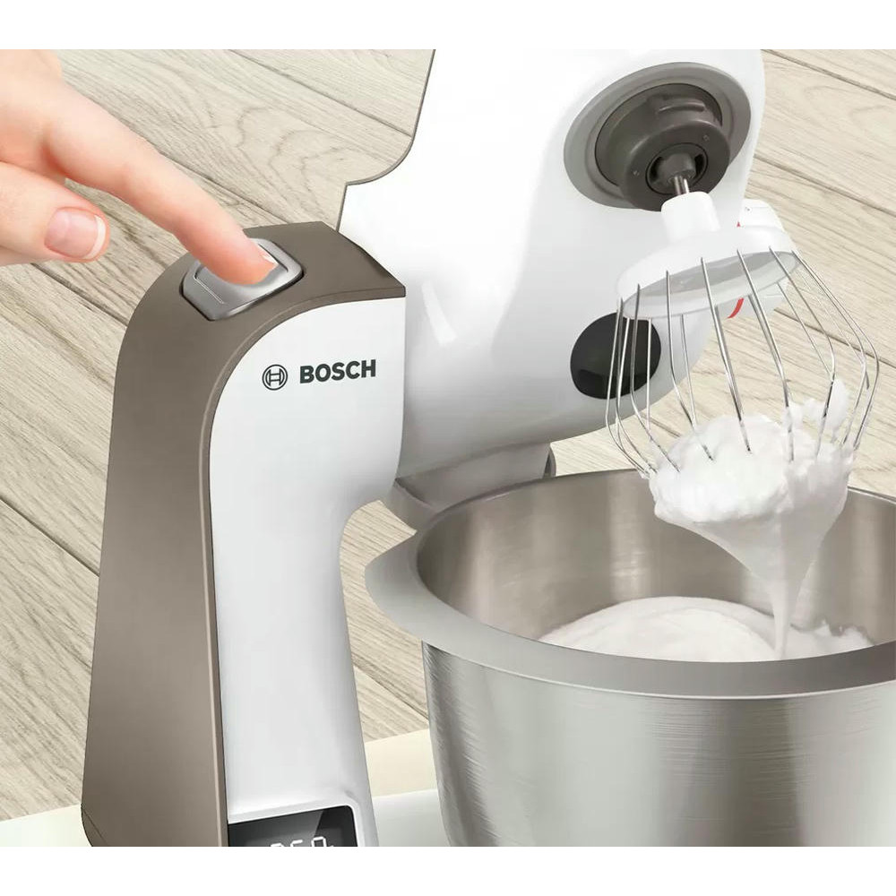 Кухонный комбайн BOSH MUM5XW10 имеет особенности в конструкции которые облегчат процесс приготовления. Если вы точно знаете сколько должно готовится тесто или соус, в этом поможет таймер. Нужно выставить требуемое время, и об его завершении оповестит сигнал.