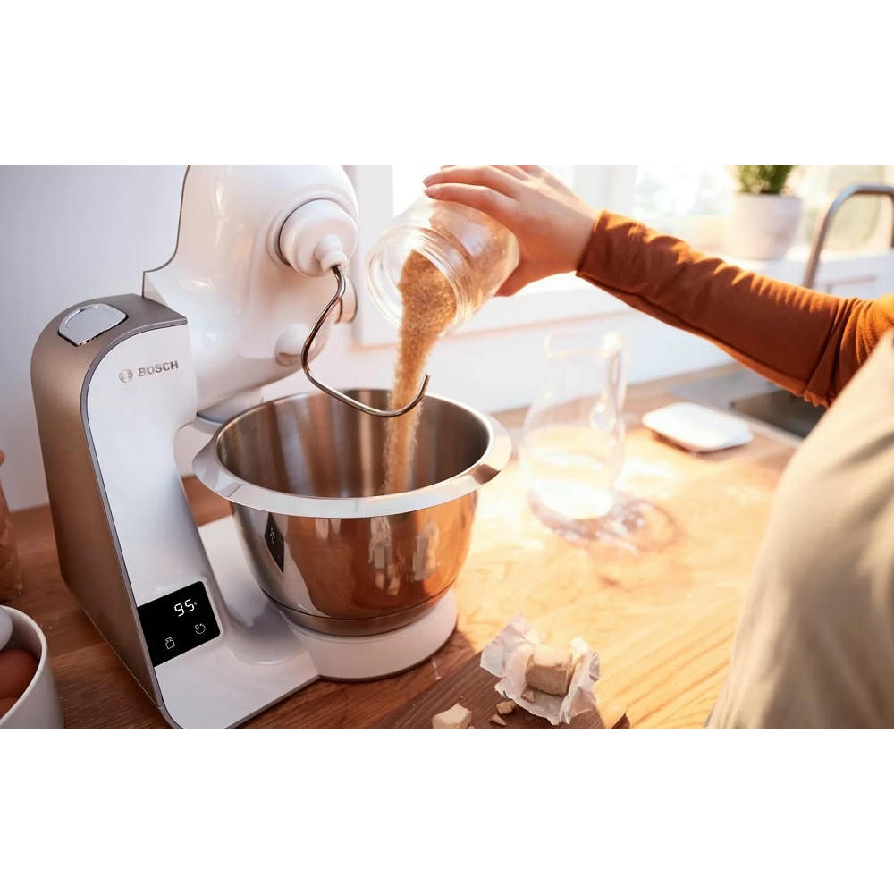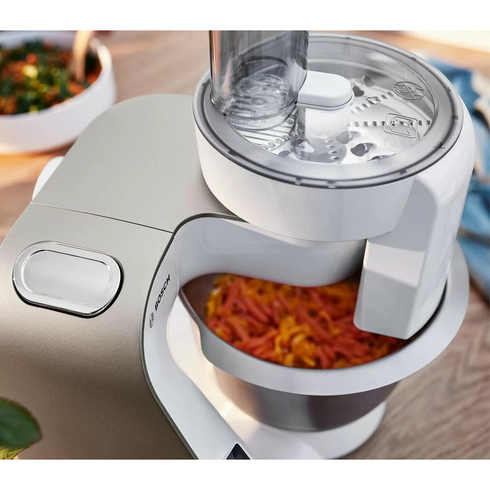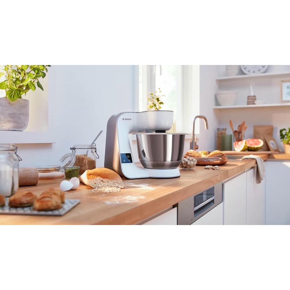 Кухонный комбайн Bosch MUM5XW40 — многофункциональная модель, которая соответствует самым высоким стандартам в кулинарии и выпечке. рычага EasyArmLift можно легко и быстро менять насадки. 7 скоростных режимов позволят настроить мощность работы прибора под ваши нужды, а удобное кнопочное управление и цифровой дисплей значительно упрощают этот процесс.