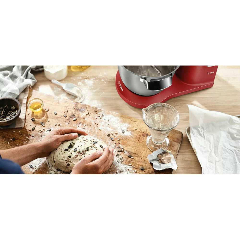 Кухонный комбайн BOSH MUM9A66R00 — это мощный прибор в ярком красном цвете и с большими возможностями. Вместительная чаша объёмом 5.5 литров позволит сделать до 3.5 килограмм теста для выпечки за раз.
