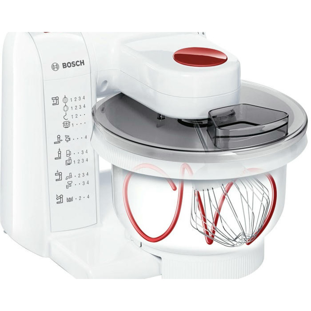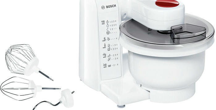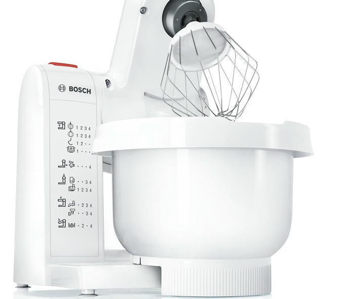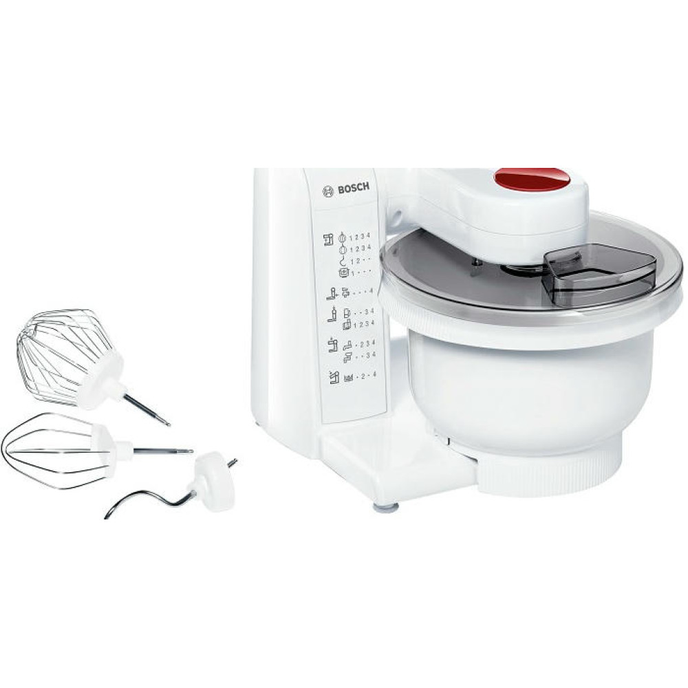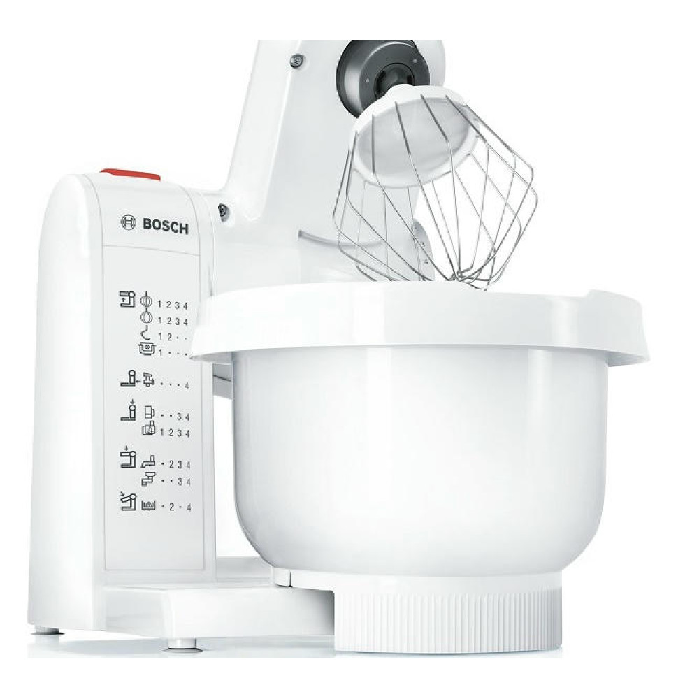Кухонный комбайн Bosch MUMP1000 оснащен большой пластиковой чашей объемом 3.9 л (позволяет замешивать до 2 кг теста), венчиком для взбивания, насадкой для взбивания жидкого теста и крюком для замешивания крутого текста. Все принадлежности легко очищаются, а также их можно мыть в посудомоечной машине. Прибор можно дополнительно укомплектовать аксессуарами, расширив функциональность и возможности.