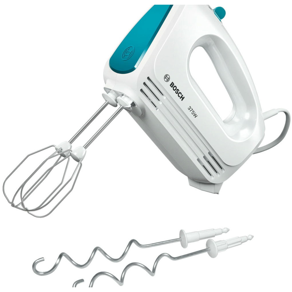 Миксер Bosch MFQ 2210D изготовлен из безопасного пластика, все детали устройства, контактирующие с продуктами питания, не содержат веществ опасных для здоровья. В комплекте прилагаются два типа насадок: венчики для взбивания и крюки для теста — отсоединяются нажатием специальной кнопки. Мощности прибора достаточно для взбивания крема, замешивания густого теста.