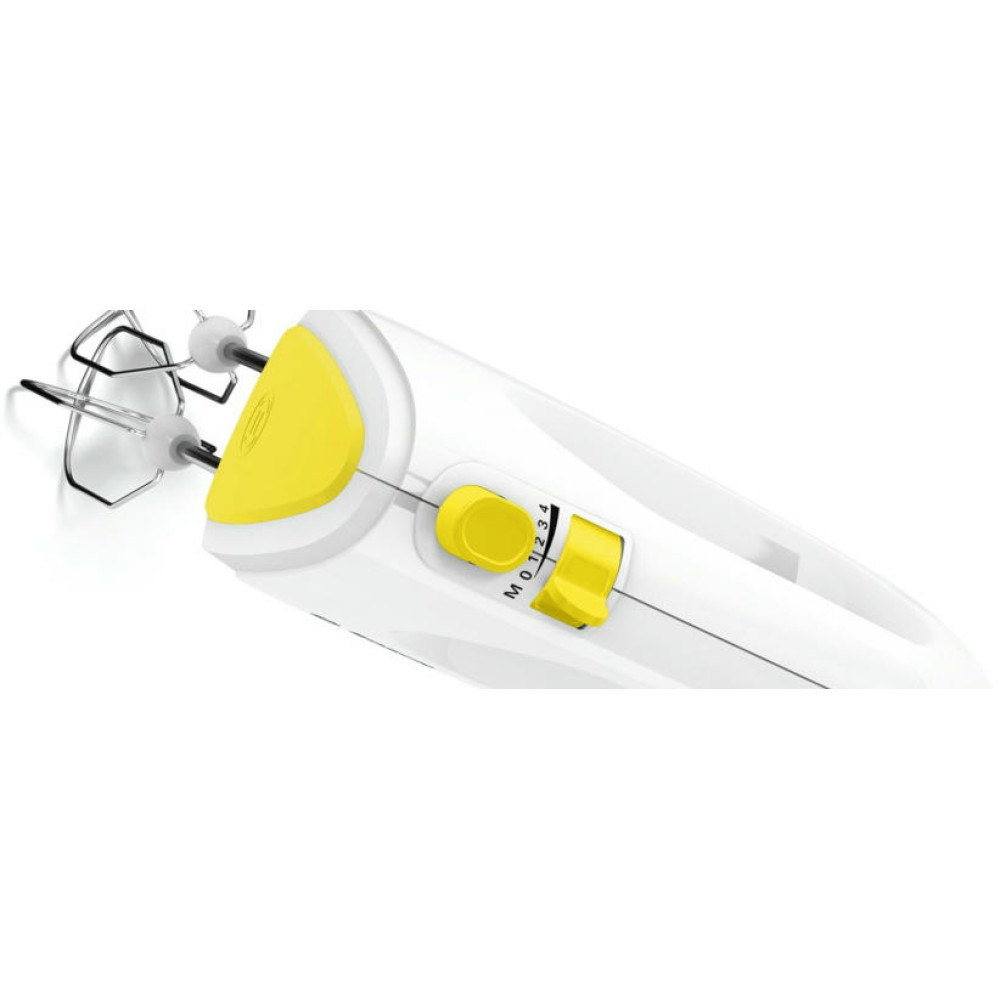 Миксер Bosch MFQ 2210Y оборудован двумя типами насадок: венчиками для взбивания и крюками для замешивания теста. Возможно выбрать одну из четырех скоростей для разного типа блюд, а импульсный режим позволяет приготовить соусы, кремы, жидкое и плотное тесто.