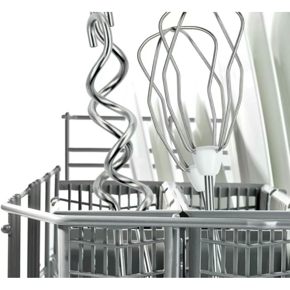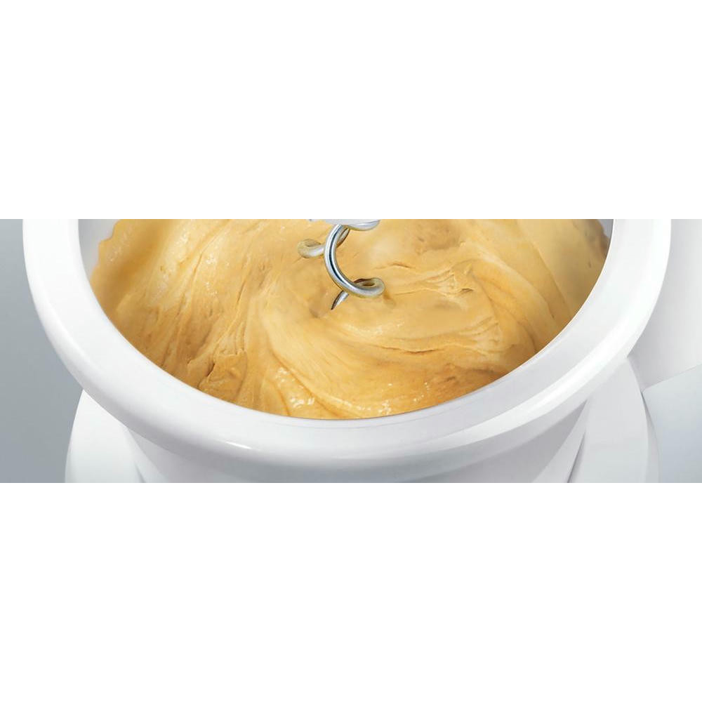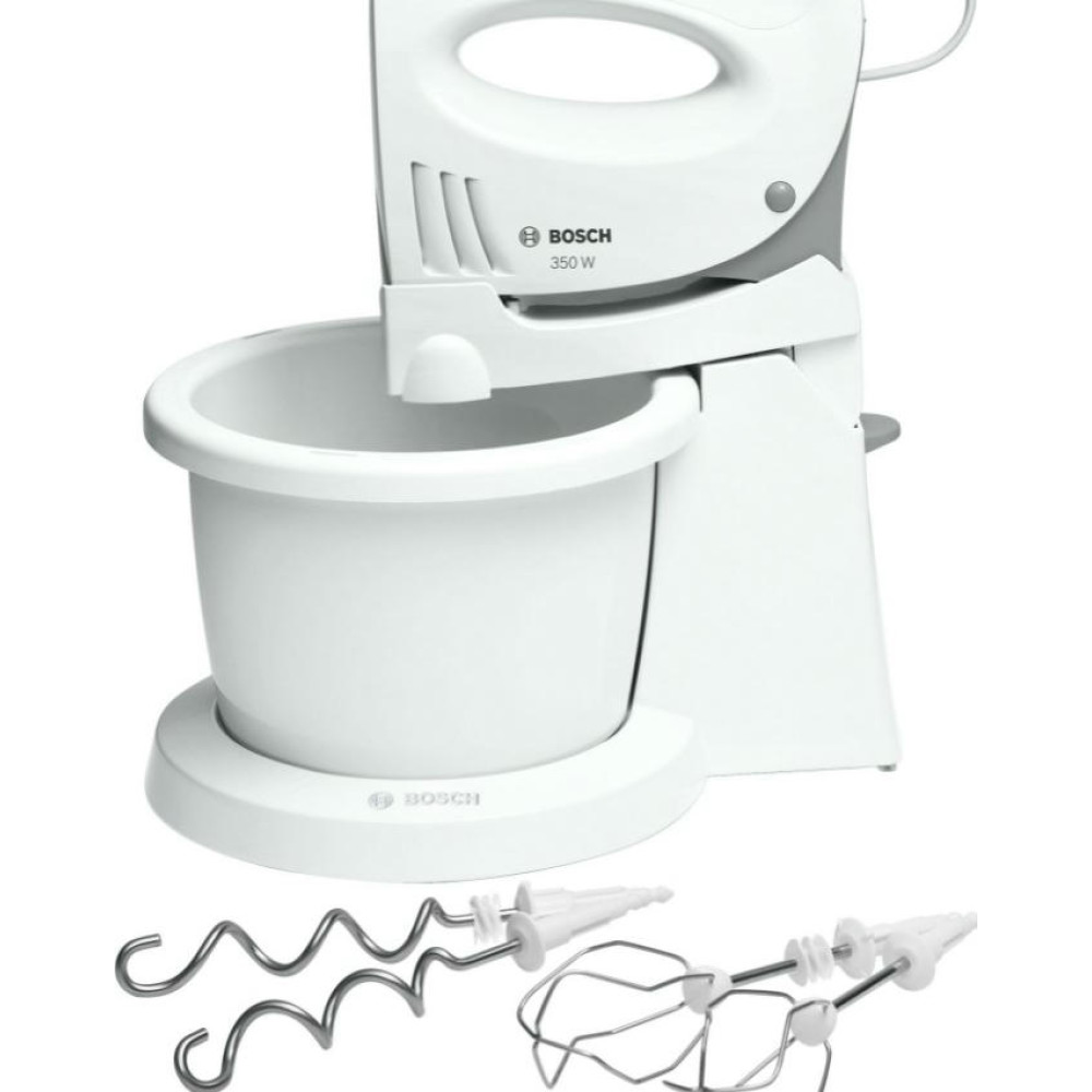 Миксер Bosch MFQ 3555 — стационарная модель, которая переоборудуется в ручную, если снять прибор с подставки. Чаша для замешивания вращается вместе с насадками, что обеспечивает более равномерное смешивание ингредиентов. К устройству возможно подсоединить насадку-блендер для достижения наилучших результатов, которая приобретается отдельно.