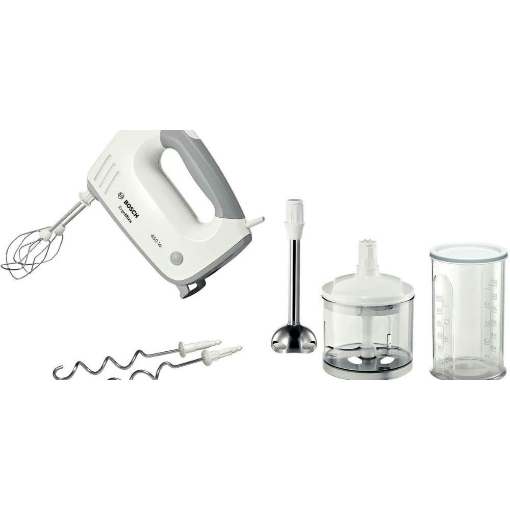 Миксер Bosch MFQ 36480 оснащен 5 скоростями вращения для разных типов блюд. Турбо-режим поможет измельчить твердые продукты. В комплекте прилагаются: насадка блендер, измельчитель, 2 венчика для взбивания и 2 крюка для замешивания теста. Стакан для перерабатываемых продуктов со шкалой позволит отмерить точное количество напитка.