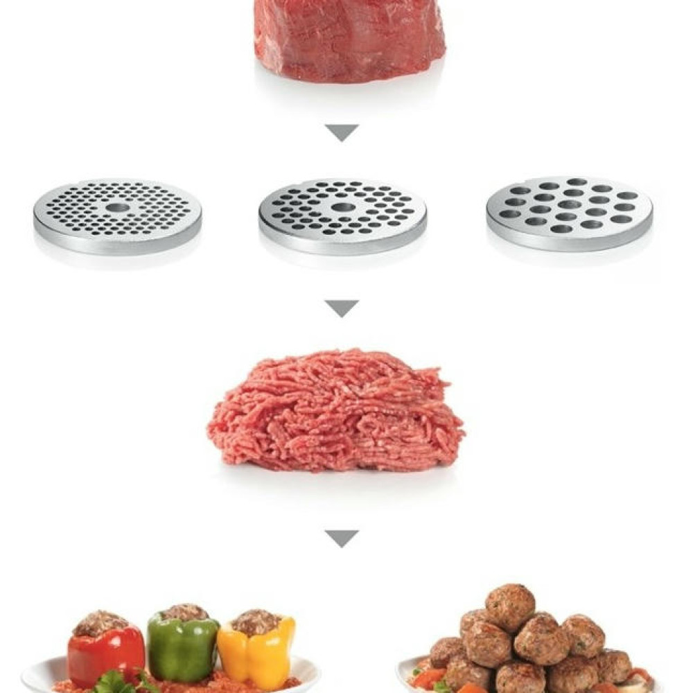 Мясорубка MFW 68660 — универсальный кухонный инструмент, который делает процесс переработки мяса быстрым и простым. Большой загрузочный лоток из стали обеспечивает надежность и удобство, а набор насадок позволяет шинковать овощи, натирать сыр, измельчать орехи и отжимать сок.