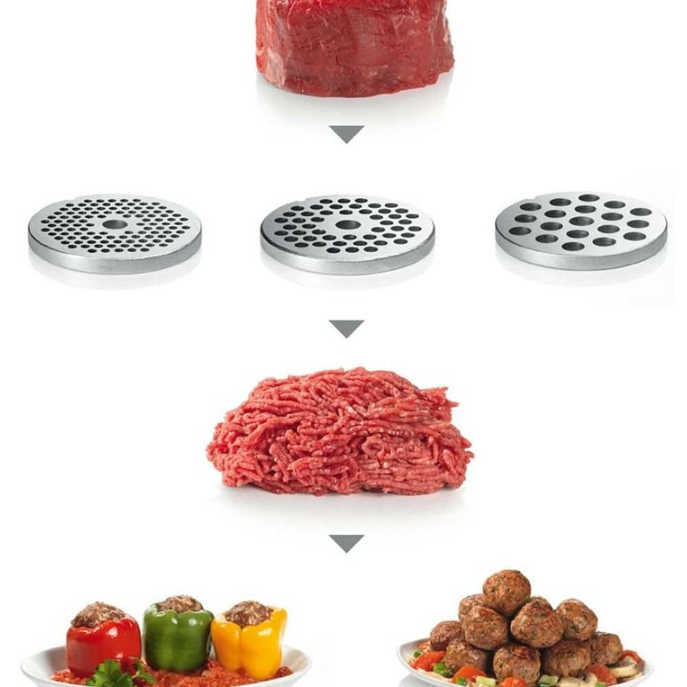 Мясорубка MFW 68680 оборудована насадками для приготовления фарша, колбасок, нарезки овощей и измельчения. Быстрая переработка мяса и высокая производительность обеспечивается мощным мотором. Отсек для хранения формовочных дисков — полезное дополнение к функциональным возможностям модели.