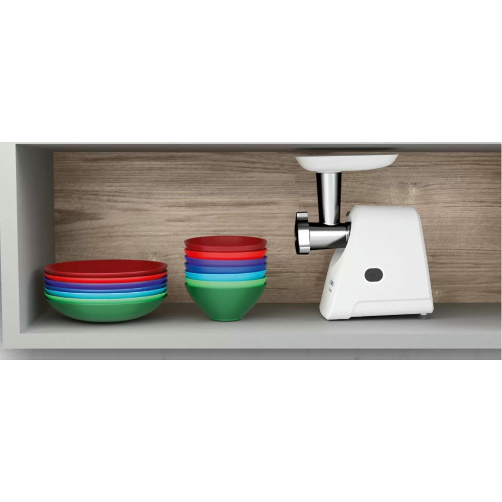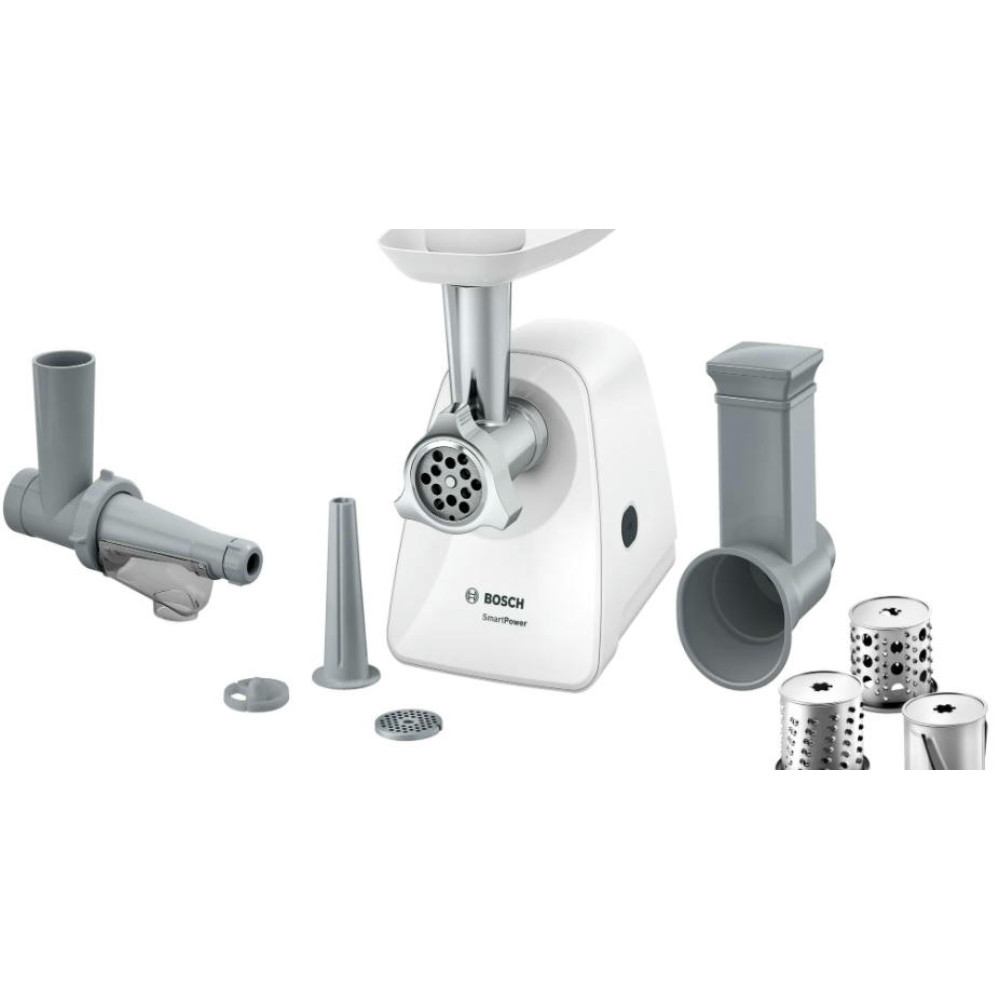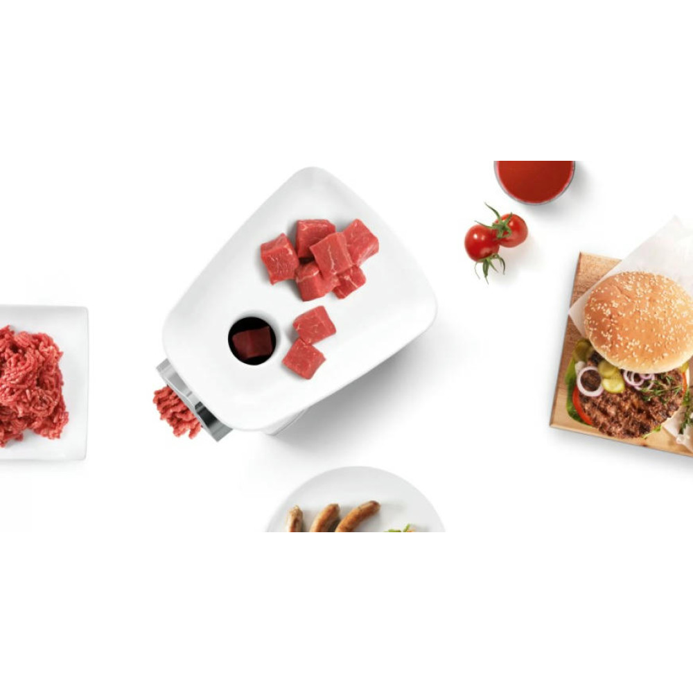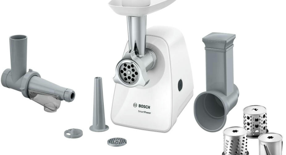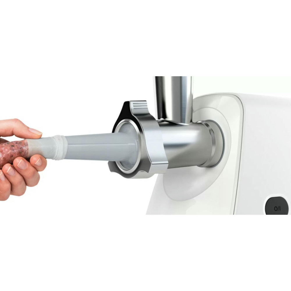 Стационарная мясорубка Bosch MFW2517W выполнена в белом цвете. Прибор имеет высокую скорость приготовления фарша благодаря высокой мощности мотора — 1500 Вт (при блокировке мотора). Благодаря продуманной компактной конструкции не требует много места при хранении, это отличное решение для маленьких кухонь. Резиновые ножки для устойчивости на любой поверхности. В комплекте насадка для колбас и пресс для отжима сока.