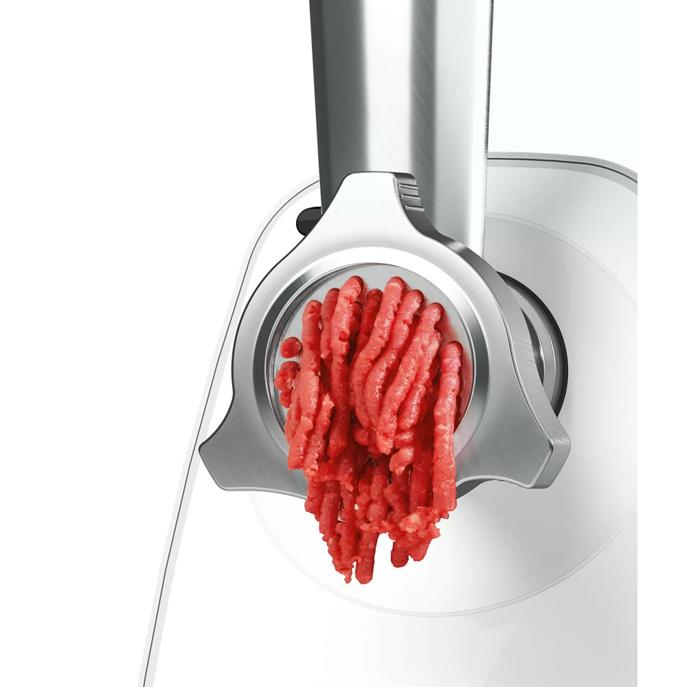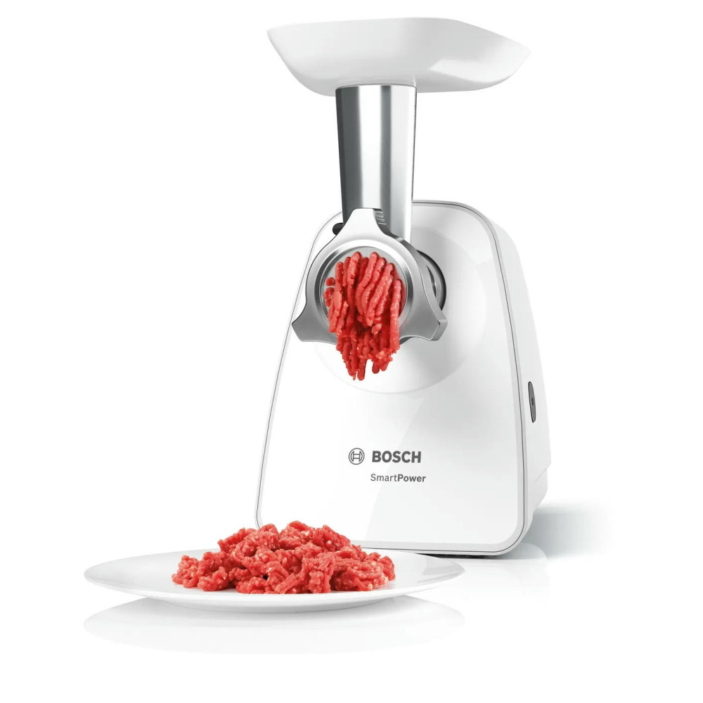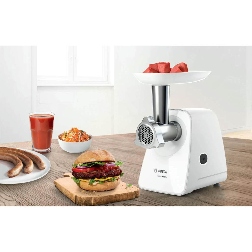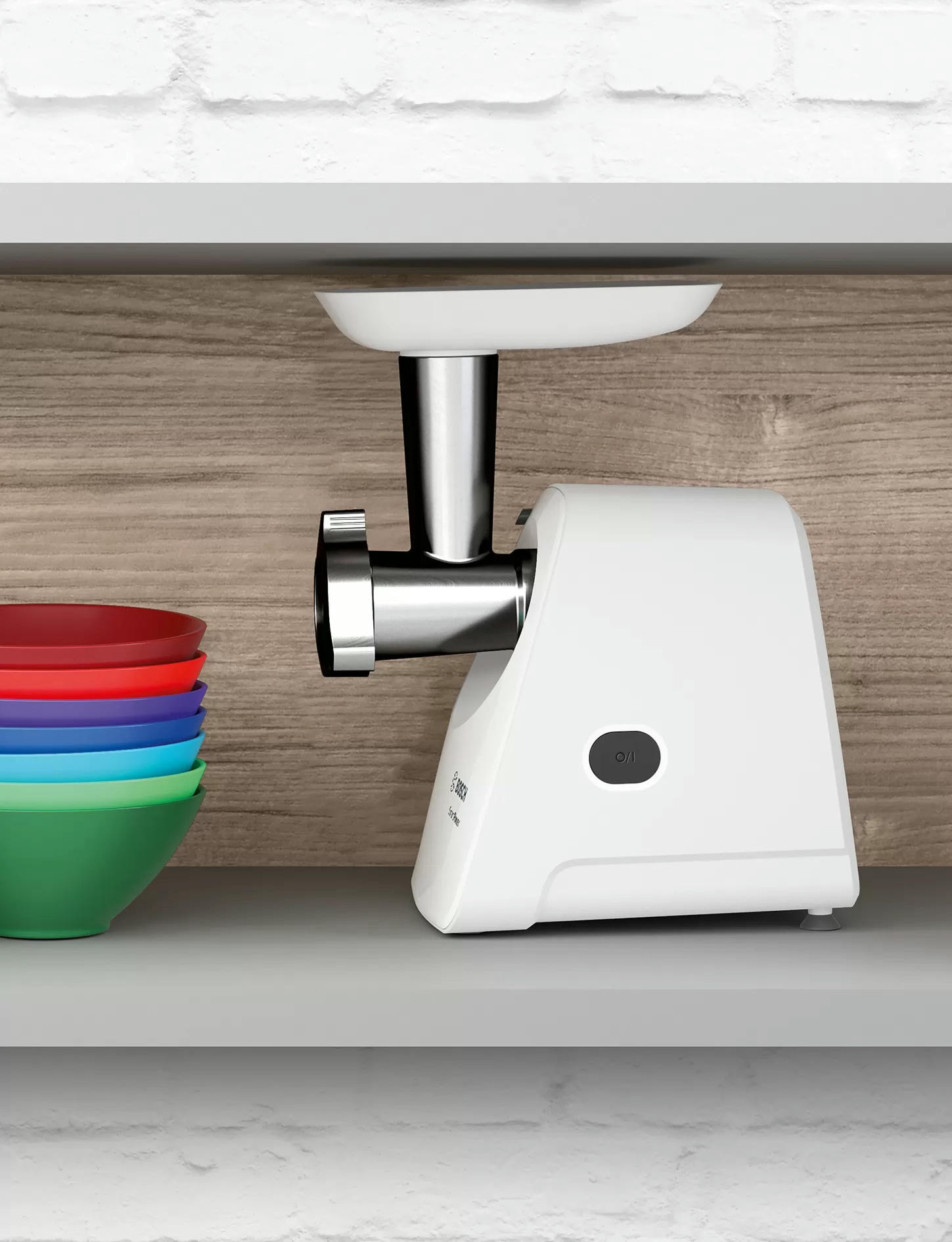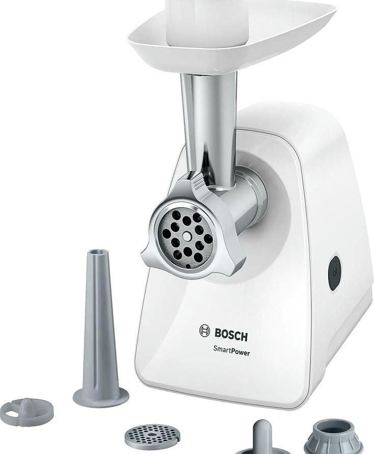 Мясорубка Bosch MFW2520W имеет высокую скорость приготовления фарша благодаря высокой мощности мотора — 1500 Вт (при блокировке мотора). Благодаря продуманной компактной конструкции не требует много места при хранении, это отличное решение для маленьких кухонь. Резиновые ножки для устойчивости на любой поверхности. В комплекте насадка для колбас.
