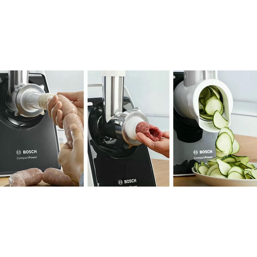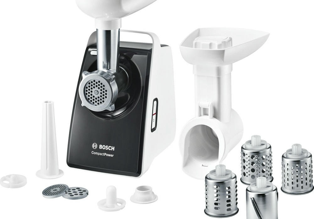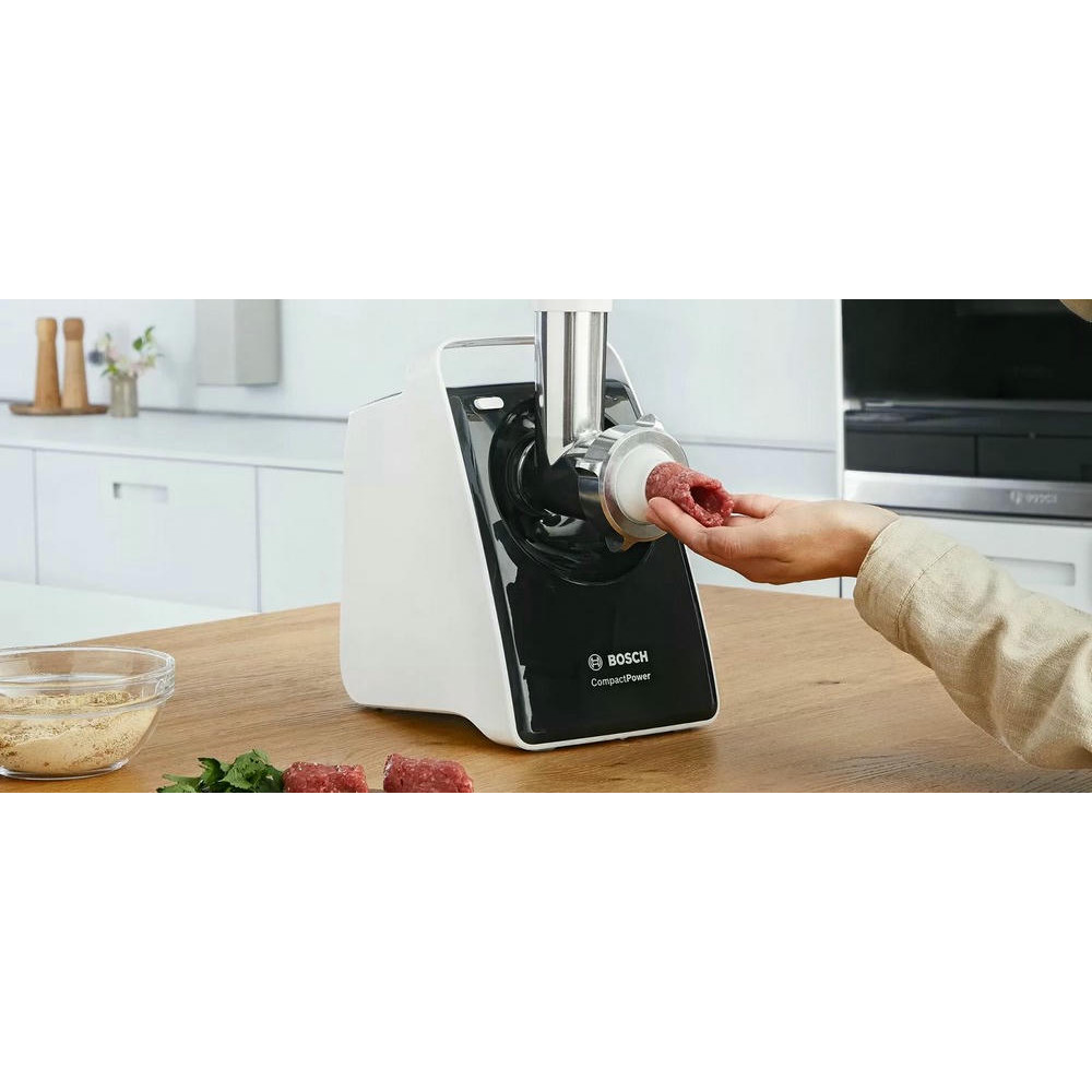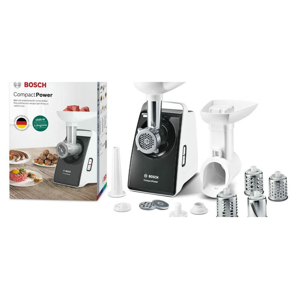 Мясорубка Bosch MFW 3640A CompactPower — многофункциональный прибор с насадками для шинкования овощей, приготовления фарша, колбас и кеббов. Высокая производительность 1.9 кг/мин и надежность прибора сочетается с компактными размерами. При функции реверс появляется возможность провернуть шнек в обратном направлении для очистки.