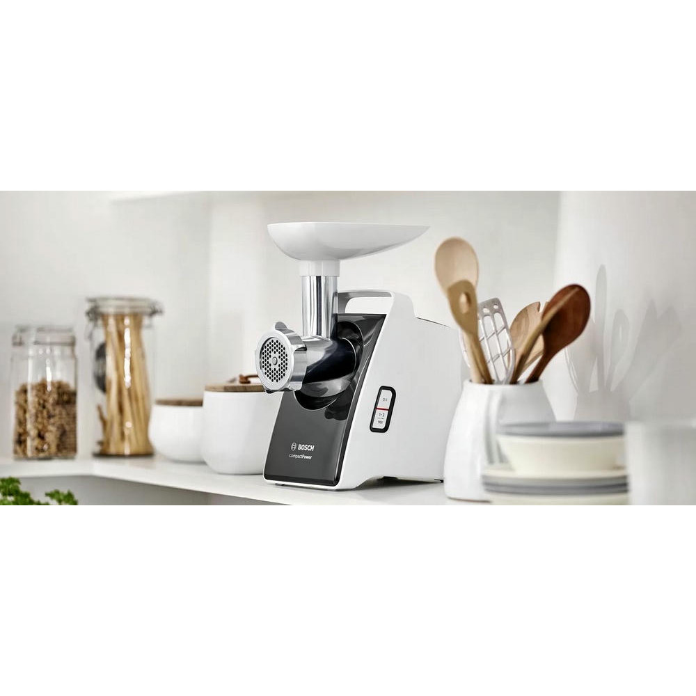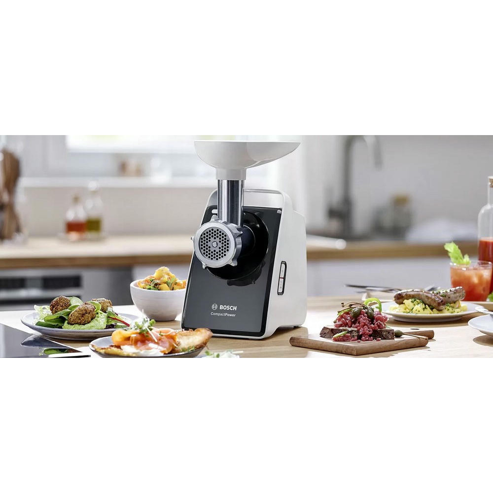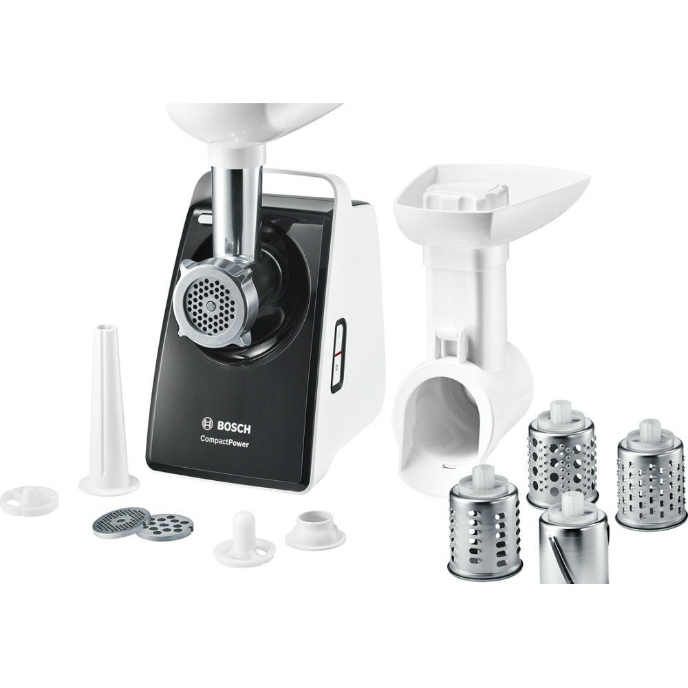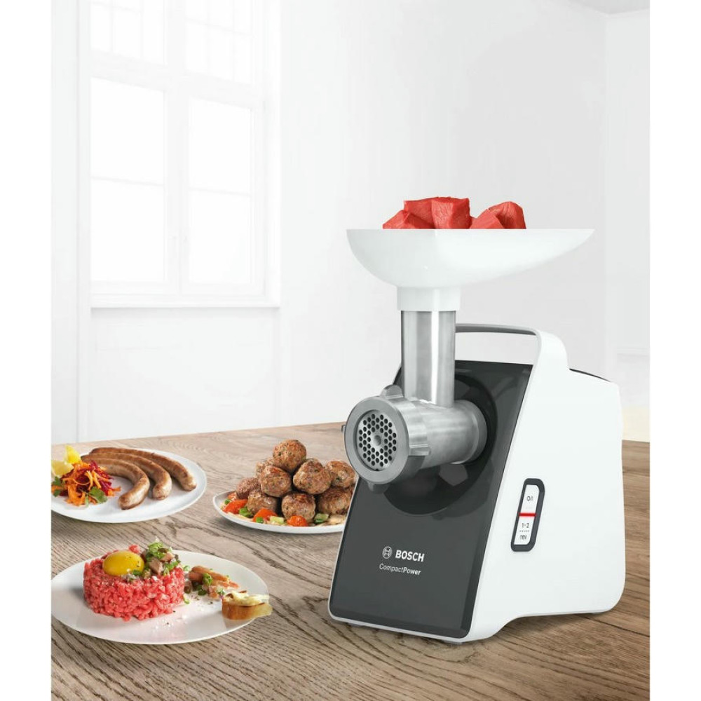 Мясорубка Bosch MFW 3640A CompactPower — многофункциональный прибор с насадками для шинкования овощей, приготовления фарша, колбас и кеббов. Высокая производительность 1.9 кг/мин и надежность прибора сочетается с компактными размерами. При функции реверс появляется возможность провернуть шнек в обратном направлении для очистки.