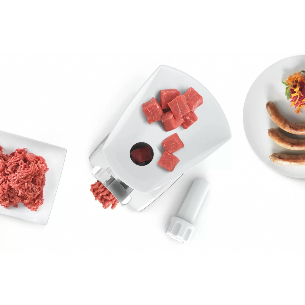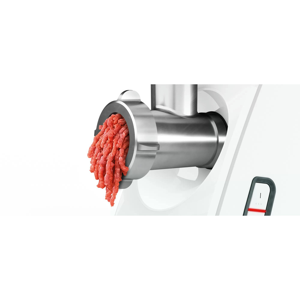Мясорубка Bosch MFW3910W компактная при хранении. Для удобства использования имеет большой загрузочный лоток с толкателем. Нож с двусторонней заточкой для более эффективной и быстрой работы. Благодаря прорезиненным ножкам, мясорубка не ездит по поверхности во время работы.
