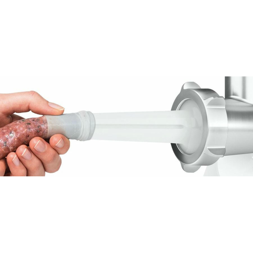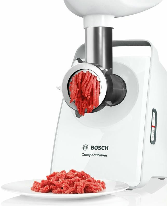С мясорубкой Bosch MFW3X10W вы сможете приготовить абсолютно все, котлеты, паштет, колбасы и т.д. Данная модель способна переработать до 2,5 кг мяса при мощности 2000 Вт. Прорезиненные ножки отвечают за фиксацию на любой поверхности. В комплекте имеются толкатель и насадка для приготовления колбасы.