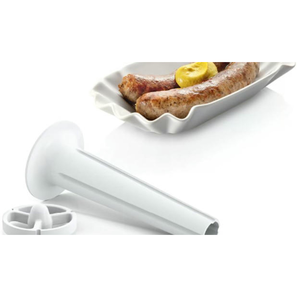 Мясорубку MFW3X13W отличает высокая производительность, удобное управление и надежность. Прибор имеет удобный отсек для хранения формовочных дисков. Благодаря дополнительным насадкам, мясорубка может сделать фарш разной консистенции, измельчить овощи, сыр. В комплекте имеется насадка для колбас, в любой момент вы можете приготовить домашнюю колбасу из свежих продуктов. Нож с двусторонней заточкой справляется с мясом быстрее классических ножей.