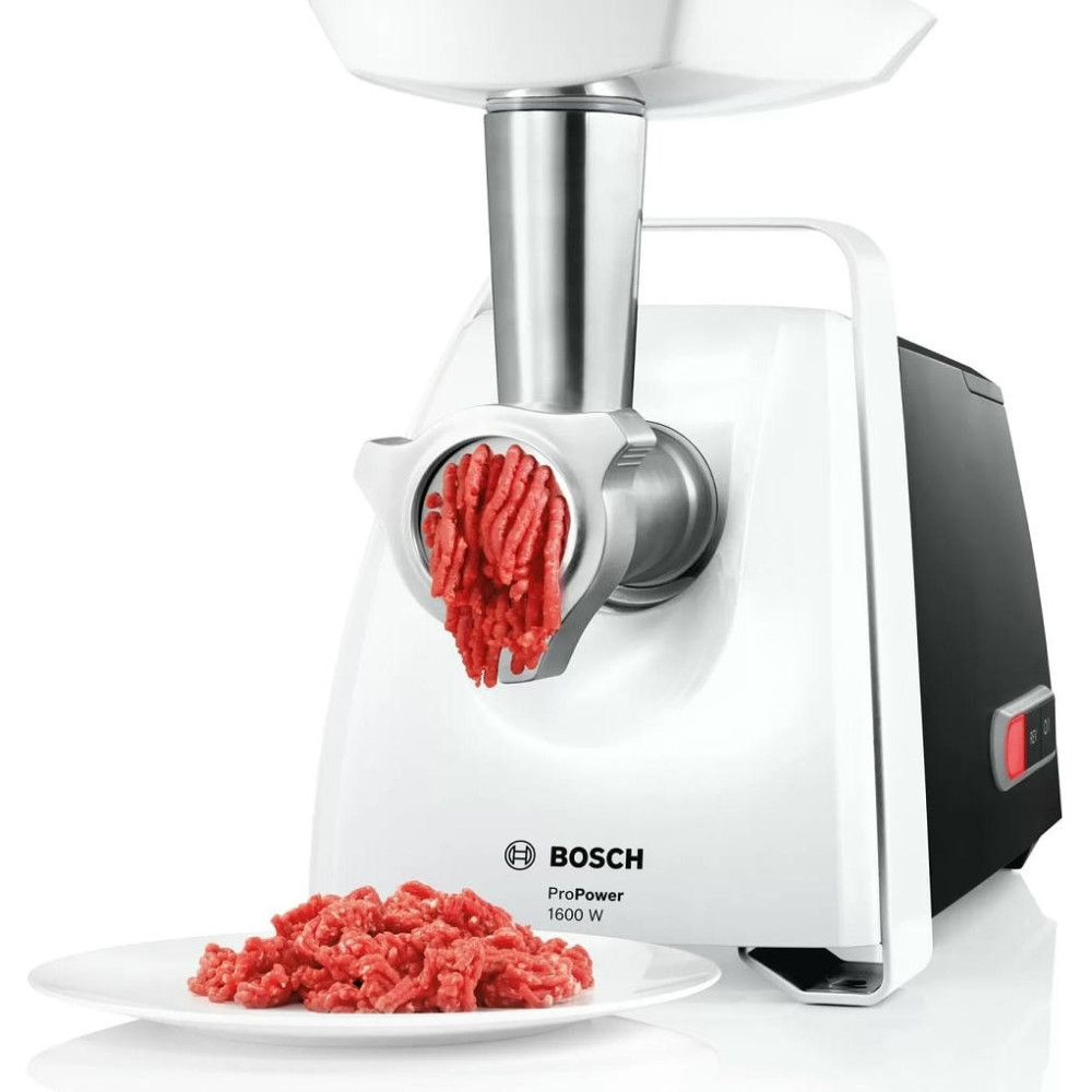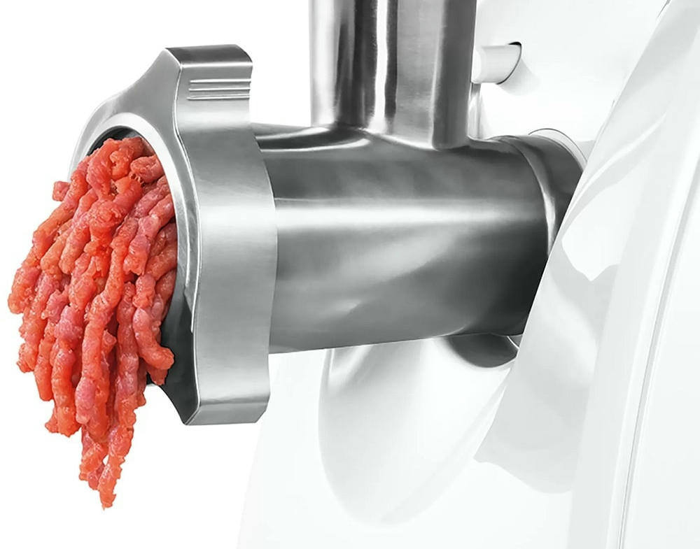 Мясорубка Bosch MFW45000 представлена в сочетании черного и белого цветов и относится к линейке ProPower. Благодаря наличию мощного и надежного мотора ингредиенты размельчаются равномерно и быстро, а в случае их застревания можно активировать функцию реверс, которая прокрутит шнек в обратном направлении и освободит застрявшие продукты. Практичная ручка позволяет без труда переносить прибор, что повышает удобство эксплуатации.