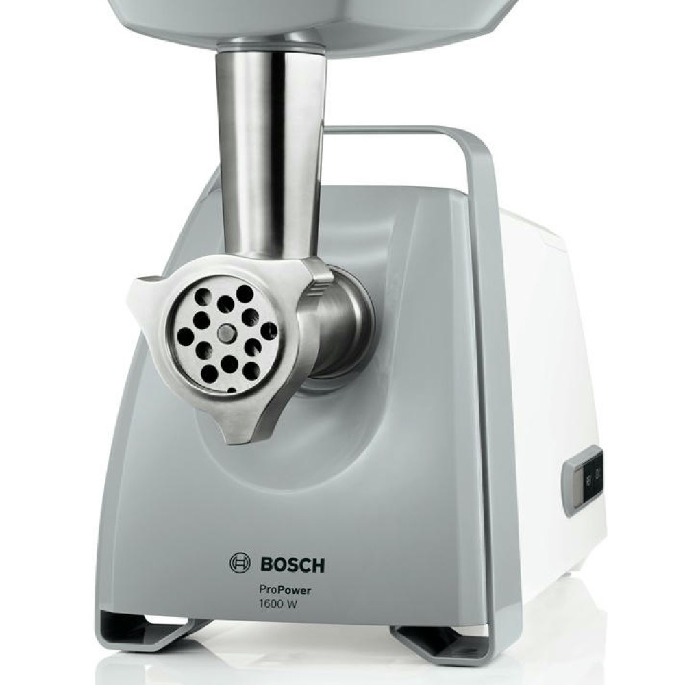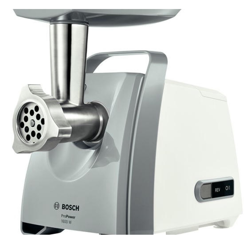 Мясорубка Bosch MFW45020 представлена в сочетании черного и белого цветов и относится к линейке ProPower. Благодаря наличию мощного и надежного мотора ингредиенты размельчаются равномерно и быстро, а в случае их застревания можно активировать функцию реверс, которая прокрутит шнек в обратном направлении и освободит застрявшие продукты. Практичная ручка позволяет без труда переносить прибор, что повышает удобство эксплуатации.