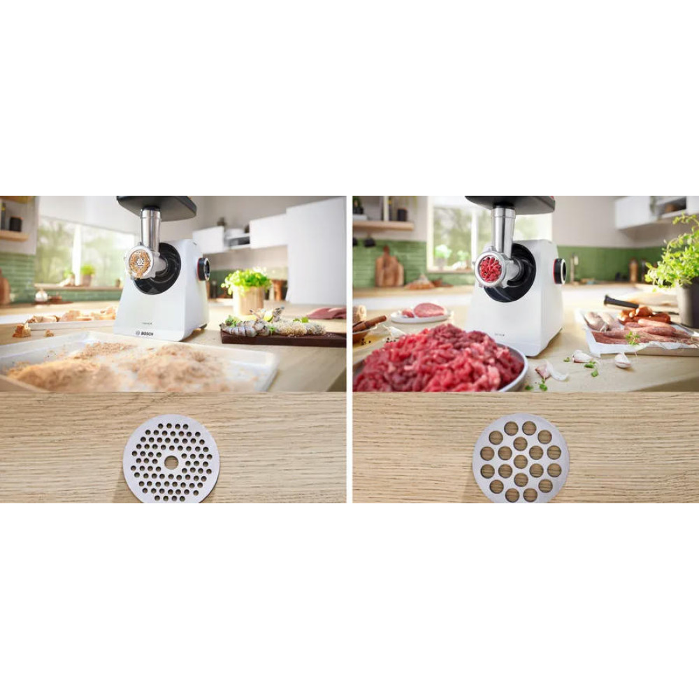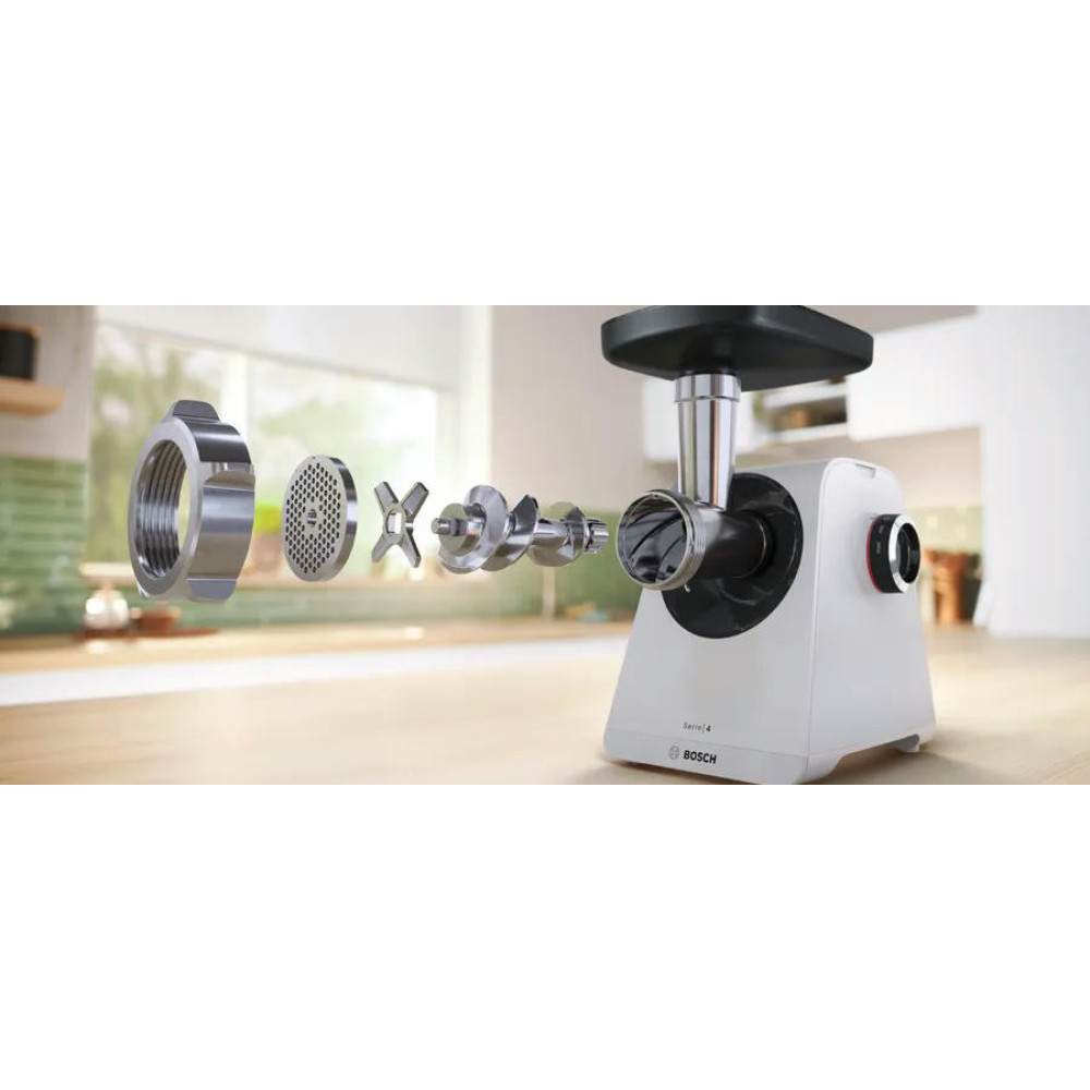 Мясорубка Bosch MFWS420W - это современное и функциональное устройство, которое станет незаменимым помощником на кухне. Благодаря своему элегантному дизайну и белому цвету, она легко впишется в любой интерьер. Корпус изготовлен из высококачественного пластика, что обеспечивает долговечность и надежность при длительном использовании. Устройство оснащено двумя скоростями, что позволяет выбирать оптимальный режим в зависимости от видов работ. В комплекте с мясорубкой идет 2 насадок, что делает ее универсальным инструментом для приготовления разнообразных блюд. Нож с двустронней заточкой гарантирует идеальное рубление мяса, а формовочные диски для фарша позволяют получить продукт нужной консистенции.