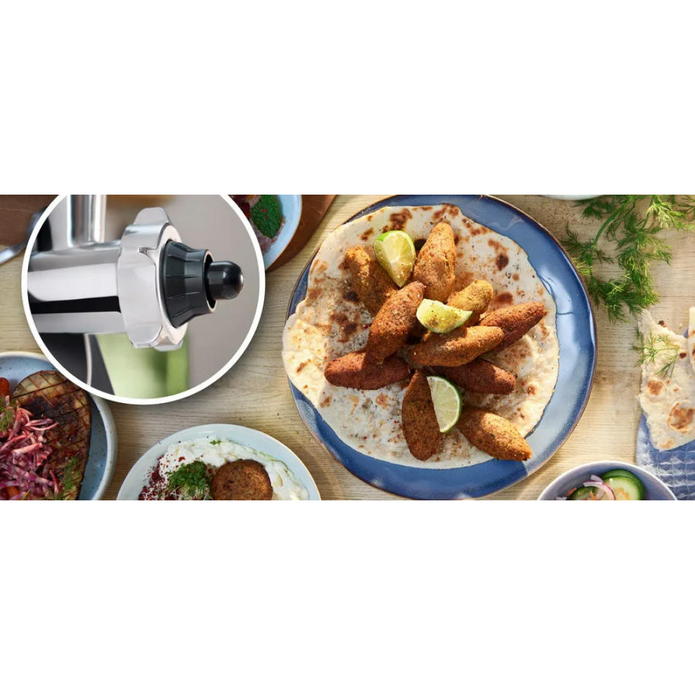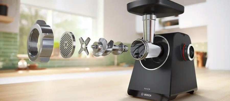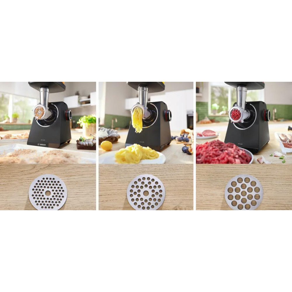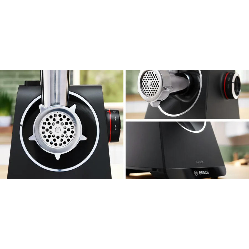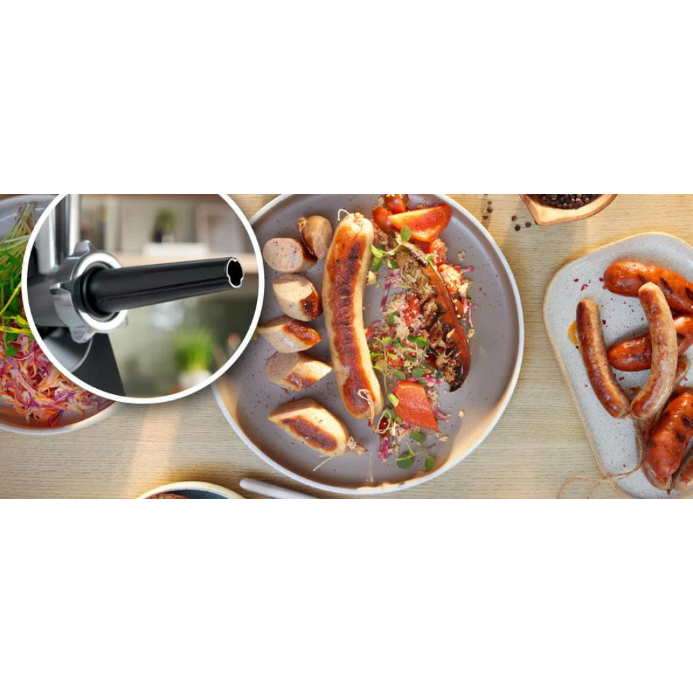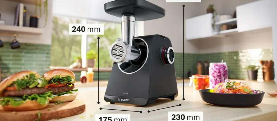 Мясорубка Bosch MFWS440B является высококачественным и надежным помощником на кухне. Она выполнена в классическом черном цвете, что позволяет ей гармонично вписаться в любой интерьер. Корпус мясорубки изготовлен из прочного пластика, что делает ее легкой и удобной в использовании. Эта модель оснащена двумя скоростями, что делает ее универсальной для разных видов работ. Благодаря этой функции, вы можете выбрать оптимальную скорость в зависимости от типа мяса и желаемой консистенции фарша. Мясорубка оснащена шестью насадками и четырьмя барабанами (три терки и одна шинковка), что позволяет использовать ее не только для измельчения мяса, но и для приготовления различных блюд и закусок.