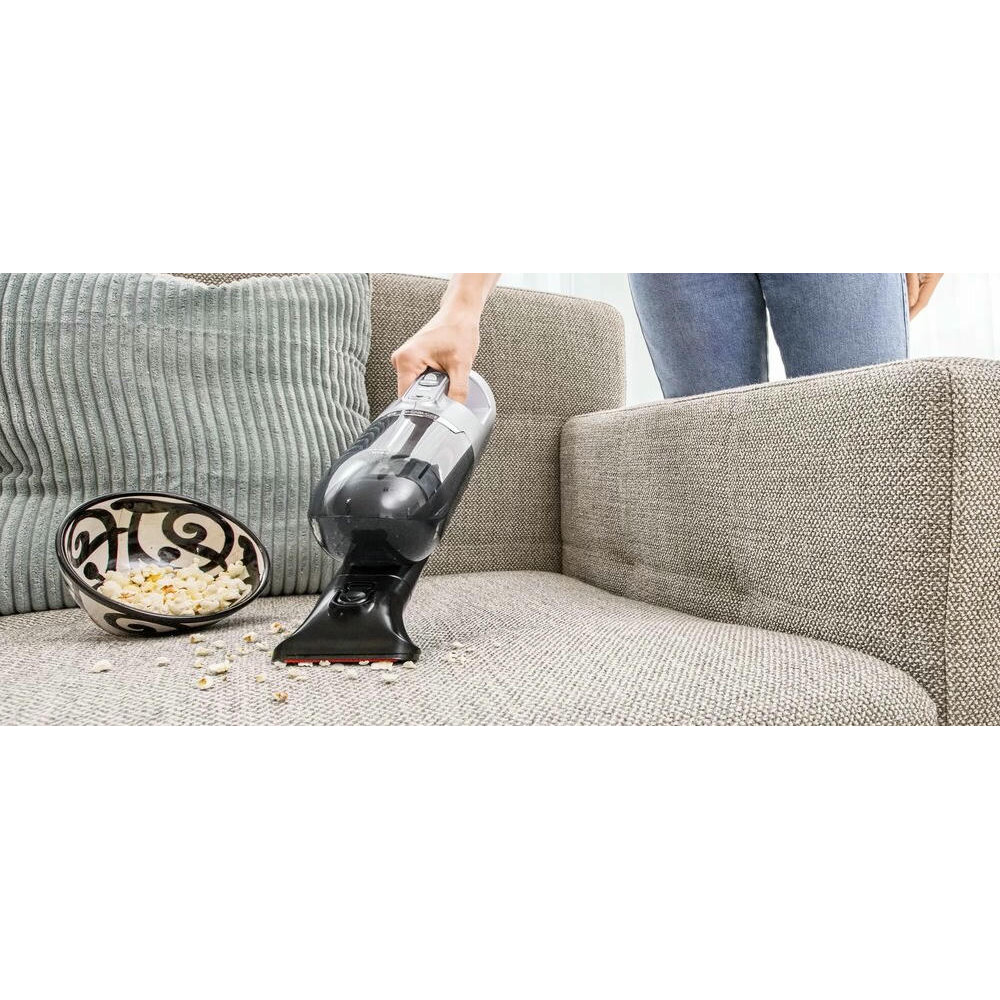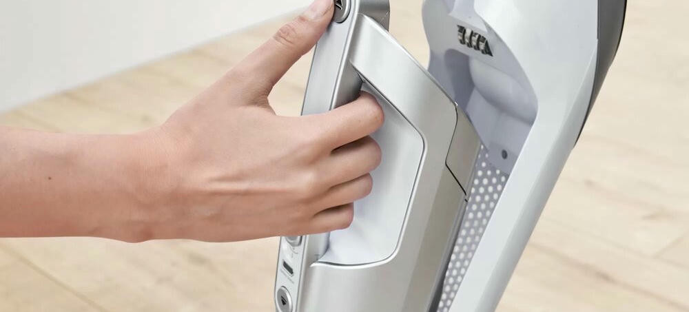 Мощность всасывания регулируется с помощью кнопки на ручке. Благодаря наличию герметичного контейнера на 0,4 л допускается сбор пролившихся жидкостей. Это очень сильно облегчает процесс, когда надо что-то быстро убрать и не допустить полное впитывание и высыхание. Комфортной эксплуатации способствует наличие яркого индикатора уровня заряда и регулятора мощности, расположенного на корпусе. Работа прибора осуществляется на уровне шума равного 82 дБ. За счет этого подразумевается неограниченный радиус действия техники, возможности удобной чистки салона автомобиля, удаления пыли в труднодоступных местах и на высоких шкафах.
