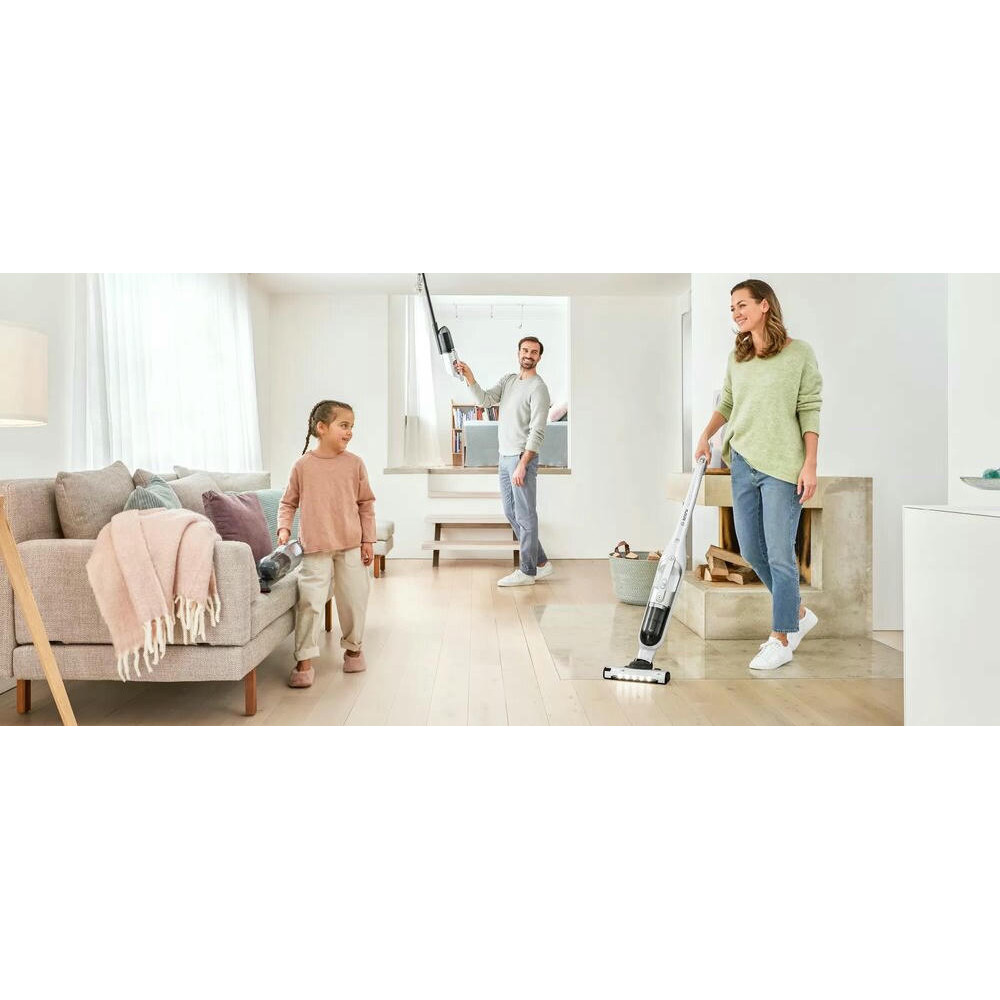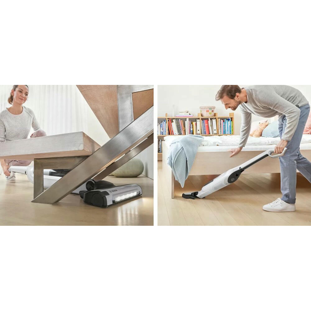 Пылесос Бош BBH3ALL28 имеет систему 2 в 1, это значит, что вы можете использовать его в обычном и ручном, портативном режиме, он легко отсоединяется. Благодаря инновационному дизайну и удобному доступу, вы можете быстро и легко извлечь и опорожнить контейнер с пылью, минимизируя контакт с грязью. Турбощетка PowerBrush оснащена светодиодной подсветкой с помощью нее можно убирать паркеты, ковры и плитку.