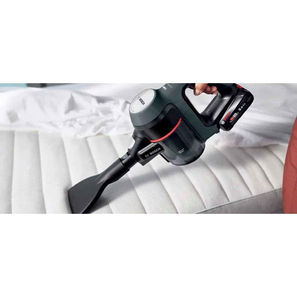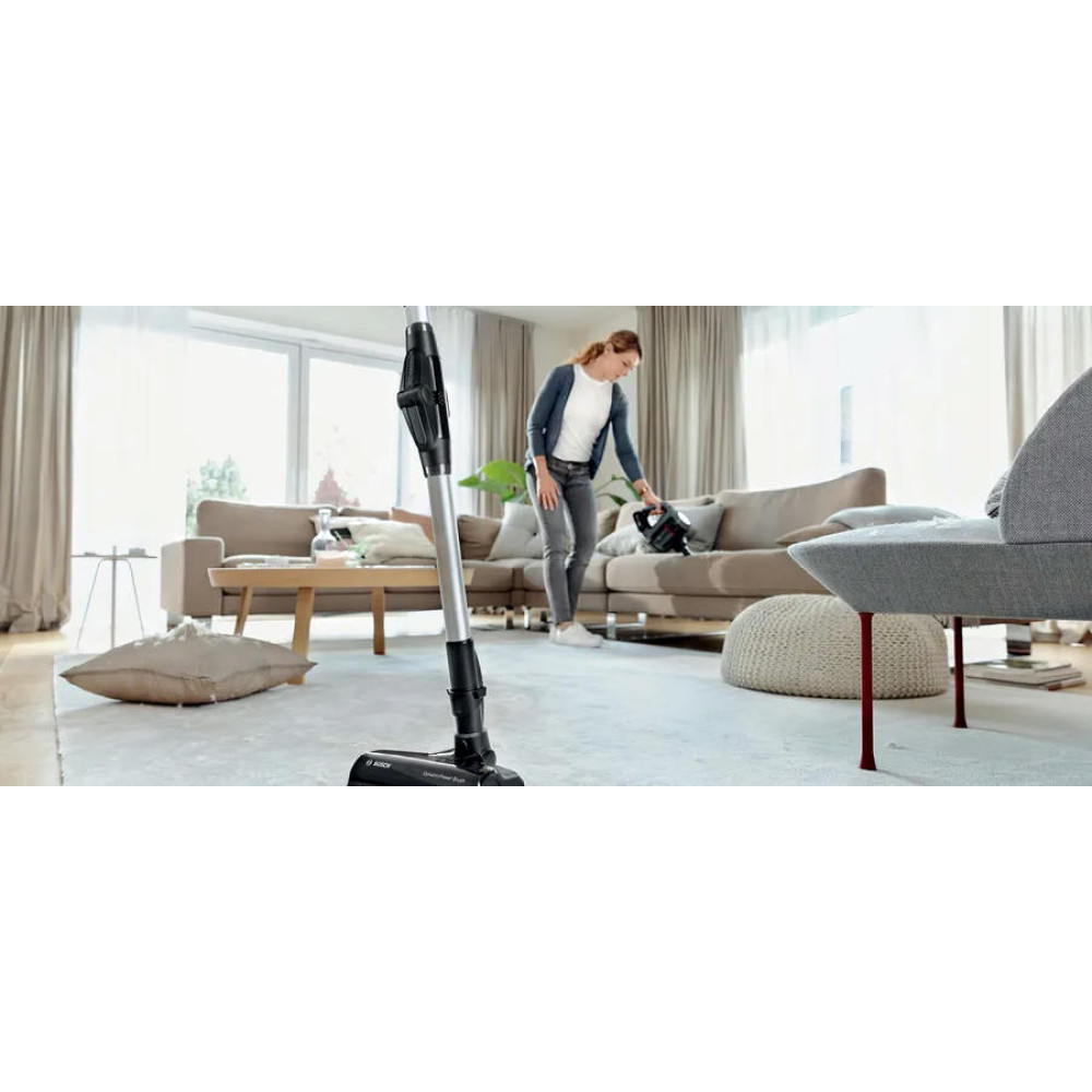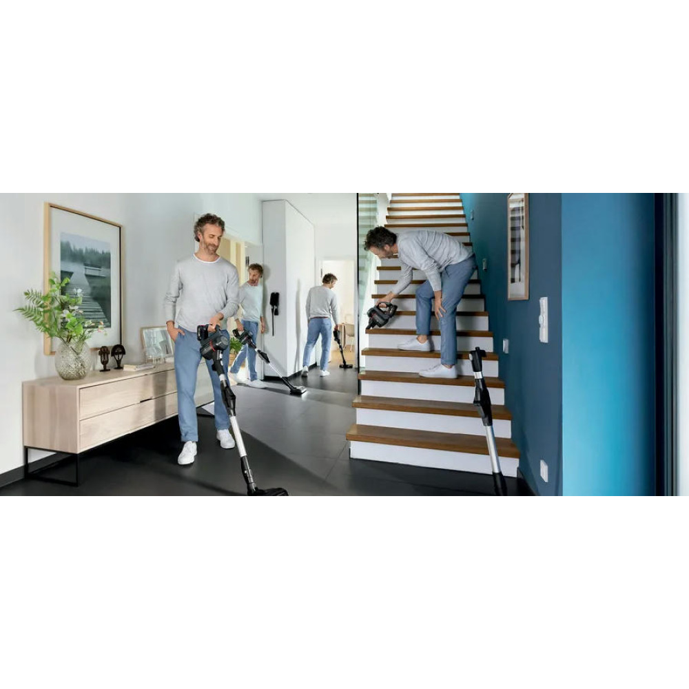 Пылесос имеет три уровня производительности, что позволяет выбирать оптимальный режим в зависимости от сложности уборки. Система гигиенической фильтрации HEPA обеспечивает высокую степень очистки воздуха от пыли и аллергенов. Это делает использование пылесоса особенно полезным для людей с аллергией или астмой. Bosch BBS712A оснащен телескопической трубой всасывания, что позволяет удобно убирать в труднодоступных местах. В комплекте с пылесосом идут электрощетка и турбощетка, щелевая насадка, насадка для мягкой мебели и моющая насадка для мебельной обивки. Источником питания пылесоса является аккумулятор, который обеспечивает до 40 минут работы без подзарядки. Время подзарядки составляет 5 часов. В комплекте поставляется зарядное устройство. Уровень шума пылесоса составляет 82 дБ, что соответствует среднему уровню шума для подобного типа устройств. Вес нетто пылесоса составляет 3.9 кг, что делает его достаточно легким и удобным для переноски.