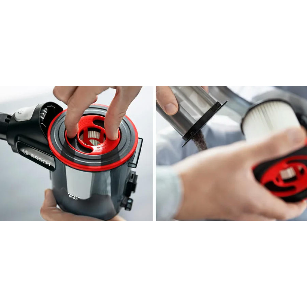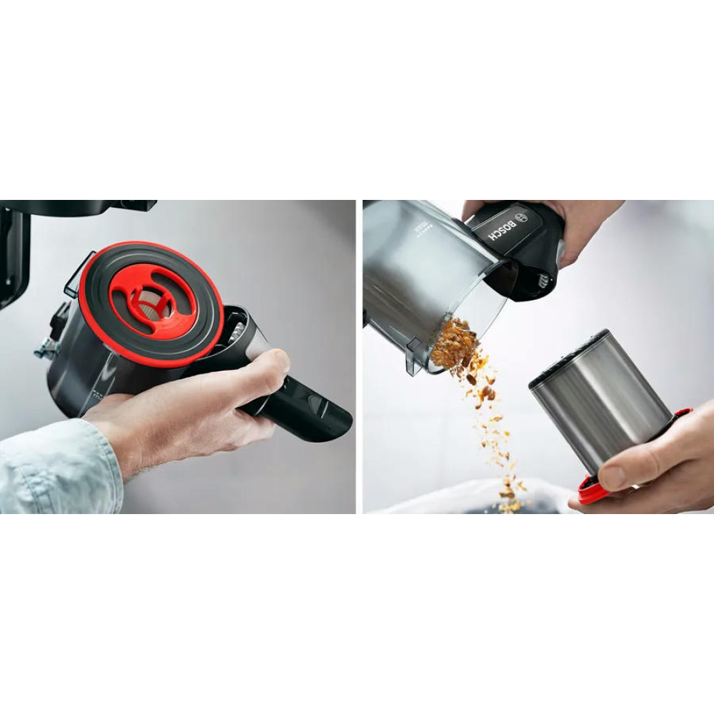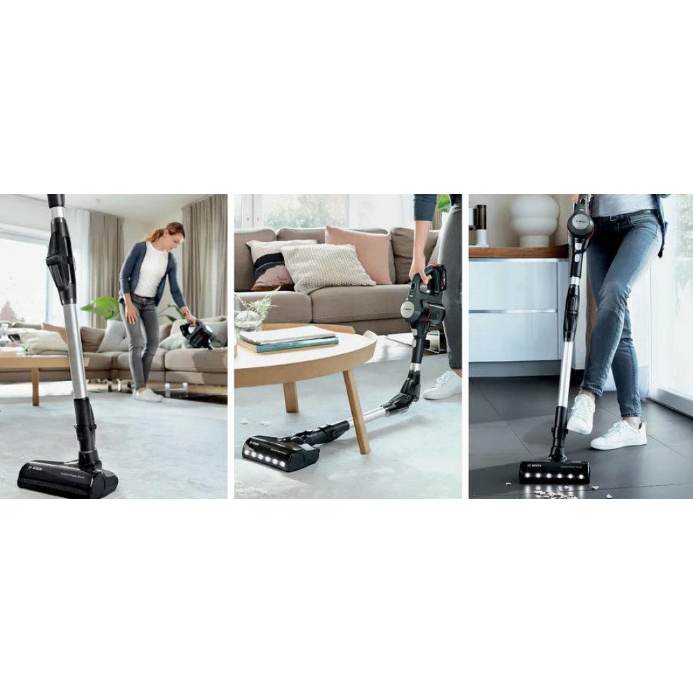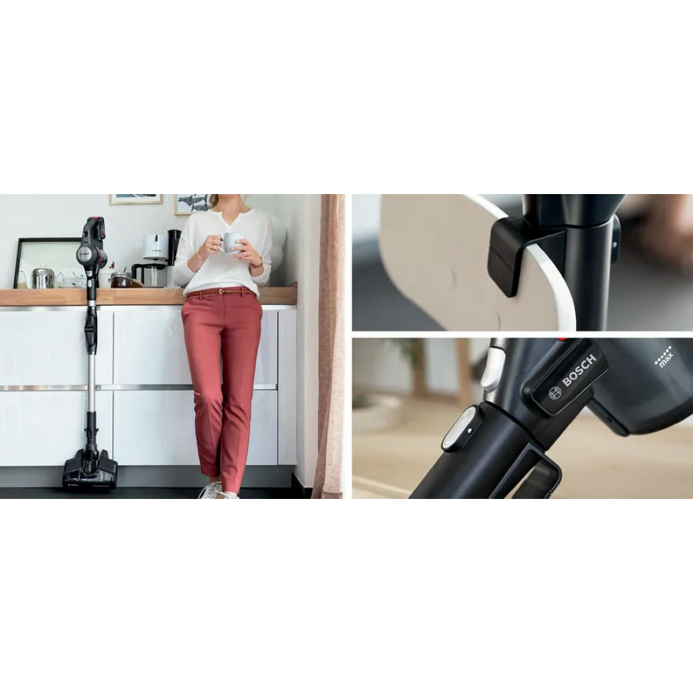 Пылесос имеет три уровня производительности, что позволяет выбирать оптимальный режим в зависимости от сложности уборки. Система гигиенической фильтрации HEPA обеспечивает высокую степень очистки воздуха от пыли и аллергенов. Это делает использование пылесоса особенно полезным для людей с аллергией или астмой. Bosch BBS712A оснащен телескопической трубой всасывания, что позволяет удобно убирать в труднодоступных местах. В комплекте с пылесосом идут электрощетка и турбощетка, щелевая насадка, насадка для мягкой мебели и моющая насадка для мебельной обивки. Источником питания пылесоса является аккумулятор, который обеспечивает до 40 минут работы без подзарядки. Время подзарядки составляет 5 часов. В комплекте поставляется зарядное устройство. Уровень шума пылесоса составляет 82 дБ, что соответствует среднему уровню шума для подобного типа устройств. Вес нетто пылесоса составляет 3.9 кг, что делает его достаточно легким и удобным для переноски.