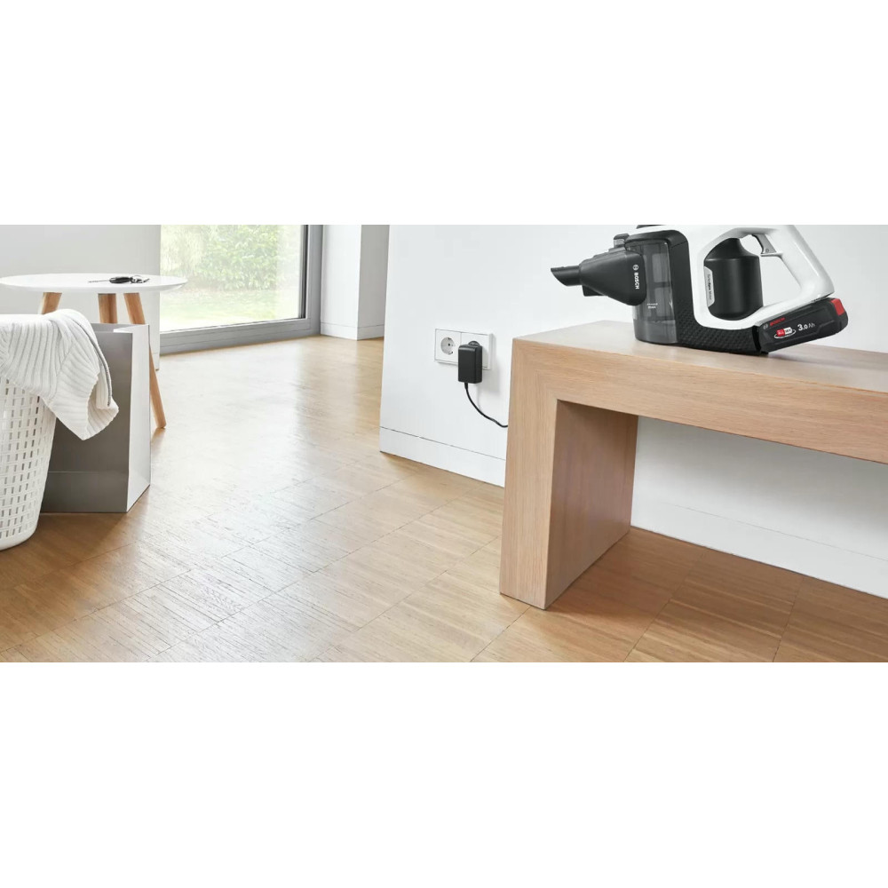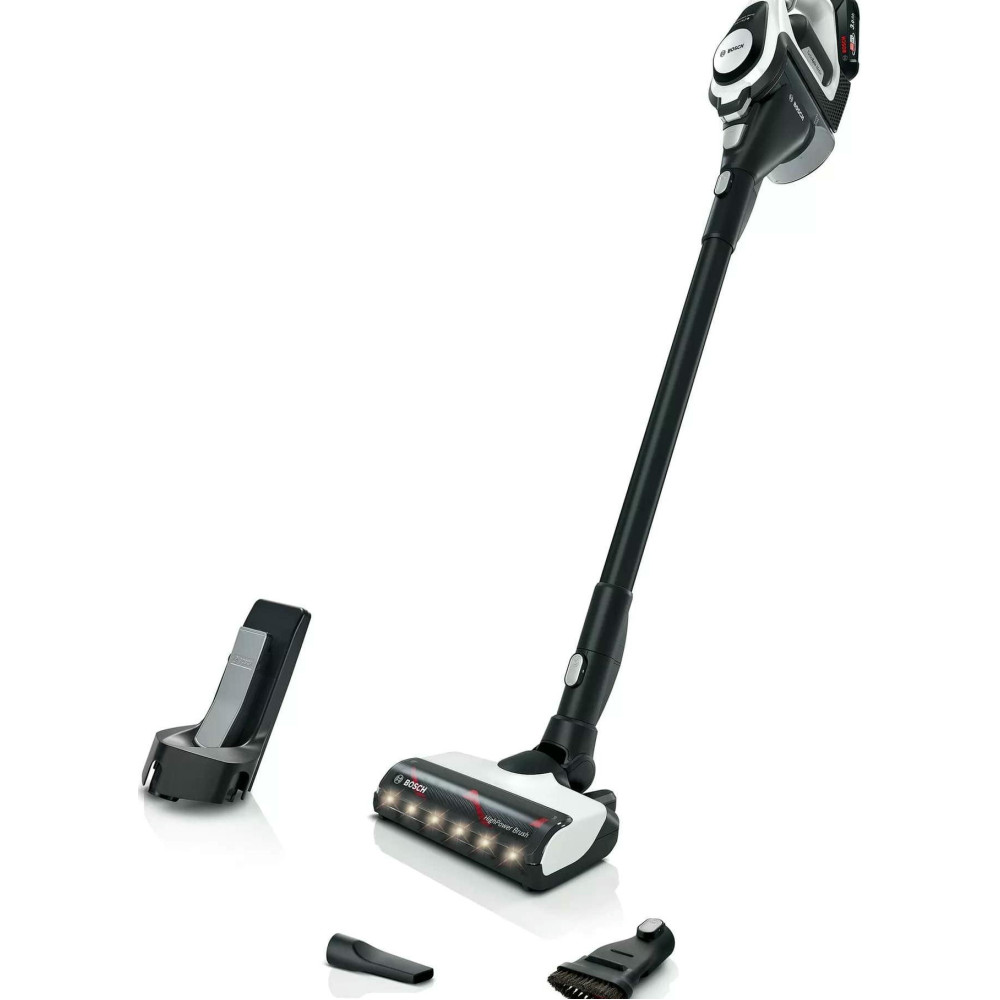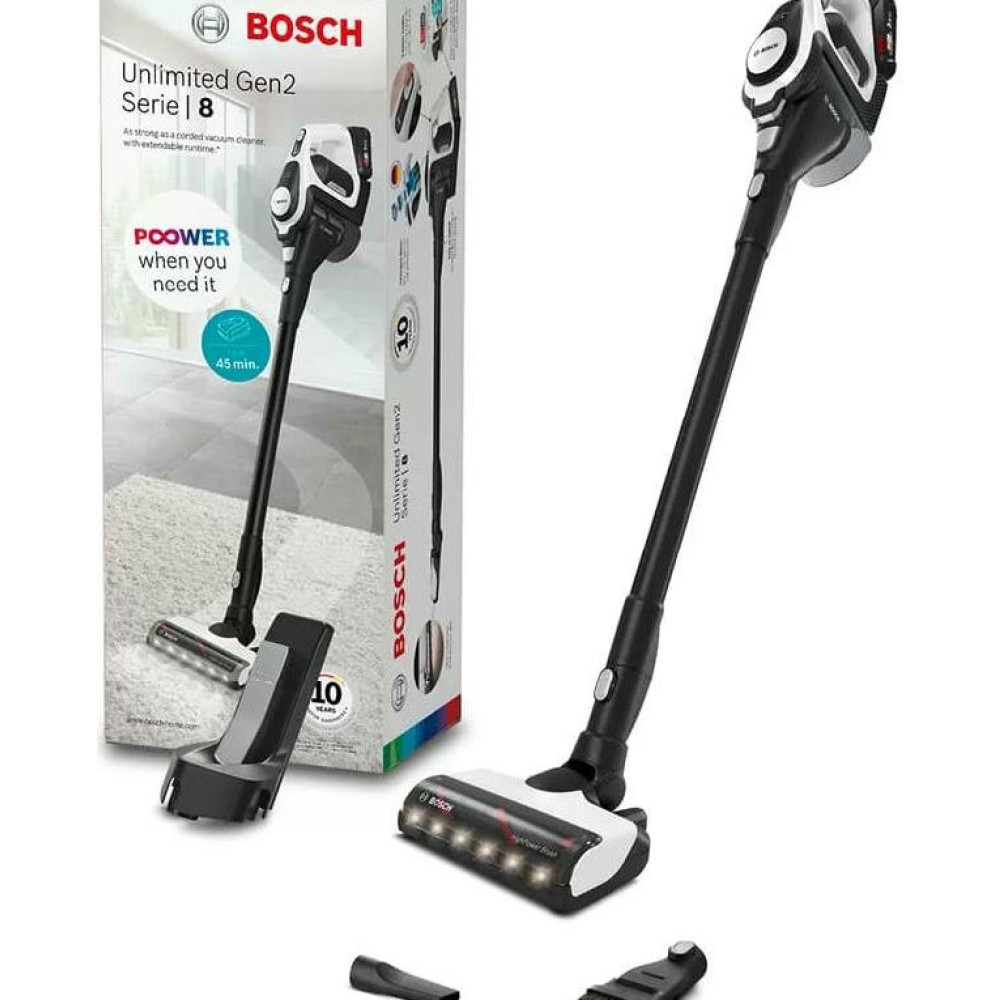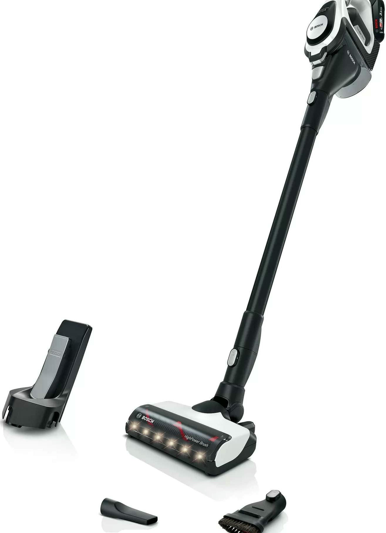 Пылесос Bosch BBS8213W работает без проводов на основе аккумулятора, при этом характеризуется высокой производительностью с поглощением до 99.9% пыли. Турбощетка AllFloor HighPower со светодиодной подсветкой обеспечивает тщательную уборку на различных покрытиях. Сбор пыли осуществляется в контейнер емкостью 0.4 л. На рукоятке расположены кнопки регулировки уровня мощности. Аккумулятор гарантирует в пределах 45 минут автономной работы и отличается быстрым процессом восстановления заряда.