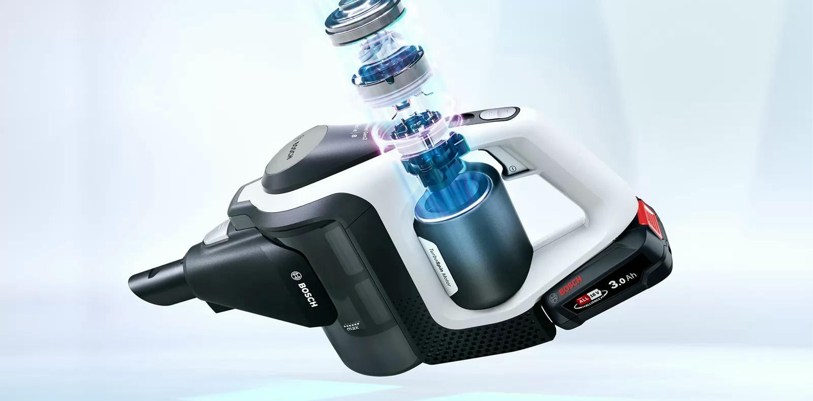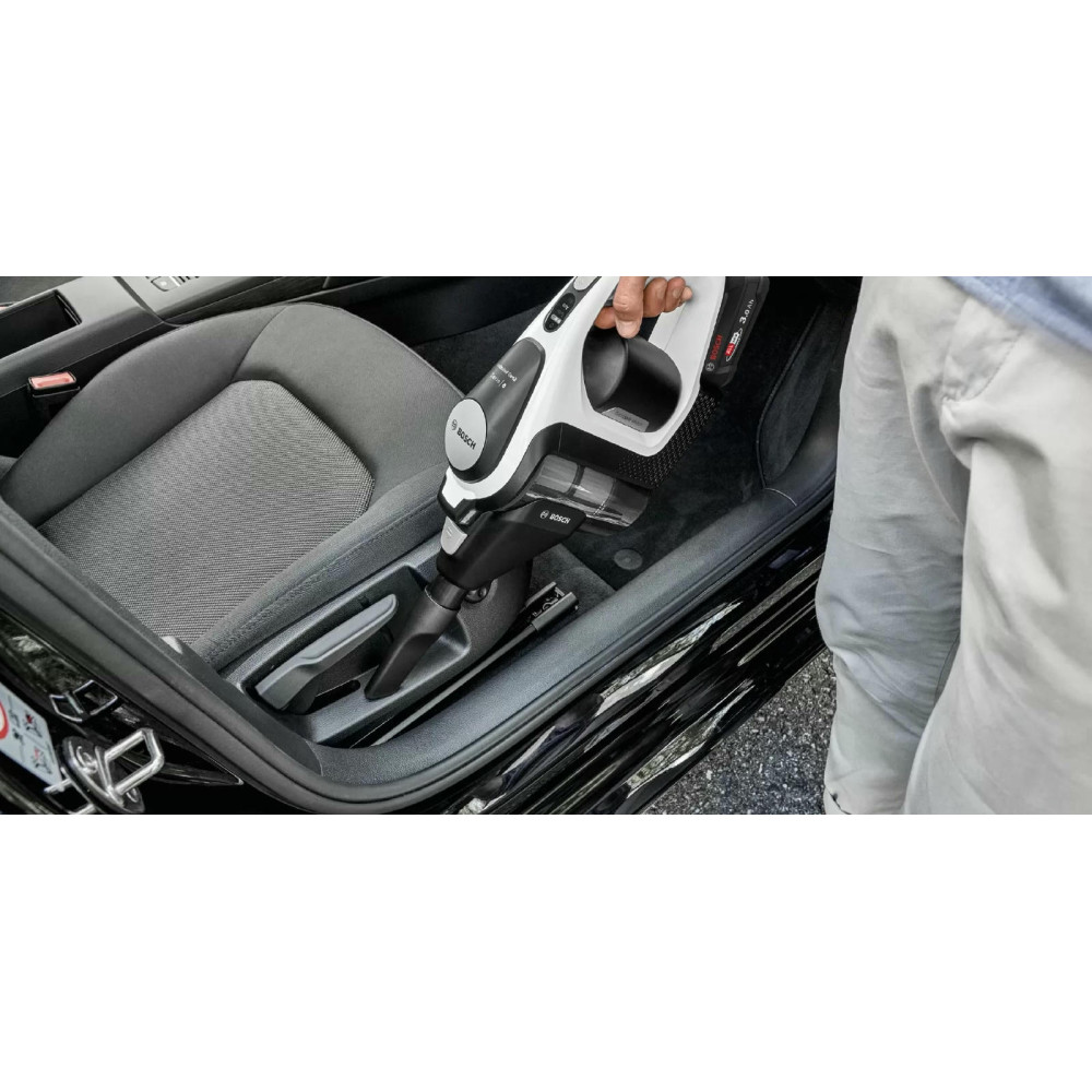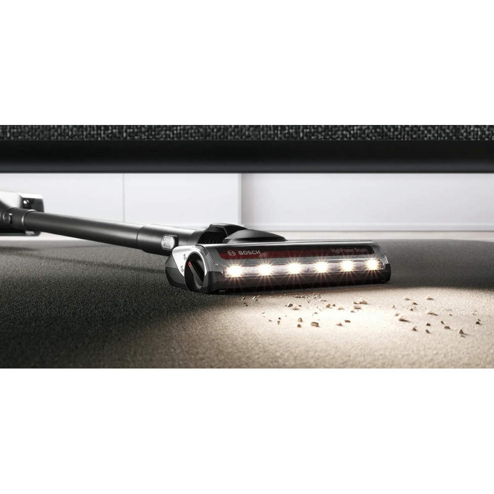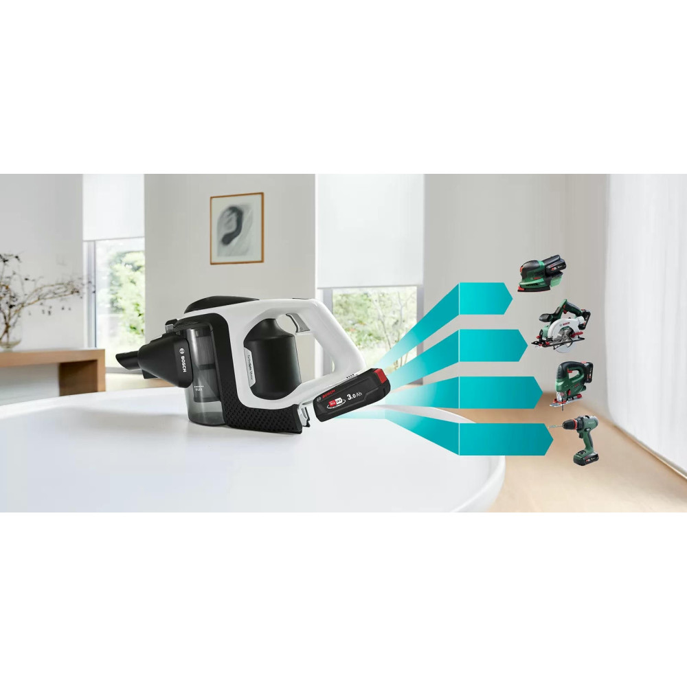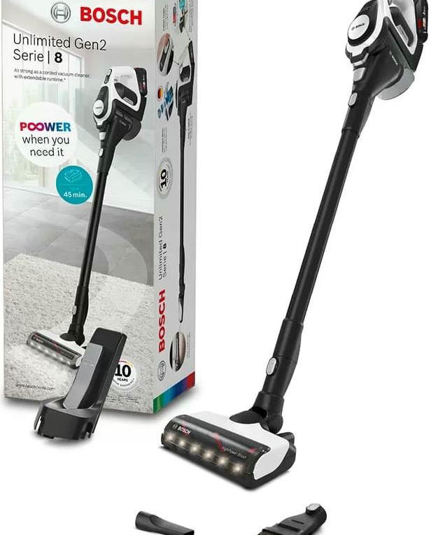 Пылесос Bosch BBS8213W работает без проводов на основе аккумулятора, при этом характеризуется высокой производительностью с поглощением до 99.9% пыли. Турбощетка AllFloor HighPower со светодиодной подсветкой обеспечивает тщательную уборку на различных покрытиях. Сбор пыли осуществляется в контейнер емкостью 0.4 л. На рукоятке расположены кнопки регулировки уровня мощности. Аккумулятор гарантирует в пределах 45 минут автономной работы и отличается быстрым процессом восстановления заряда.