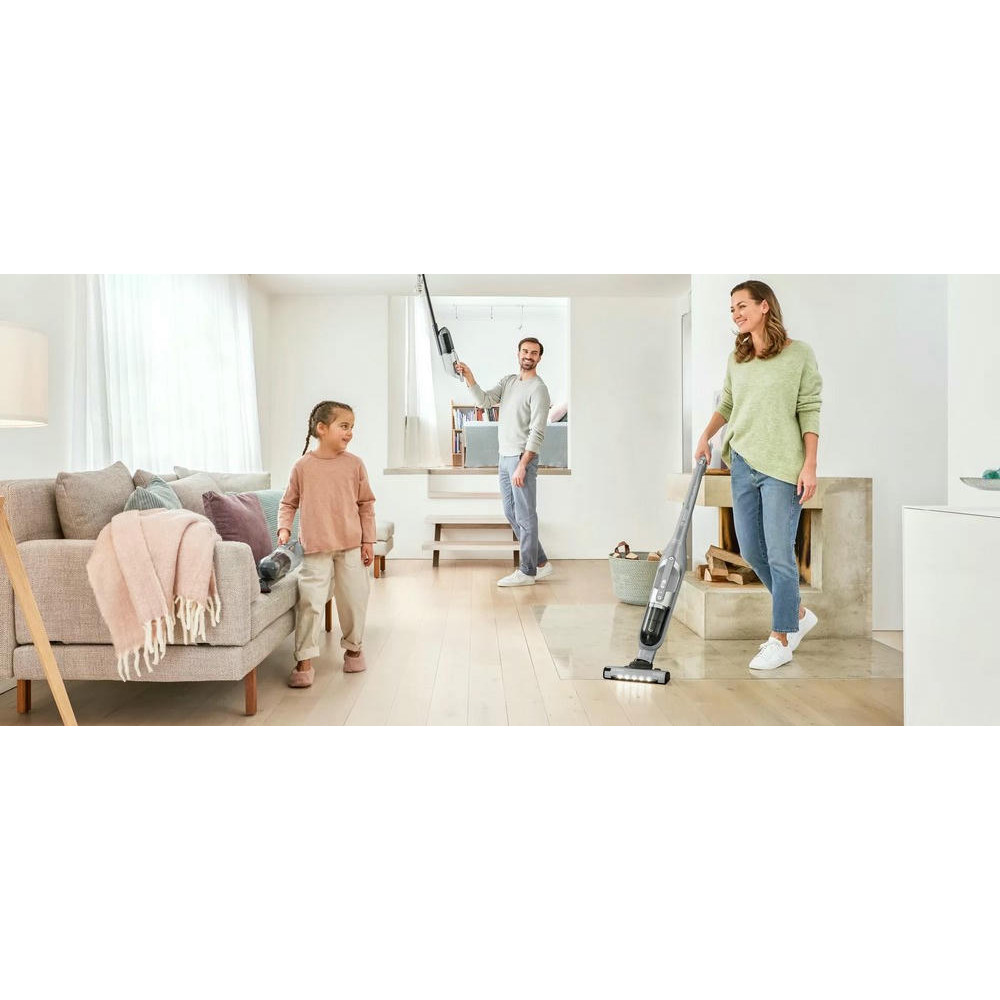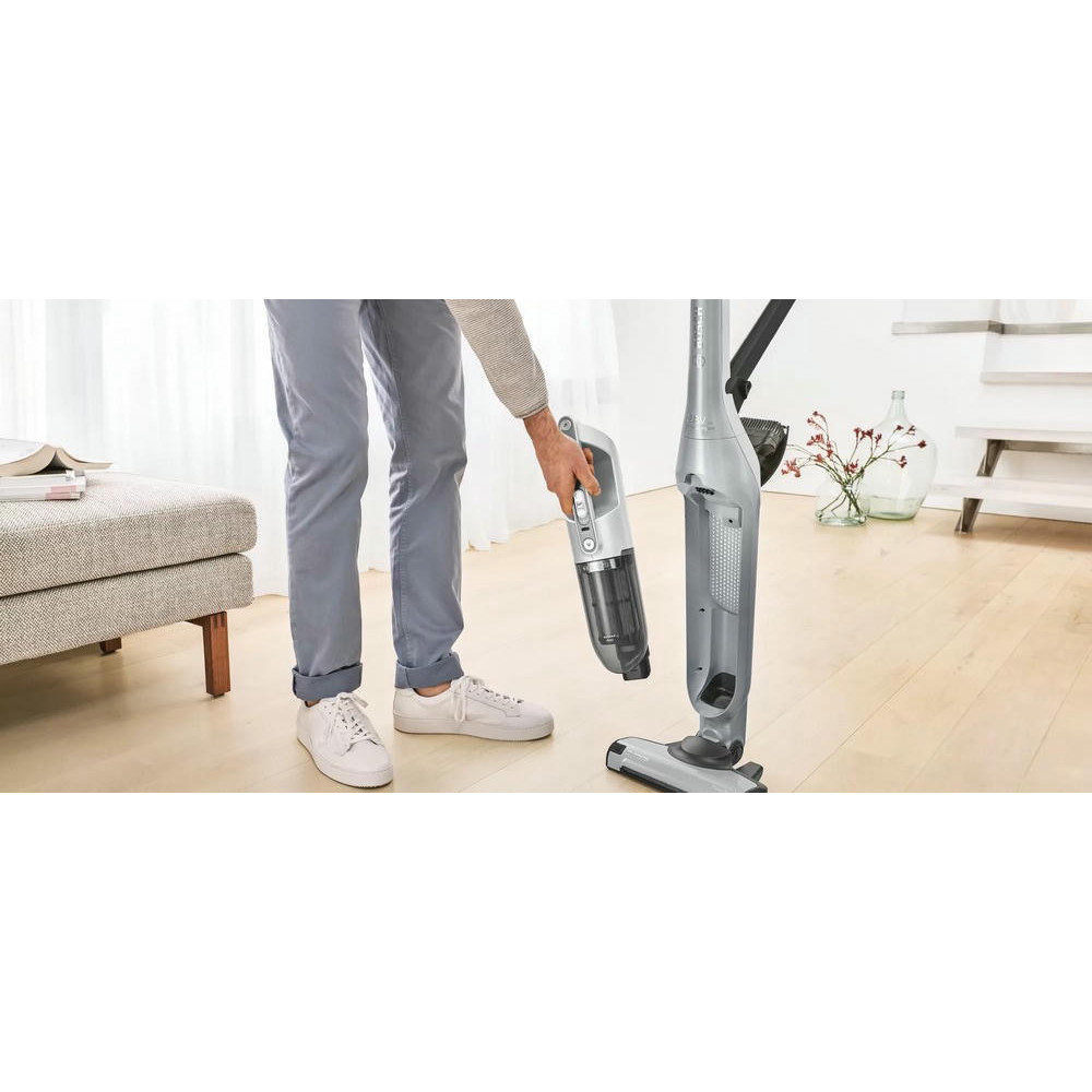 Bosch BCH3K2301 — современный многофункциональный пылесос 2в1. Устройство можно использовать как переносной ручной прибор, который подходит для быстрой уборки мебели, труднодоступных мест, а также для уборки в автомобиле. Li-ion аккумулятор обеспечивает высокую производительность и длительное времы работы. Пластиковый контейнер для сбора пыли объемом 0,4 литра легко очищается.