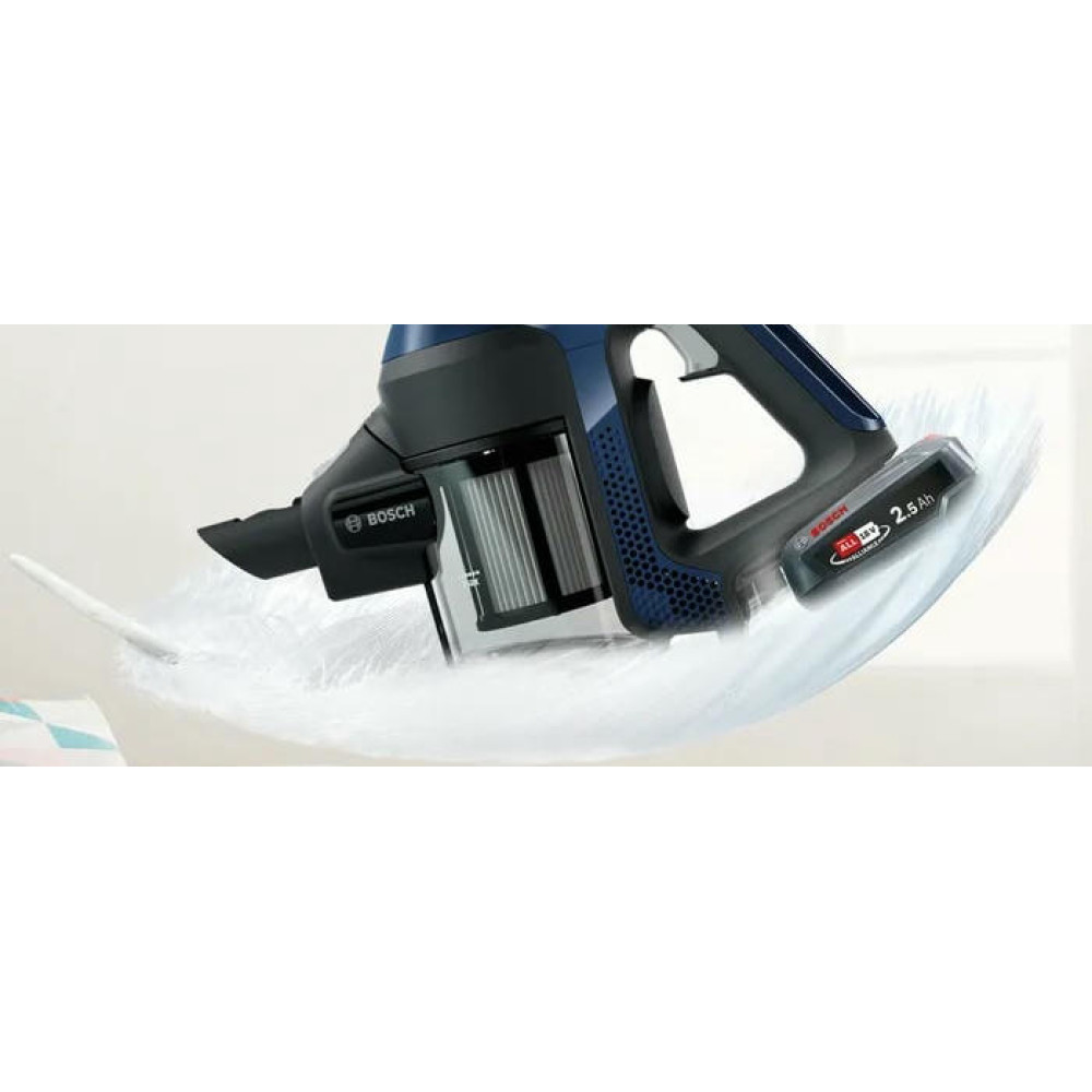 Пылесос Bosch BCS611P4A выполнен в сапфировом синим цвете. Благодаря технологии Power for ALL аккумуляторные батареи подходят к большинству электротехники Бош. Компактные размеры и легкий вес обеспечат комфортную эксплуатацию и удобное хранение прибора. Бесщеточный двигатель DigitalSpin произведен в Германии по новым технологиям и прослужит долгое время.