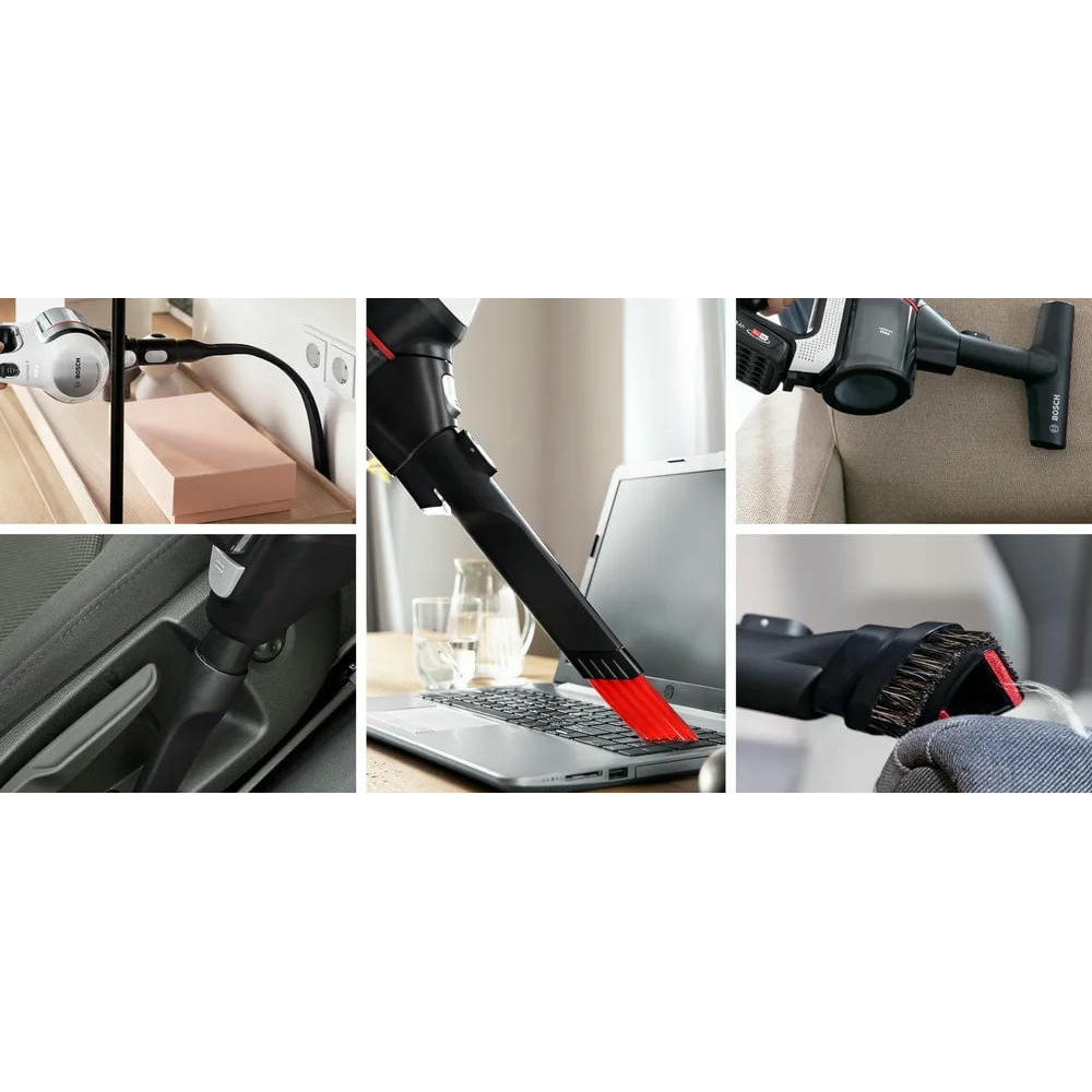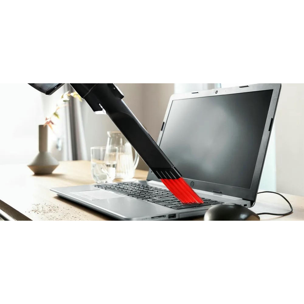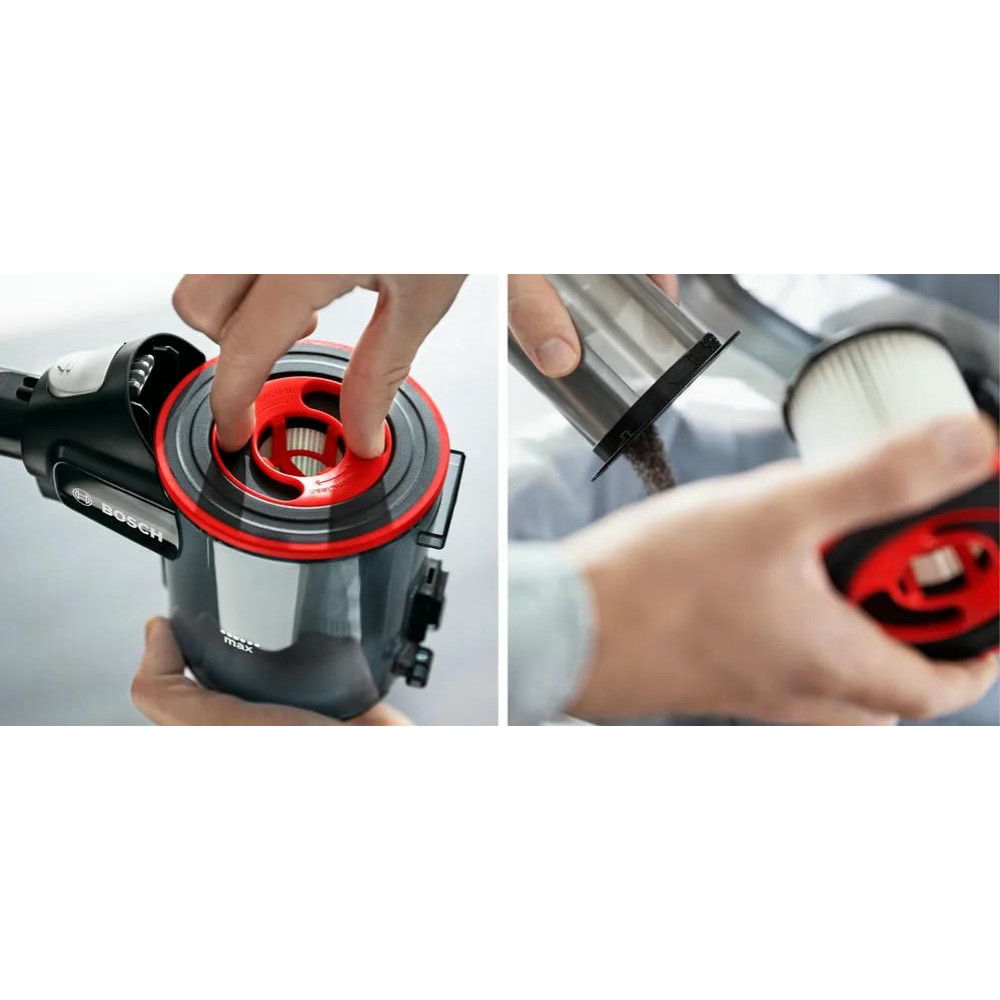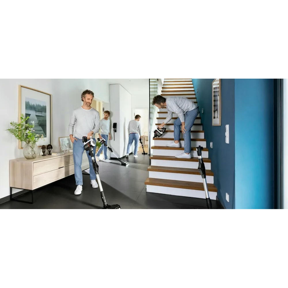 Одной из особенностей этого пылесоса является его 2 в 1 функциональность. Он также служит как съемный портативный пылесос, что делает его исключительно удобным и многофункциональным. Это 3 в 1 устройство обеспечивает электронную регулировку мощности с поворотным регулятором и регулятором мощности на ручке, что позволяет вам выбирать между тремя уровнями производительности в зависимости от сложности уборки. Система гигиенической фильтрации контейнерного типа и объем контейнера для сбора пыли 0.3 литра обеспечивают эффективное и гигиеничное удаление пыли. Легкая очистка контейнера делает обслуживание устройства простым и беззаботным. Пылесос оснащен мини-насадкой Unlimited и насадкой для мягкой мебели, а также мини-турбощеткой ProAnimal для сбора шерсти.