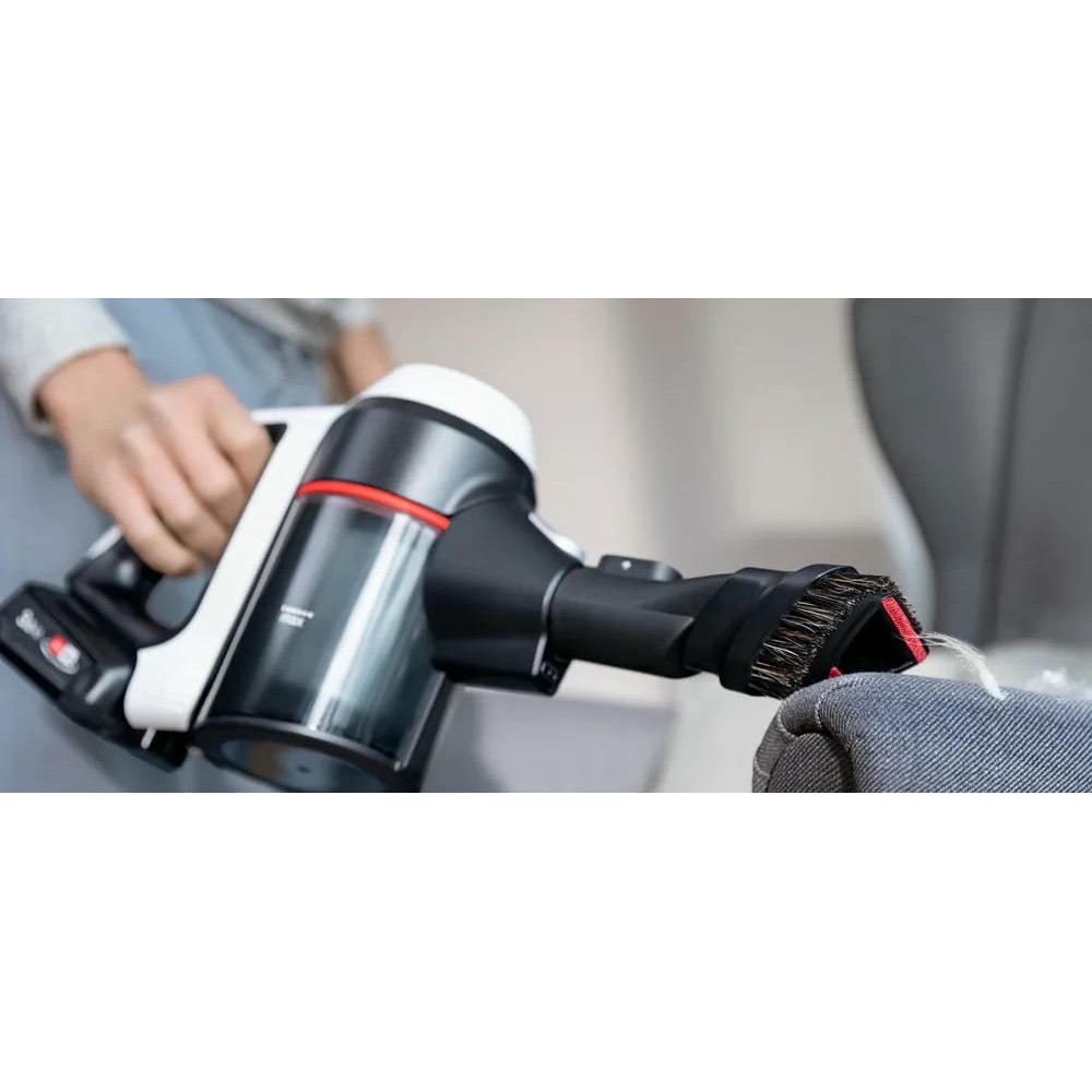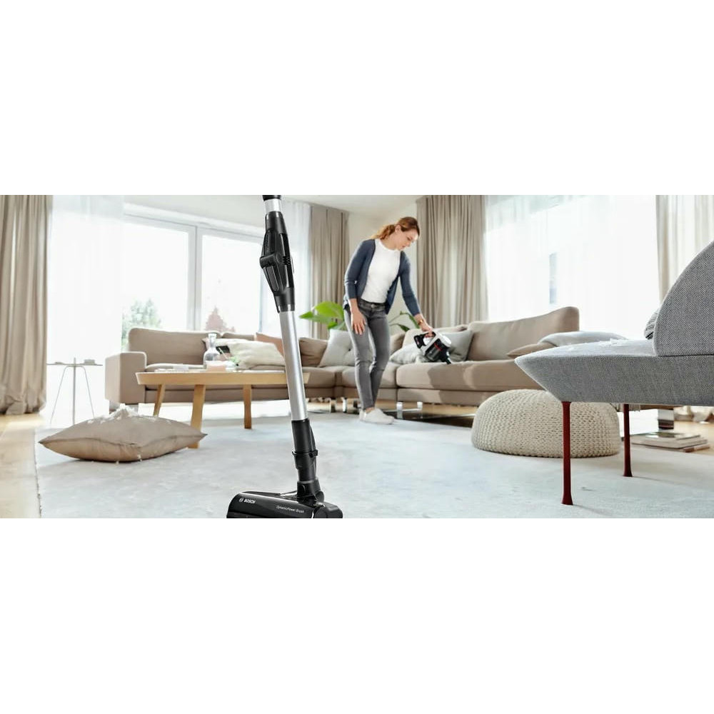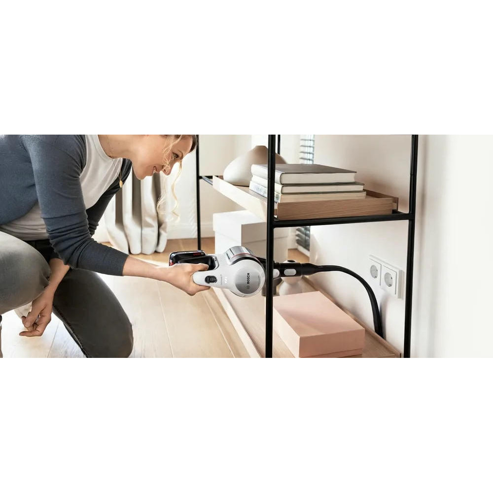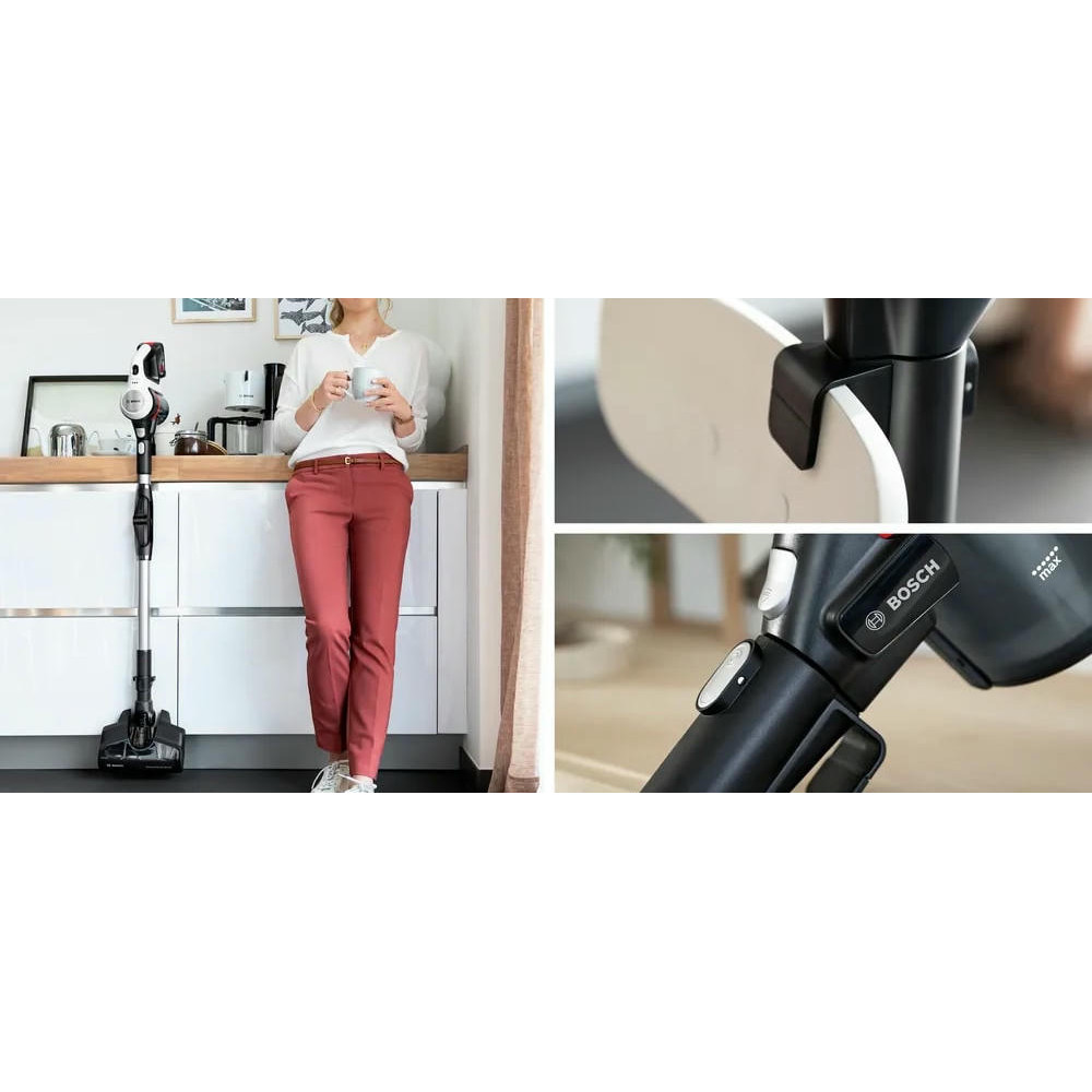 Одной из особенностей этого пылесоса является его 2 в 1 функциональность. Он также служит как съемный портативный пылесос, что делает его исключительно удобным и многофункциональным. Это 3 в 1 устройство обеспечивает электронную регулировку мощности с поворотным регулятором и регулятором мощности на ручке, что позволяет вам выбирать между тремя уровнями производительности в зависимости от сложности уборки. Система гигиенической фильтрации контейнерного типа и объем контейнера для сбора пыли 0.3 литра обеспечивают эффективное и гигиеничное удаление пыли. Легкая очистка контейнера делает обслуживание устройства простым и беззаботным. Пылесос оснащен мини-насадкой Unlimited и насадкой для мягкой мебели, а также мини-турбощеткой ProAnimal для сбора шерсти.
