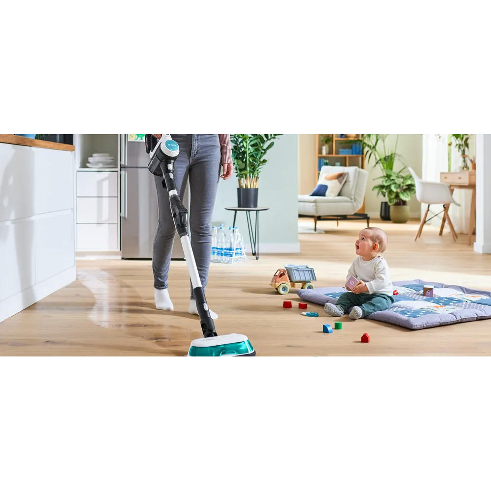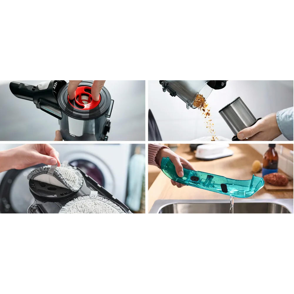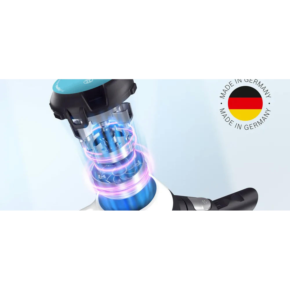 Для обеспечения эффективной уборки пылесос оснащен системой RotationClean и электрощеткой/турбощеткой. Легкая очистка щетки Easy Clean обеспечивает долгий срок службы устройства. Пылесос работает от аккумулятора, время работы которого составляет 40 минут. Время подзарядки аккумулятора составляет 5 часов. Индикатор уровня зарядки аккумулятора позволяет контролировать процесс зарядки.