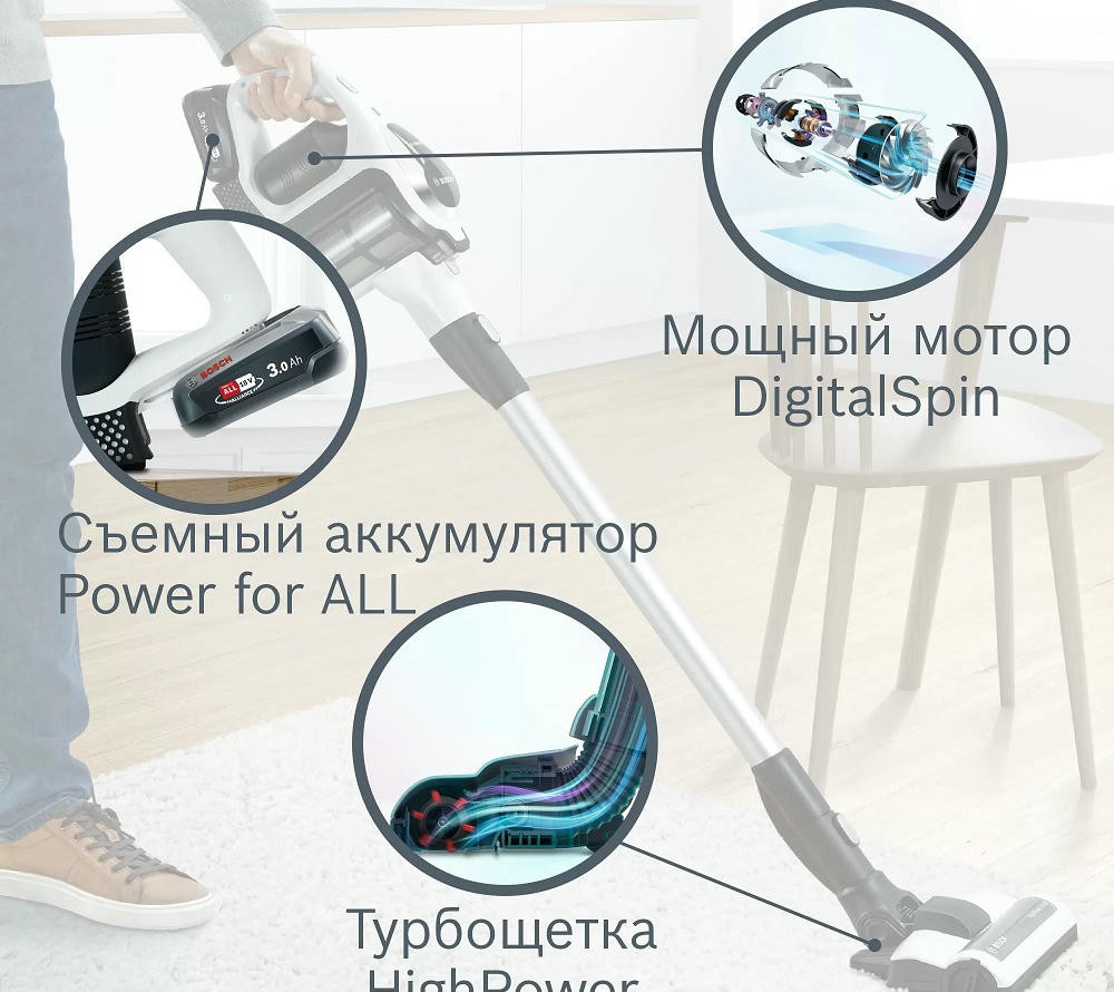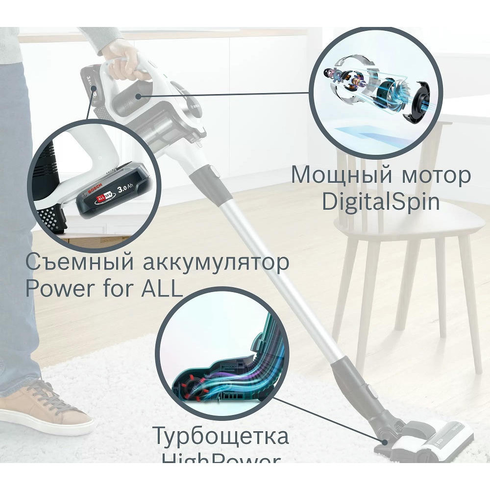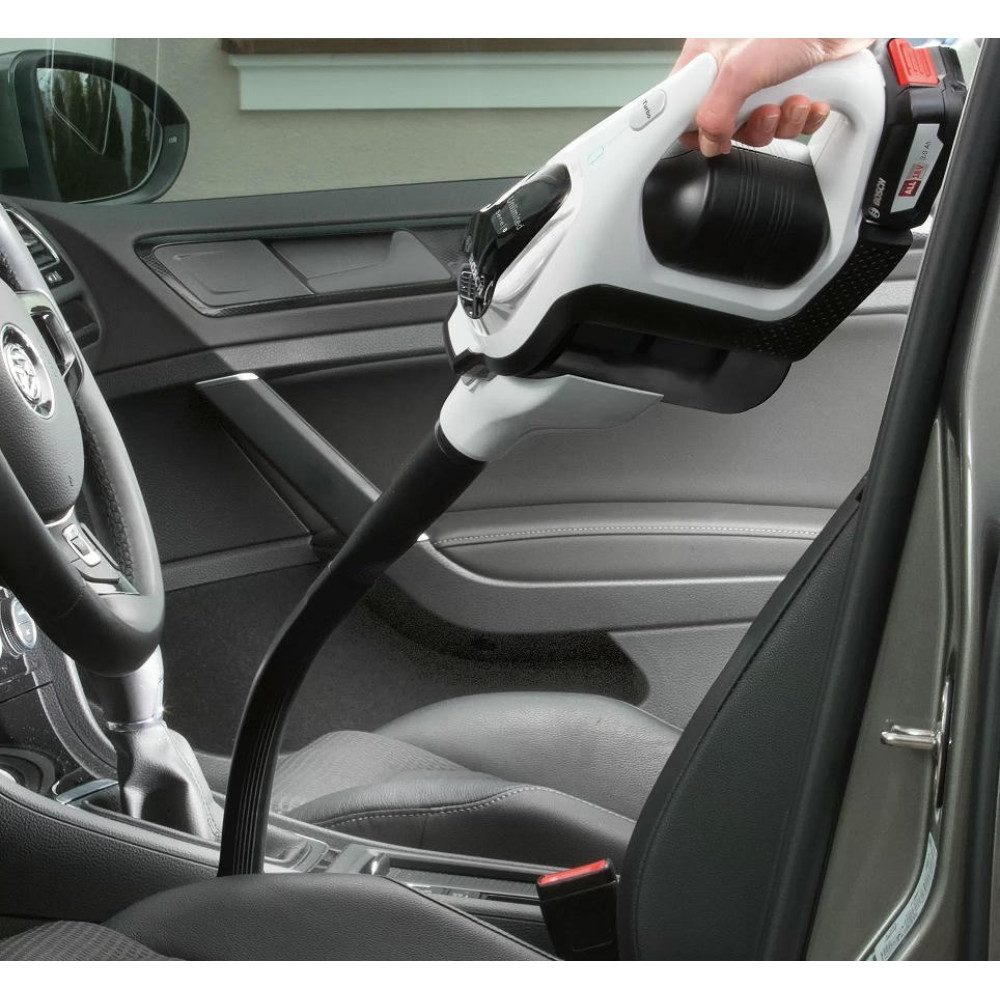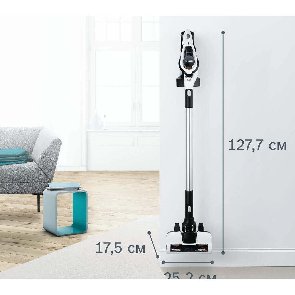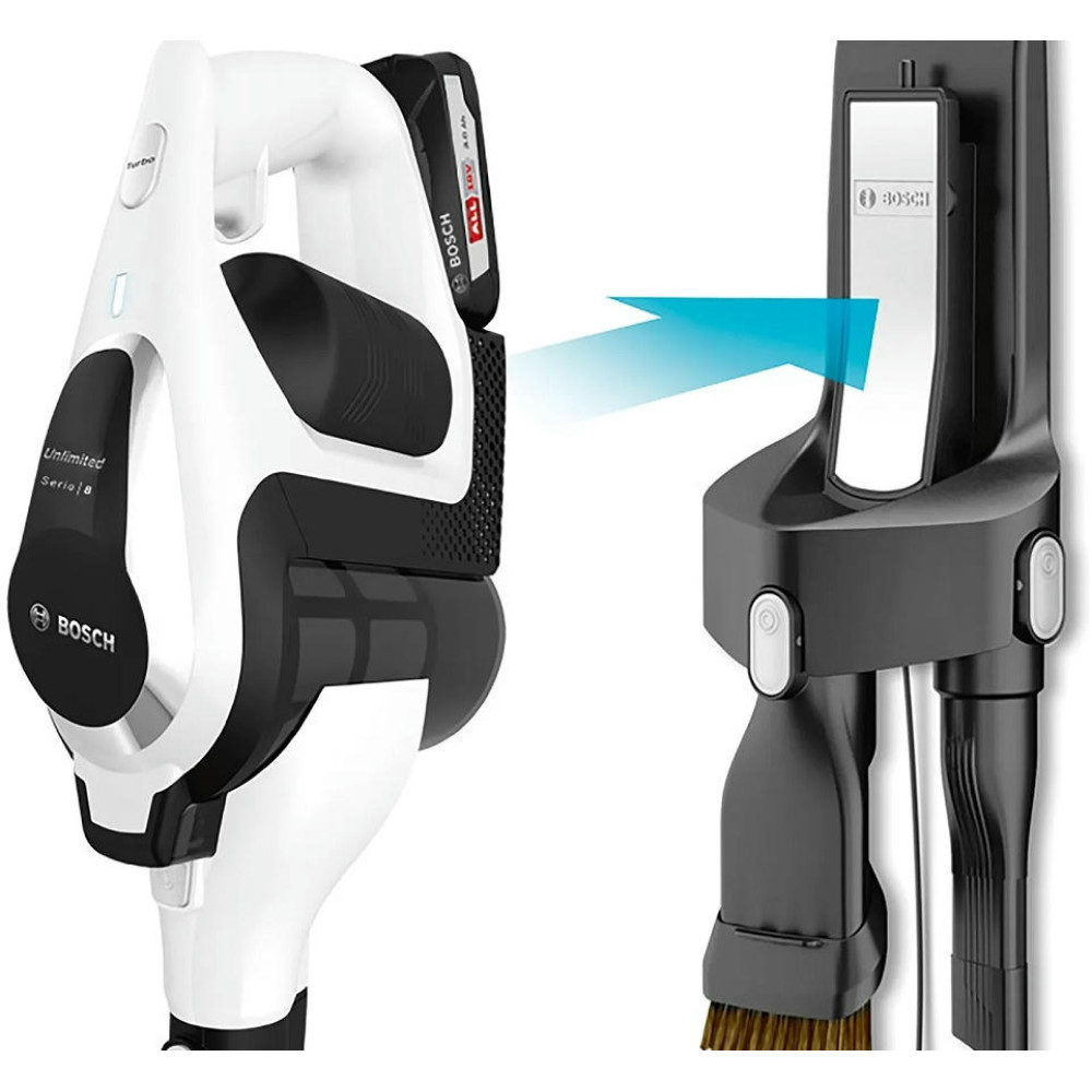 Аккумуляторный пылесос Bosch BCS81EXC хорошо послужит для уборки полов, а сменные насадки и возможность использовать прибор как портативное устройство позволят удалять пыль с других поверхностей. Благодаря функции Rotation Clean фильтр контейнера легко очищается, его даже не надо мыть. Устройство не будет занимать много места, ведь для него предусмотрена док-станция, в которой удобно хранить сам прибор и аксессуары к нему.