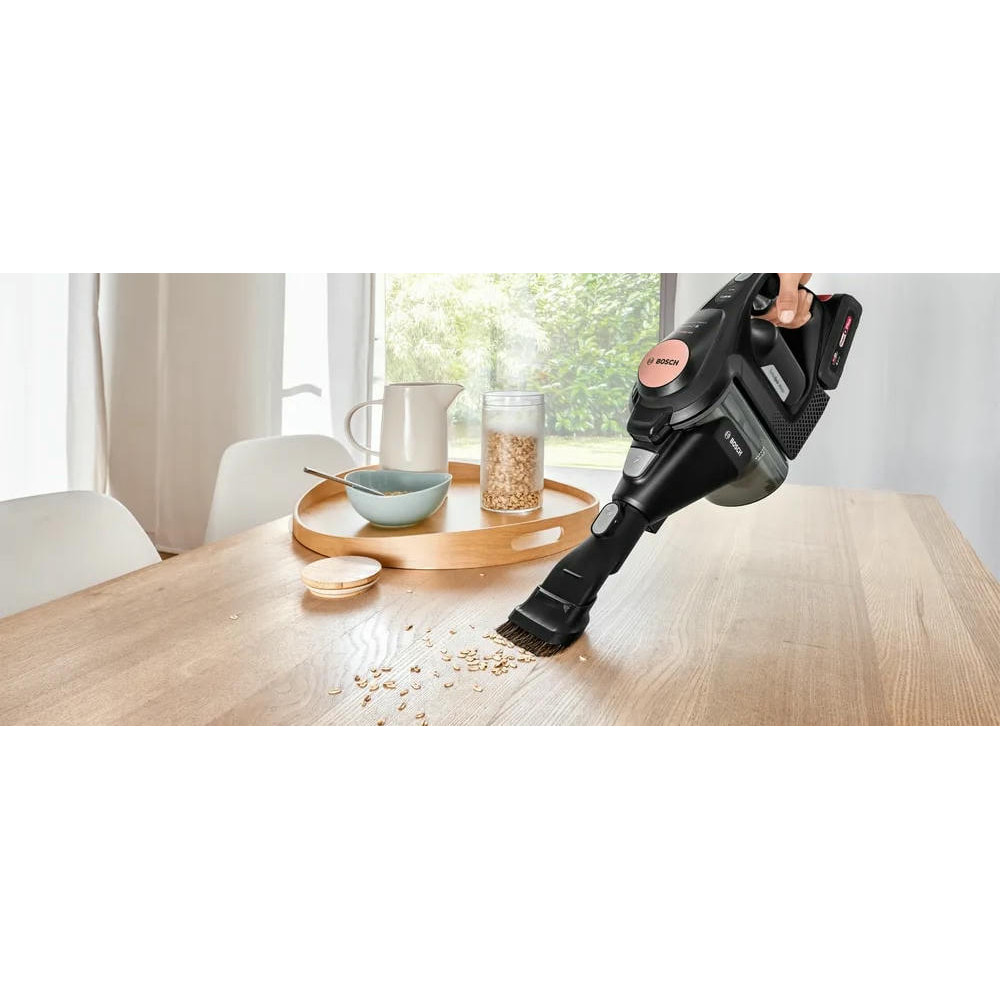 Пылесос Bosch BCS8214PRQ – это универсальное устройство 3 в 1, которое включает в себя съемный портативный пылесос. Мини-насадка Unlimited, щелевая насадка, насадка для мягкой мебели и стандартная турбощетка для удаления шерсти делают его идеальным помощником для уборки любых поверхностей. Насадка для клавиатуры и ящиков обеспечивает дополнительное удобство в использовании.