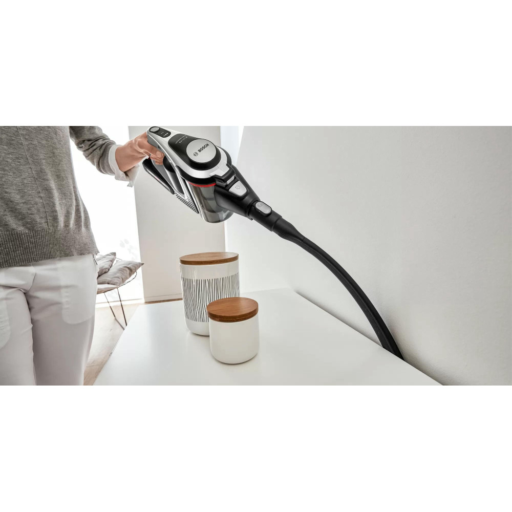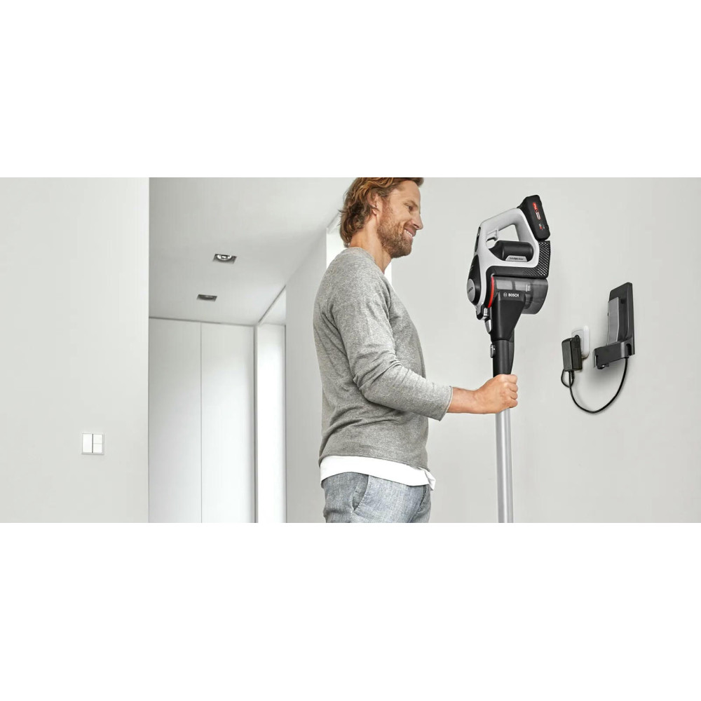 Пылесос Bosch BCS8224WA благодаря беспроводной работе, вертикальной конструкции и цифровому мотору высокой мощности способен обеспечить качественные результаты сухой уборки. Фирменная турбированная щетка HighPower со встроенной LED-подсветкой ярко освещает зону уборки. Сбор мусора осуществляется в контейнер, который легко снимается и очищается при необходимости. Два сменных аккумулятора исключают ограничение по времени при выполнении уборки и отличаются быстрым восстановлением заряда. Время автономной работы одного аккумулятора составляет около 65 минут.