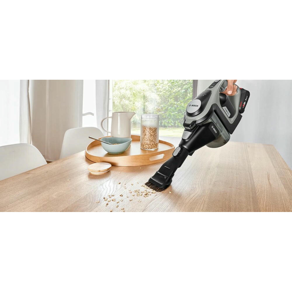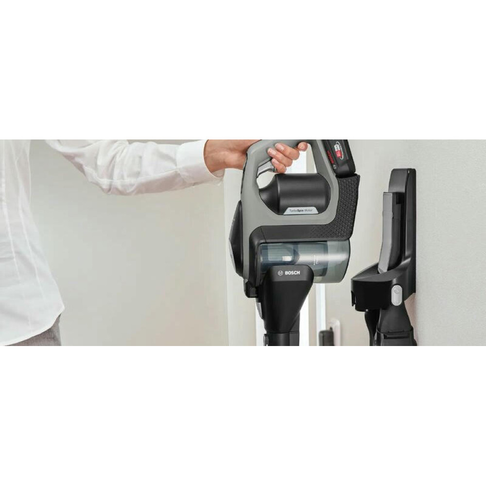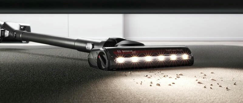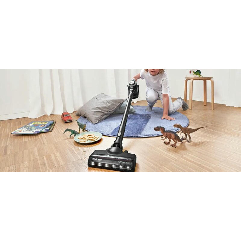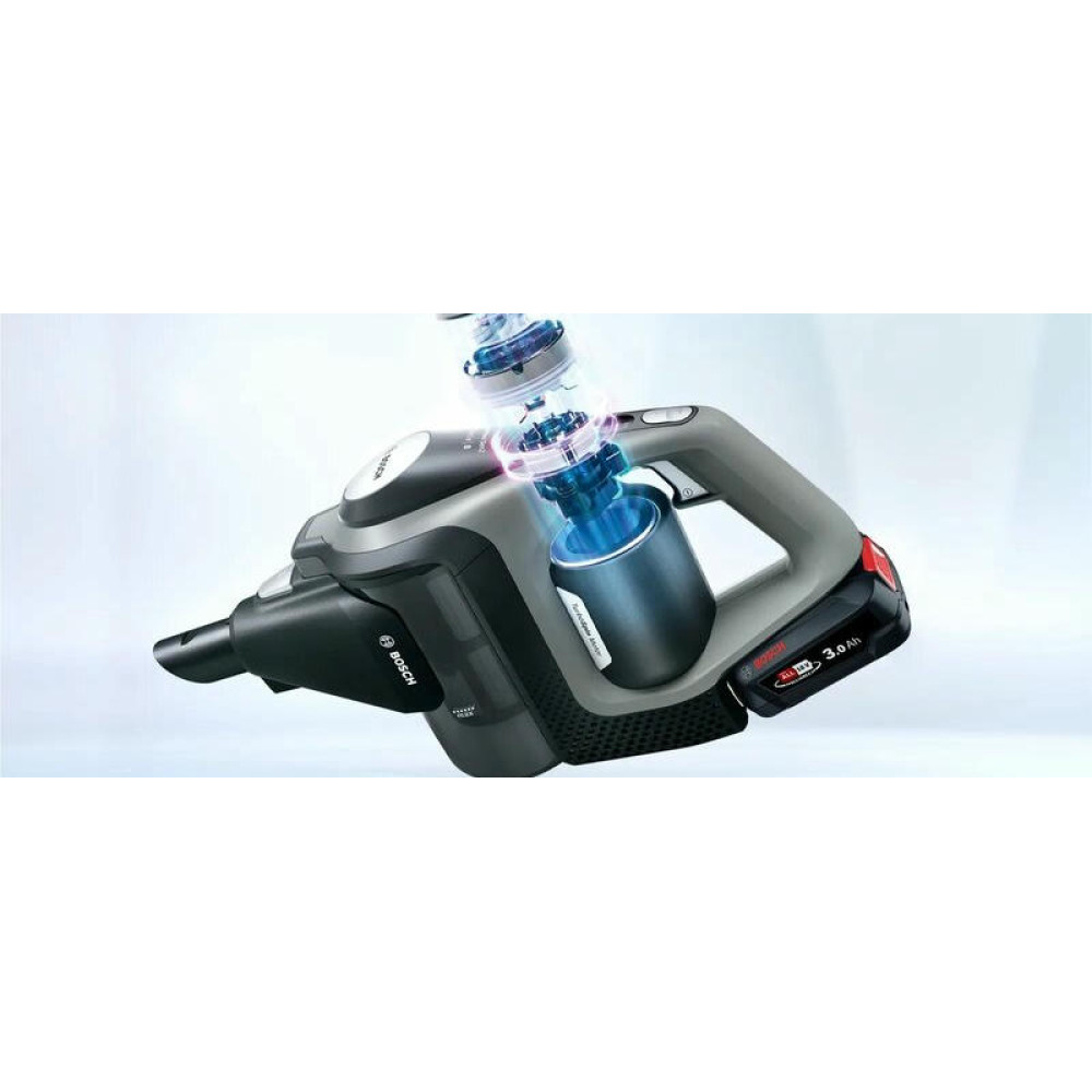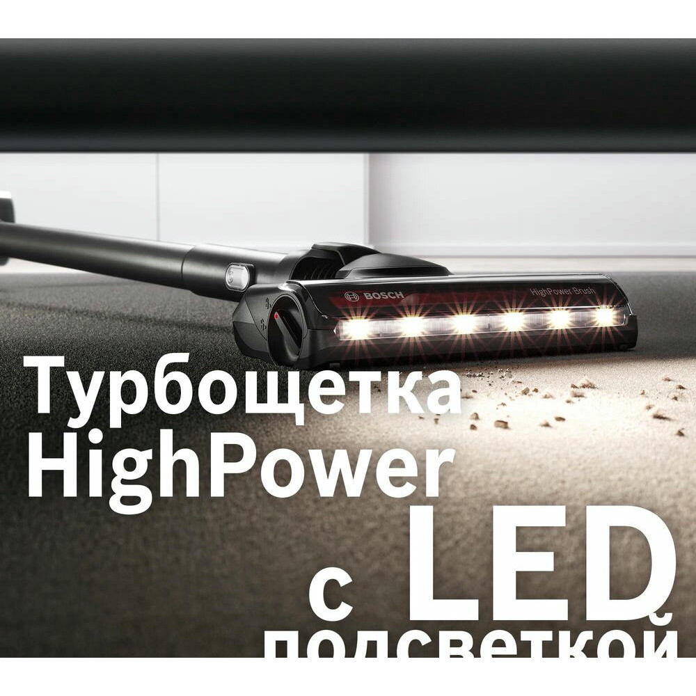 Пылесос Bosch BCS82G31 оснащен съемным универсальным аккумулятором Power for ALL 18 В, он подходит для разных приборов и держит время подзарядки до 45 минут. Имеется турбощетка HighPower с LED подсветкой, она отлично справляется с любыми напольными покрытиями. Также есть режим авто, он будет регулировать мощность работы в зависимости от напольного покрытия.