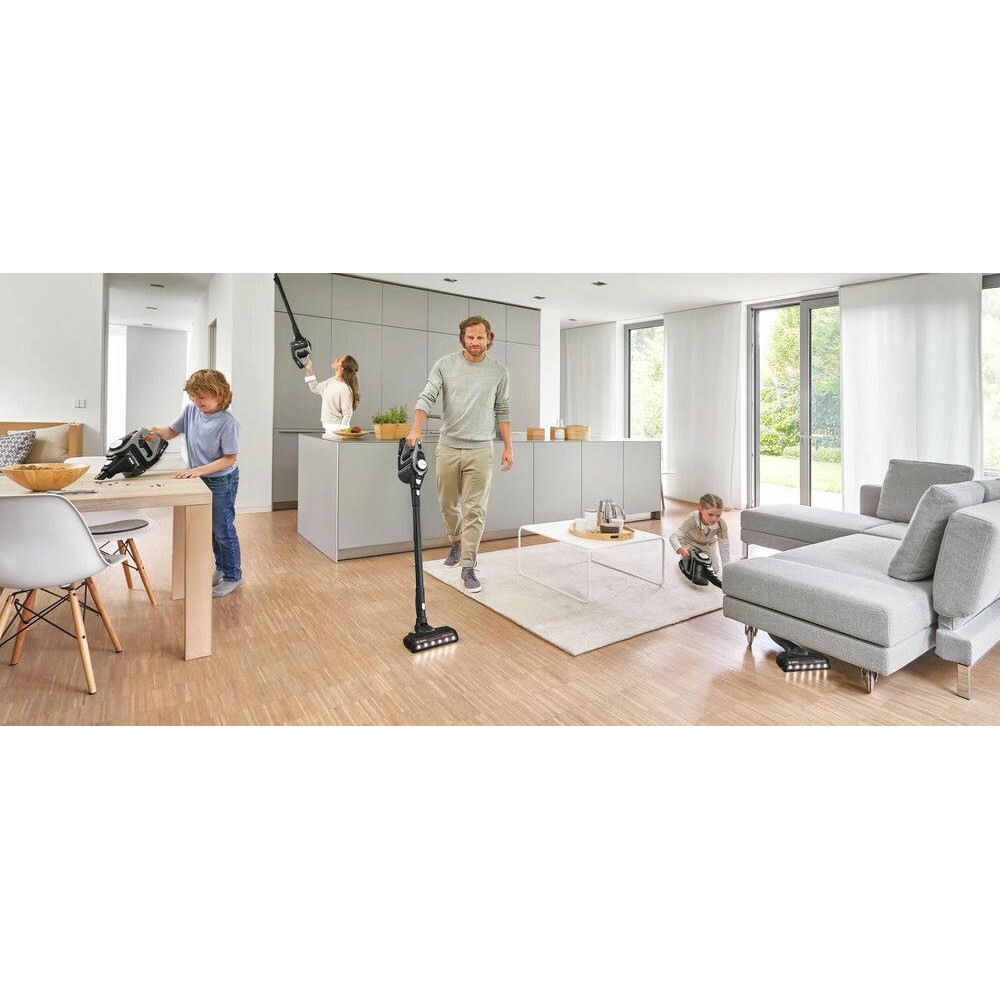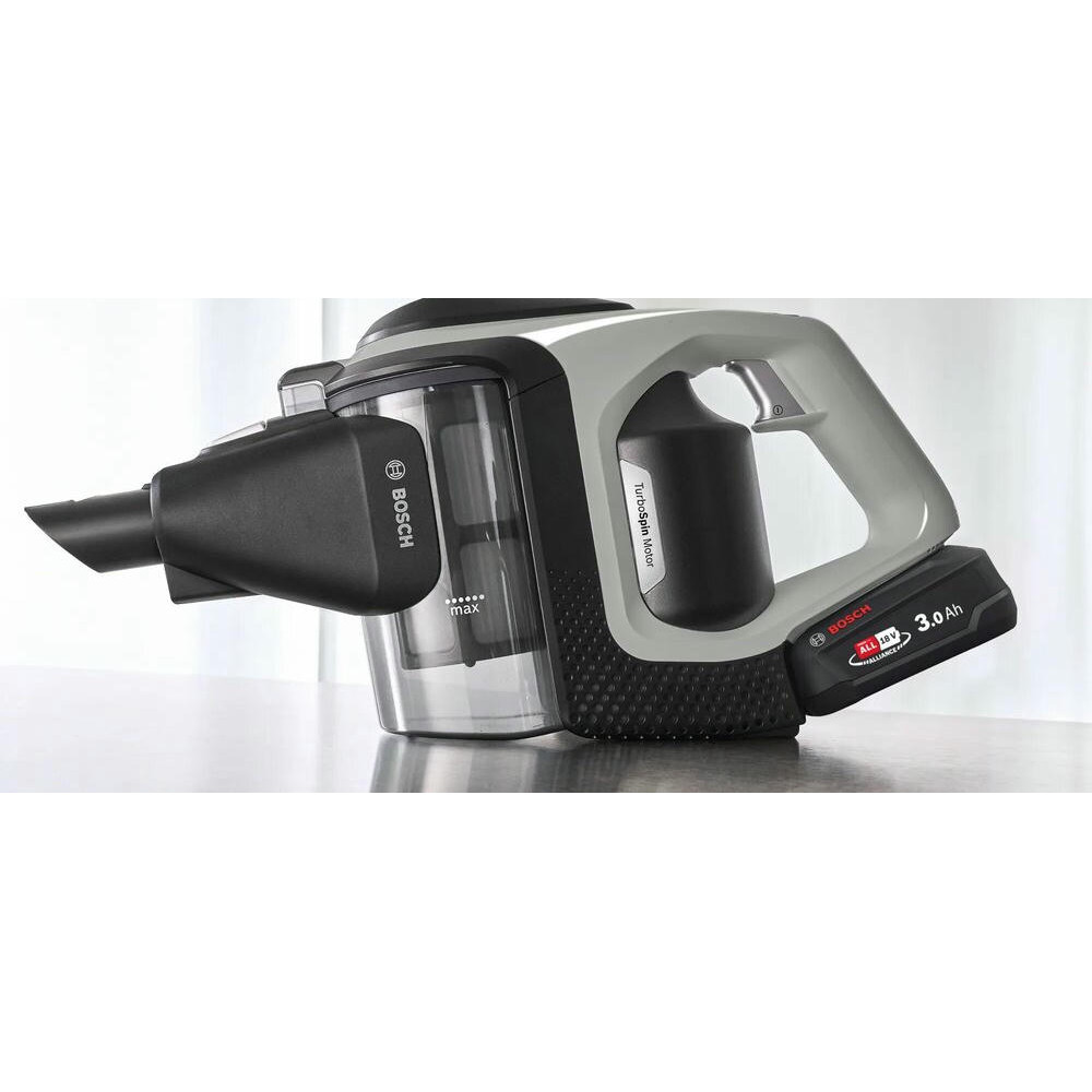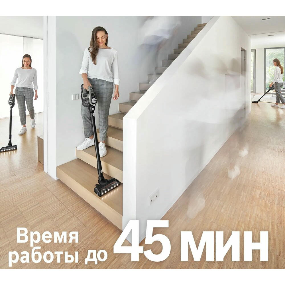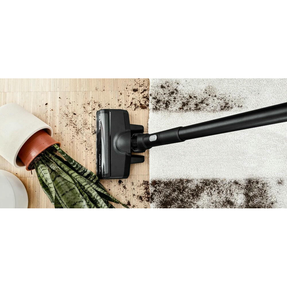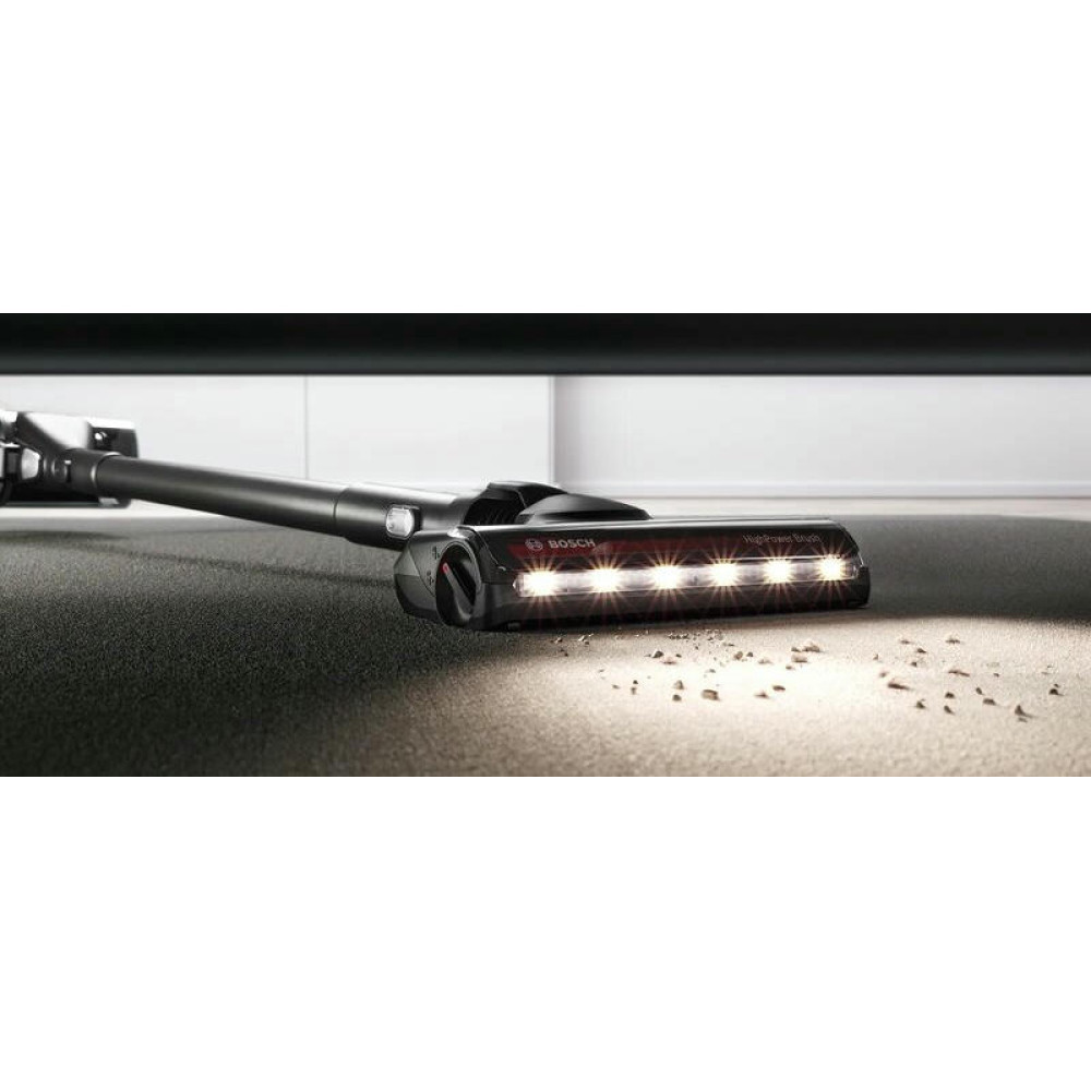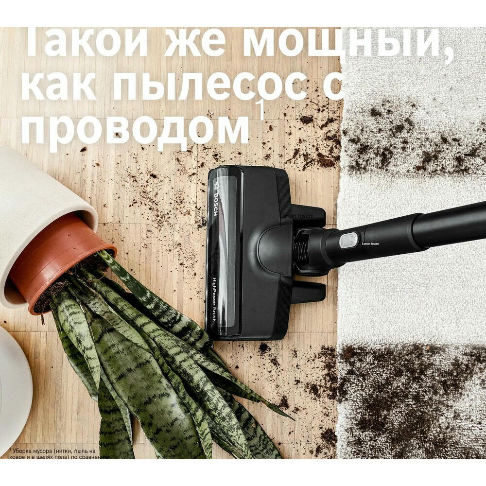 Пылесос Bosch BCS82G31 оснащен съемным универсальным аккумулятором Power for ALL 18 В, он подходит для разных приборов и держит время подзарядки до 45 минут. Имеется турбощетка HighPower с LED подсветкой, она отлично справляется с любыми напольными покрытиями. Также есть режим авто, он будет регулировать мощность работы в зависимости от напольного покрытия.