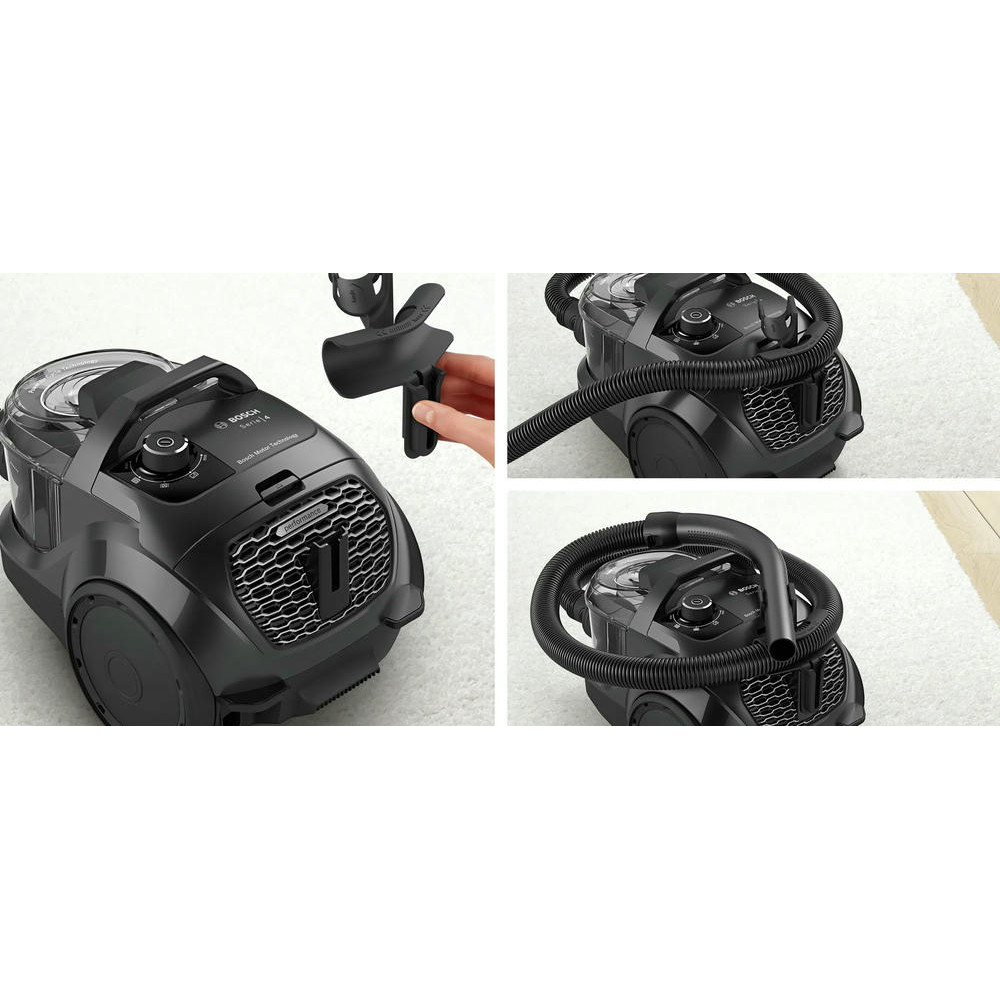 Пылесос Bosch BGC21X300 оснащен специальным фильтром НЕРА, он фильтрует воздух до 99.9% пыли, бактерий и загрязненных веществ и идеально подойдет для людей у, которых аллергия. Удобное управление с поворотным регулятором расположенным на корпусе позволяет настраивать скорости. Благодаря немецкому мотору устройство обладает высокой скоростью воздушного потока.