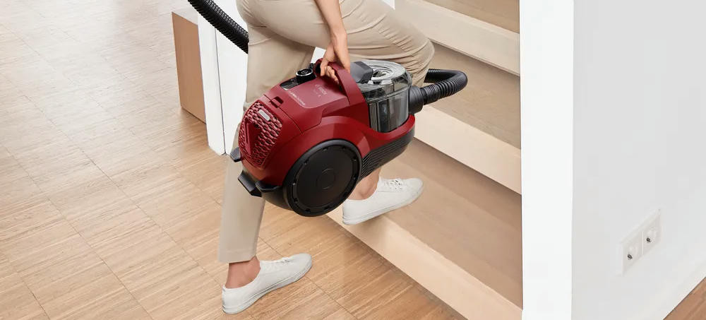 Пылесос оснащен телескопической трубой всасывания и широким набором насадок: насадка для пола и ковра, электрощетка, турбощетка, щелевая насадка и насадка для мягкой мебели. Это позволяет эффективно убирать различные поверхности и труднодоступные места. Все насадки можно хранить в встроенном отсеке, что обеспечивает их удобное использование и хранение. Радиус действия пылесоса составляет 10 метров, что позволяет убирать большие площади без необходимости переключения розеток. Сетевой шнур автоматически сматывается, что упрощает процесс хранения пылесоса. Уровень шума составляет 78 дБ, что делает работу пылесоса достаточно тихой.