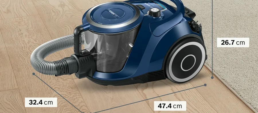 Удобство использования модели обеспечивают подвижные ролики и обычные колеса. Благодаря автосматыванию сетевого шнура, устройство легко хранить и переносить. Радиус действия пылесоса составляет 10 метров, что обеспечивает большую свободу движений при уборке. Пылесос Bosch BGC41X36 отличается низким уровнем шума - всего 68 дБ. Это позволяет использовать его даже в тихие часы, не беспокоя домочадцев или соседей. Габариты устройства составляют 26.7 х 32.4 х 47.4 см, а вес - всего 5.6 кг. Это делает его компактным и легким, удобным для хранения и использования.