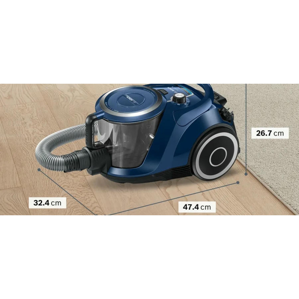 Пылесос Bosch BGC41X36 - напольный, безмешковый аппарат, предназначенный для сухой уборки. Устройство работает от сети, что обеспечивает непрерывную работу без необходимости перезарядки. Одной из особенностей модели является система гигиенической фильтрации - контейнерный Ultra Allergy. Она гарантирует отличную очистку воздуха от мелкой пыли и аллергенов. Объем контейнера для сбора пыли составляет 2.4 литра. Контейнер легко очищается, что делает процесс уборки еще более удобным.