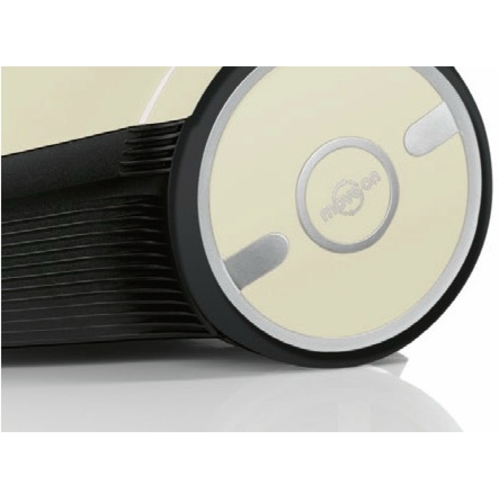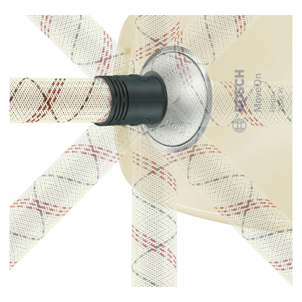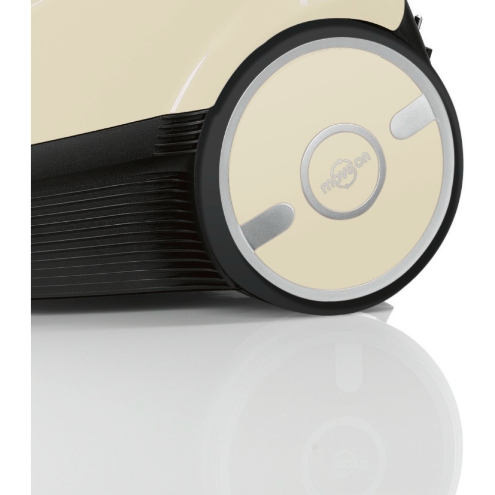 Текстильный шланг не перекручивается во время работы, что создает дополнительное удобство. Большие колеса оснащены мягкой поверхностью для защиты пола от повреждений. Вертикальная парковка экономит место при хранении прибора.