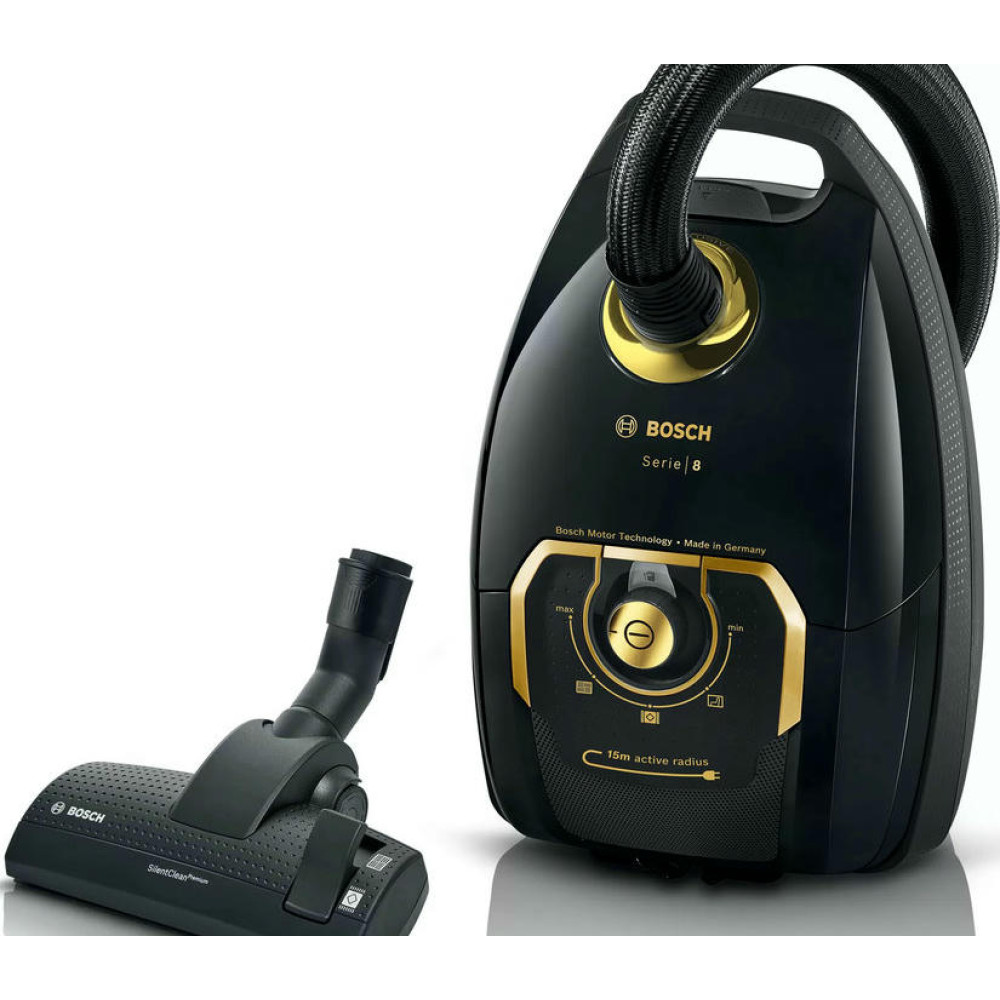 Пылесос Bosch BGL8GOLD оснащен фильтром НЕРА он фильтрует до 99.5% частиц пыли и бактерий. Система PowerProtect имеет эффективное раскрытие мешка, при заполнении он не потеряет мощность всасывания. Долговечный мотор Motor Technology с гарантией в 10 лет службы.