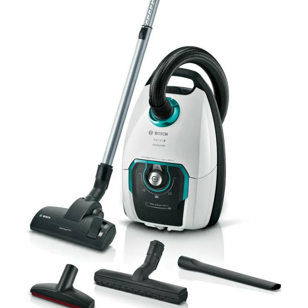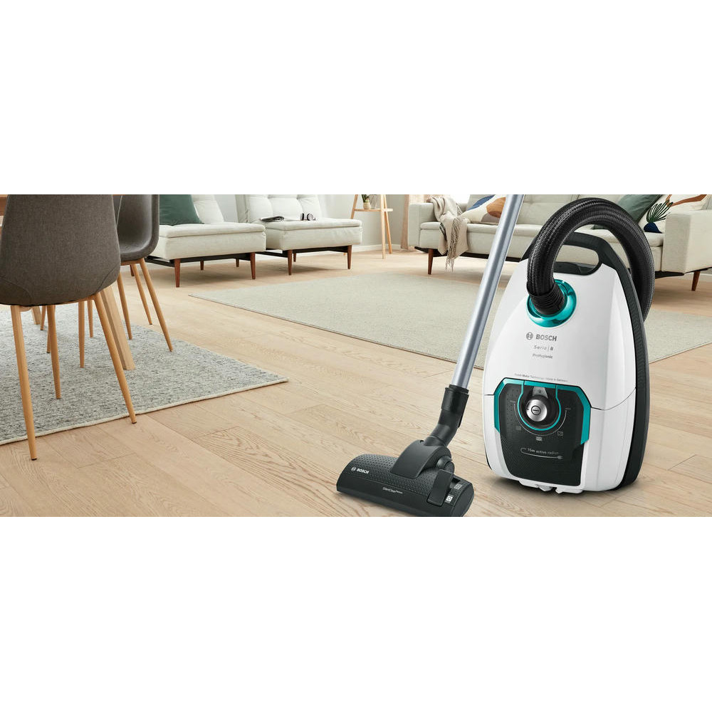 Пылесос Bosch BGL8HYG2 из серии Serie 8 оснащен насадкой 3 в 1, которая обеспечивает его максимальную универсальность и удобство использования. Это означает, можно выполнять несколько функций одновременно, что значительно упрощает процесс уборки. Электронная регулировка мощности с поворотным регулятором, расположенным на корпусе, позволяет настроить работу прибора под конкретные задачи и условия использования. Так, доступны три уровня производительности: для легкой, нормальной и тщательной уборки. Пылесос Bosch BGL8HYG2 оснащен системой гигиенической фильтрации HEPA, которая обеспечивает высокую степень очистки воздуха от мельчайших частиц пыли и аллергенов. Объем пылесборника составляет 5 литров, что позволяет сократить количество смен мешка для пыли. Индикатор заполнения пылесборника своевременно сообщит о необходимости его замены. Система PowerProtect обеспечивает оптимальное использование мешка для пыли и поддерживает высокую уборочную мощность даже при его заполнении.