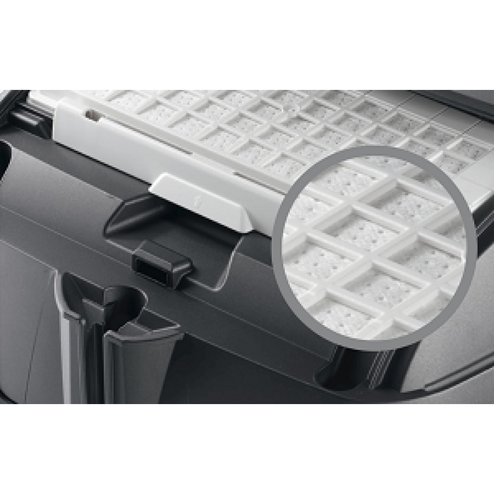 Благодаря системе PowerProtect производительность очистки не снижается и при почти заполненном мешке. Насадка SilentClean Premium обеспечивает тихую работу прибора.