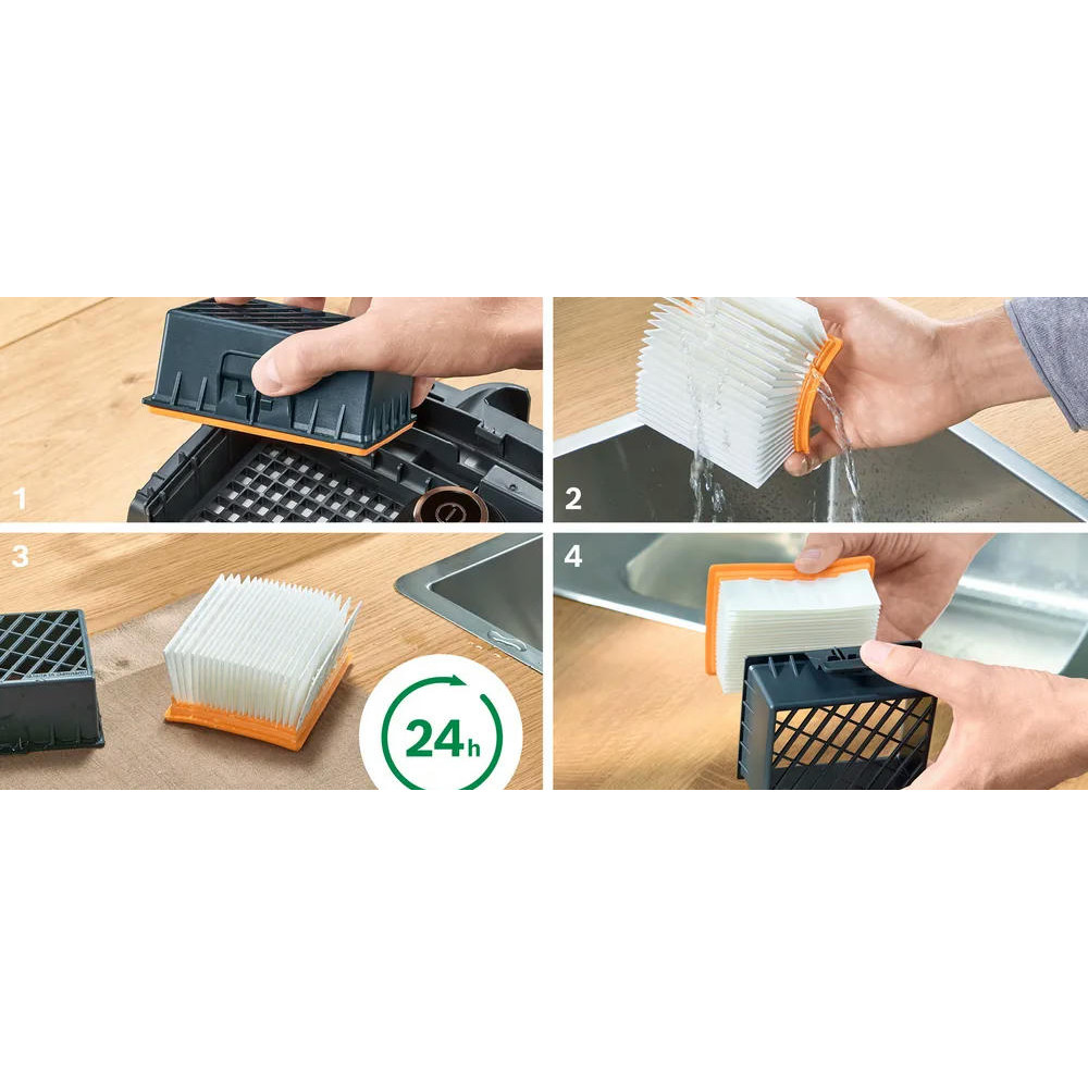 Пылесос Bosch Serie 2 - это надежный и долговечный помощник в уборке вашего дома. С прочным черным корпусом и эргономичным дизайном, он создан для комфортного использования и долгой службы. Электронная регулировка мощности с поворотным регулятором, расположенным на корпусе, позволяет легко и точно настроить интенсивность всасывания в зависимости от типа уборки. Сухая уборка становится более эффективной с использованием системы PowerProtect, которая гарантирует высокую производительность даже при заполнении пылесборника. Объем пылесборника составляет 3.5 литра, что позволяет совершать уборку продолжительное время без необходимости его частого опустошения. Система гигиенической фильтрации HEPA обеспечивает высокую степень очистки воздуха, делая его более чистым и свежим.