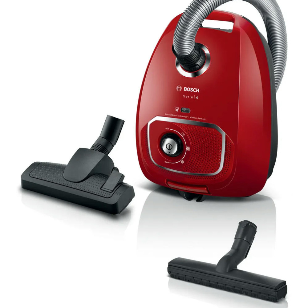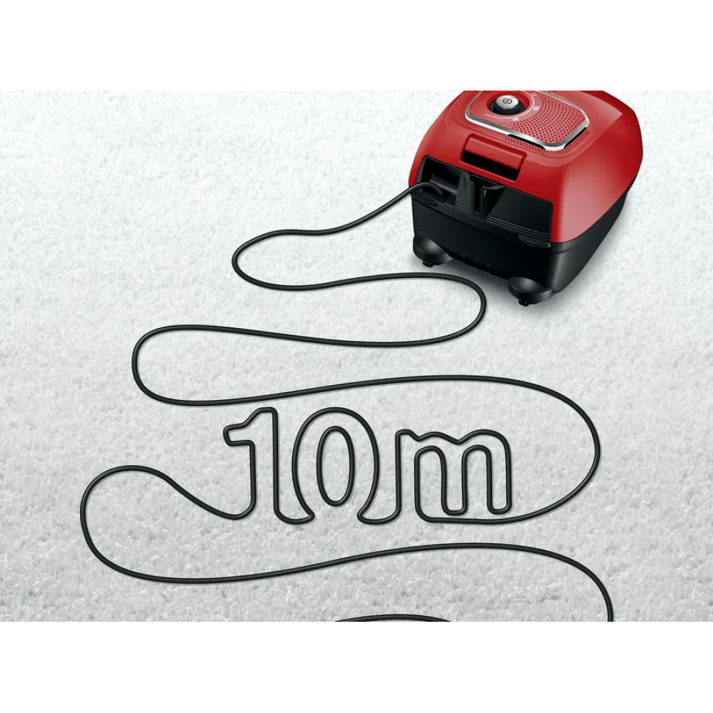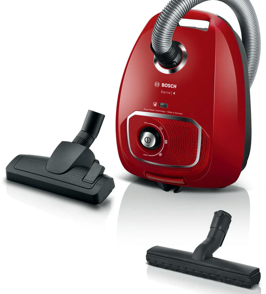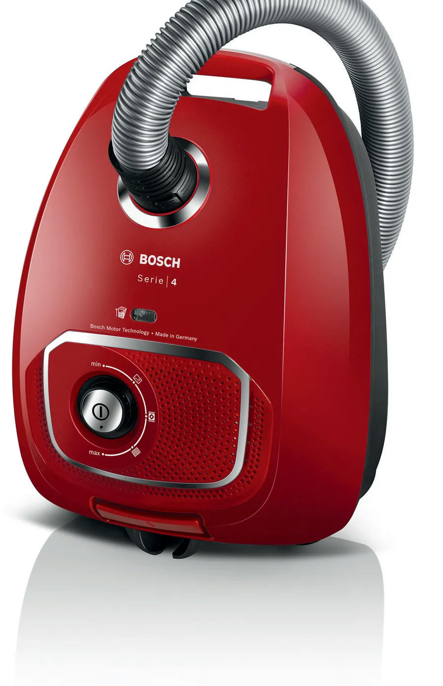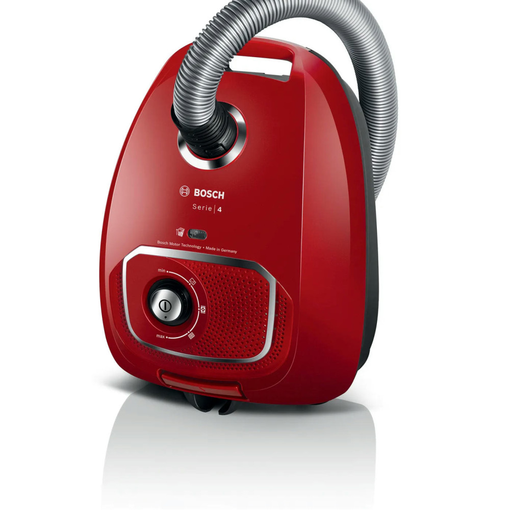 Пылесос Bosch BGls4X380 — это современный помощник в уборке дома, который сочетает в себе функциональность, эффективность и стильный дизайн. Красный цвет корпуса придает этому устройству яркость и выразительность, делая его заметным элементом интерьера. Четкие линии и продуманная эргономика обеспечивают удобство в использовании, а компактные размеры (26.5x29.5x41 см) позволяют удобно хранить пылесос даже в небольшой квартире. Особенностью данной модели является наличие электронной регулировки мощности с поворотным регулятором, расположенным на корпусе устройства. Это позволяет точно подбирать необходимую мощность в зависимости от типа поверхности и степени загрязнения.