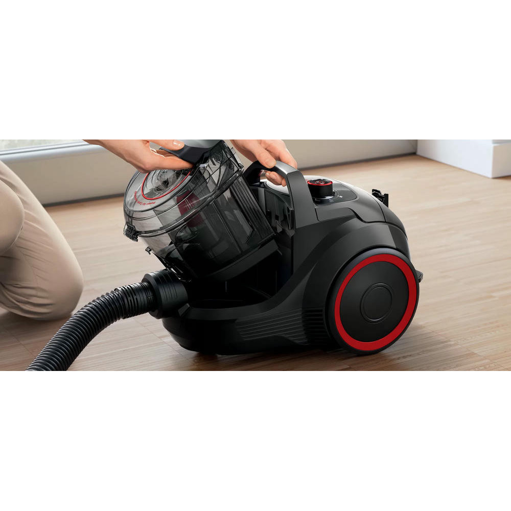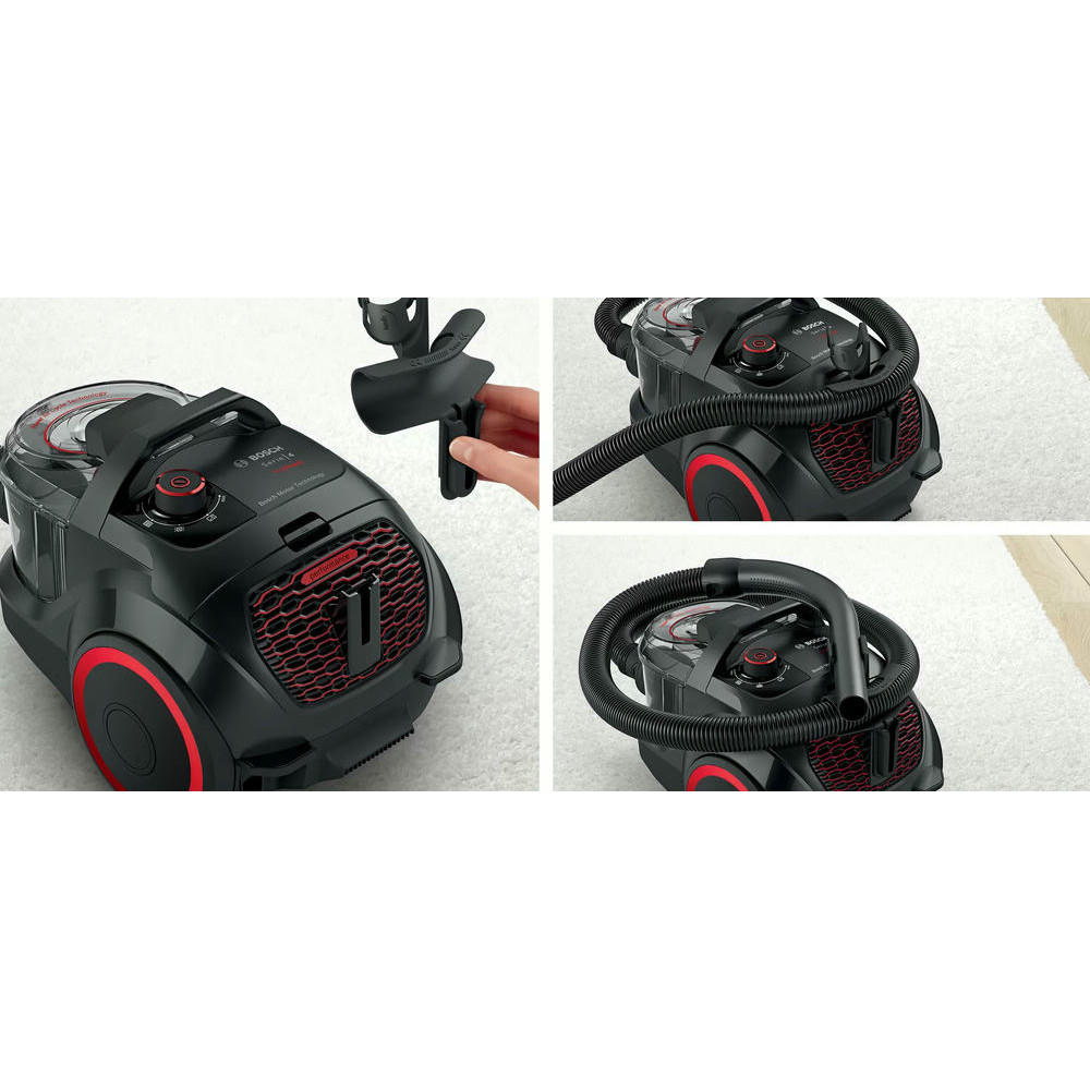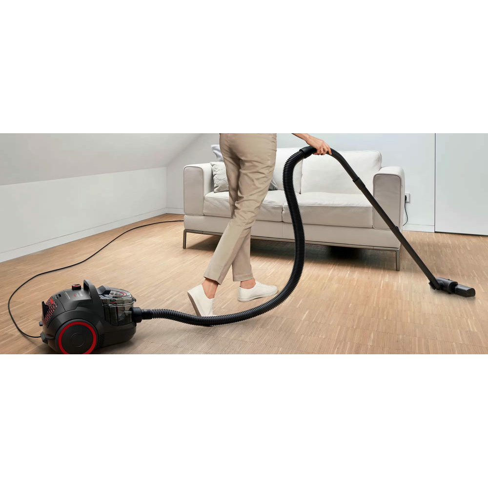 Пылесос Bosch BGS21POW2 оснащен турбощеткой благодаря ей волокна нитей и волос особенно эффективно удаляются с ковров. Фильтр HEPA производит отработанный воздух чище чем в окружающей вас среде, он фильтрует 99.95% мелких частиц пыли и бактерий, что идеально подходит для людей с аллергией. Кабель не придется складывать, имеется автоматическая намотка в корпус.