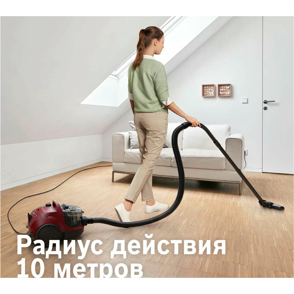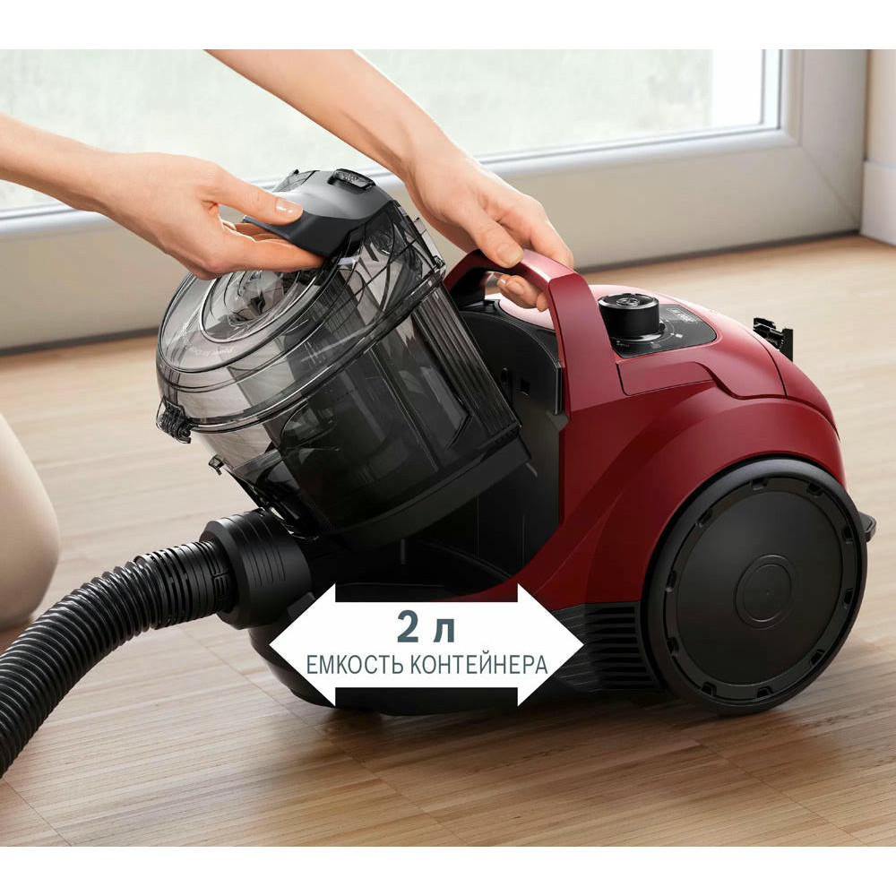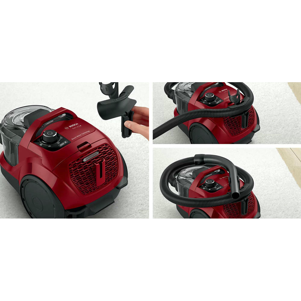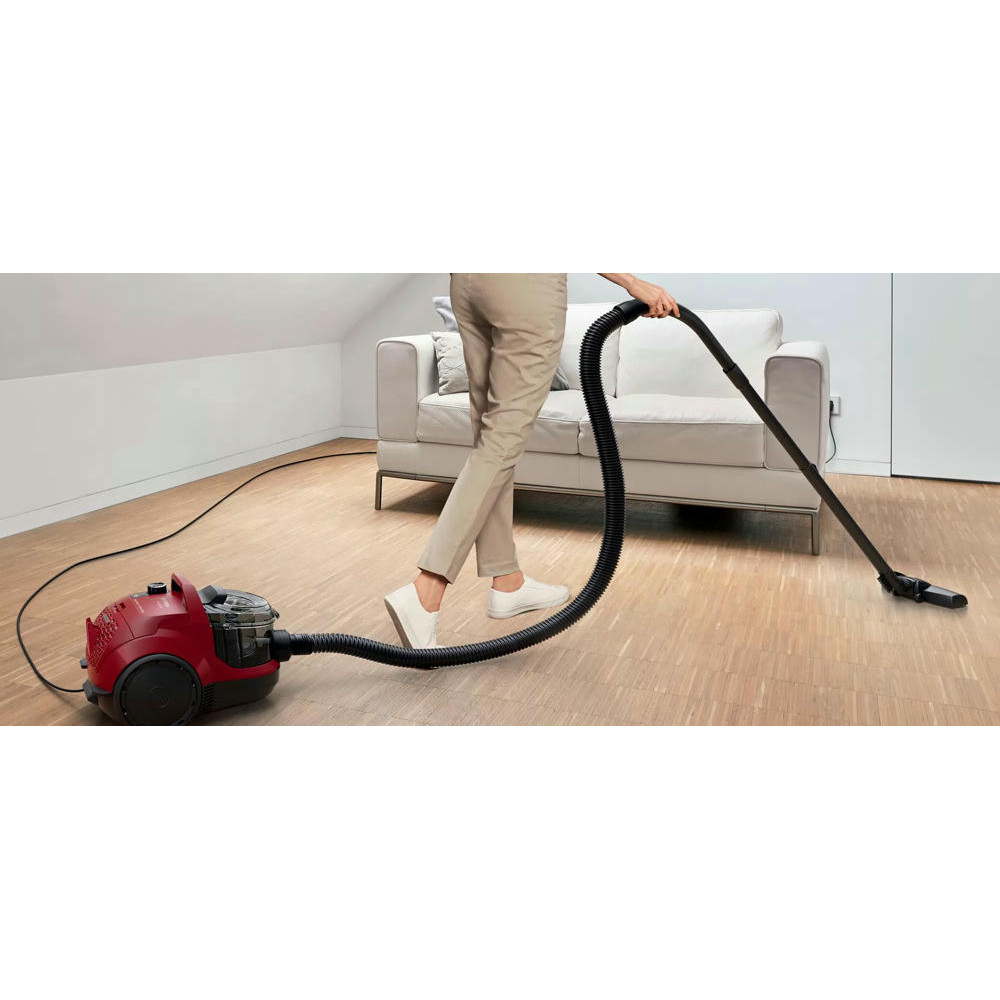 Bosch BGS21WX200 оборудован контейнером для сбора пыли, а значит его легко чистить. Телескопическая труба всасывания позволит выбрать длину для любых целей, а насадки, которые есть в комплекте, помогут очистить как мягкую мебель, так и узкие щели.